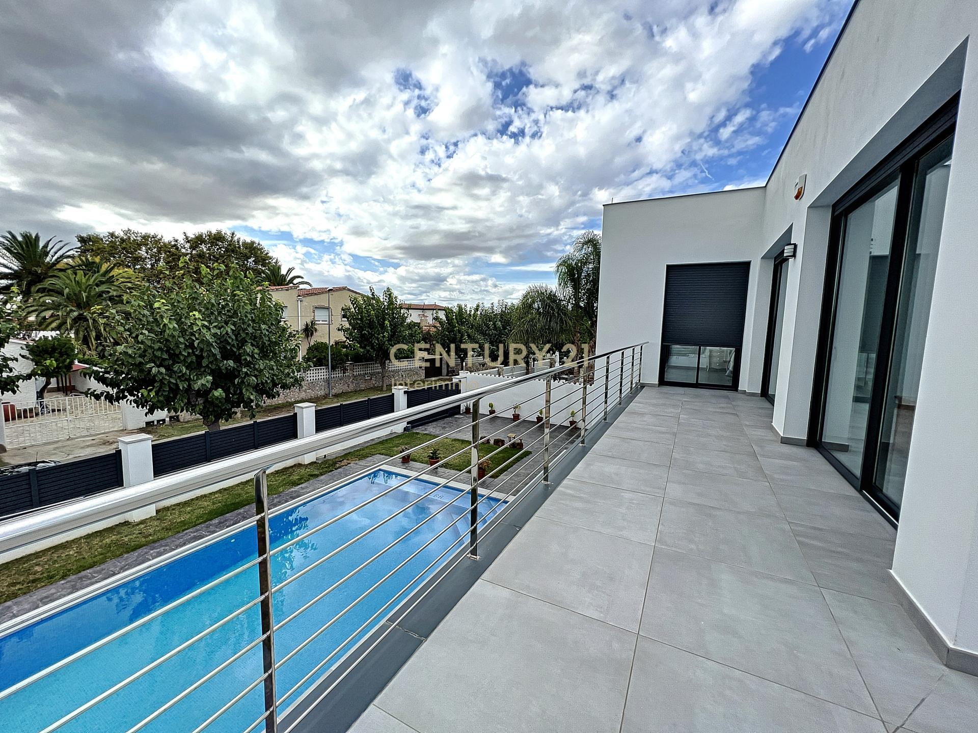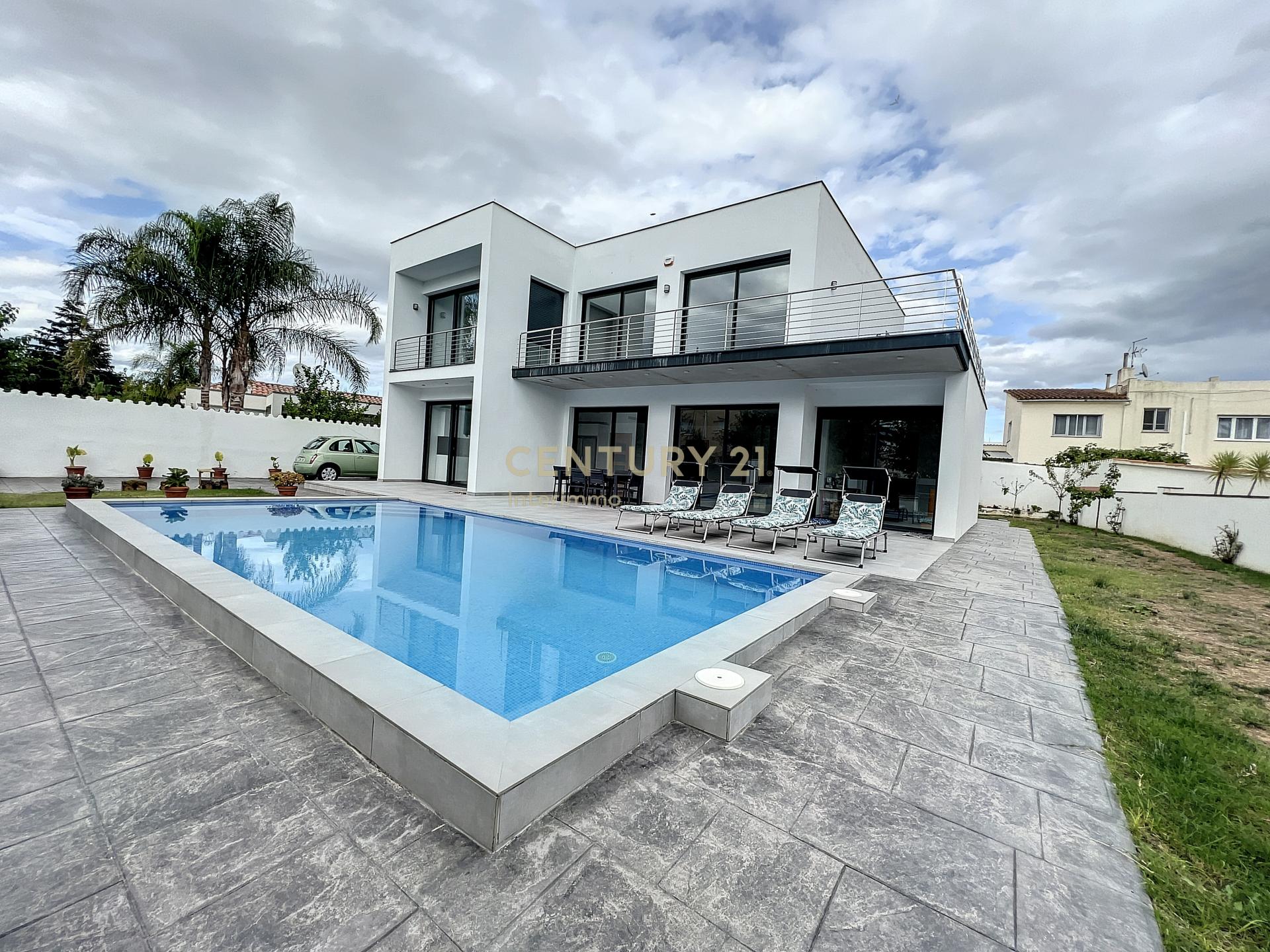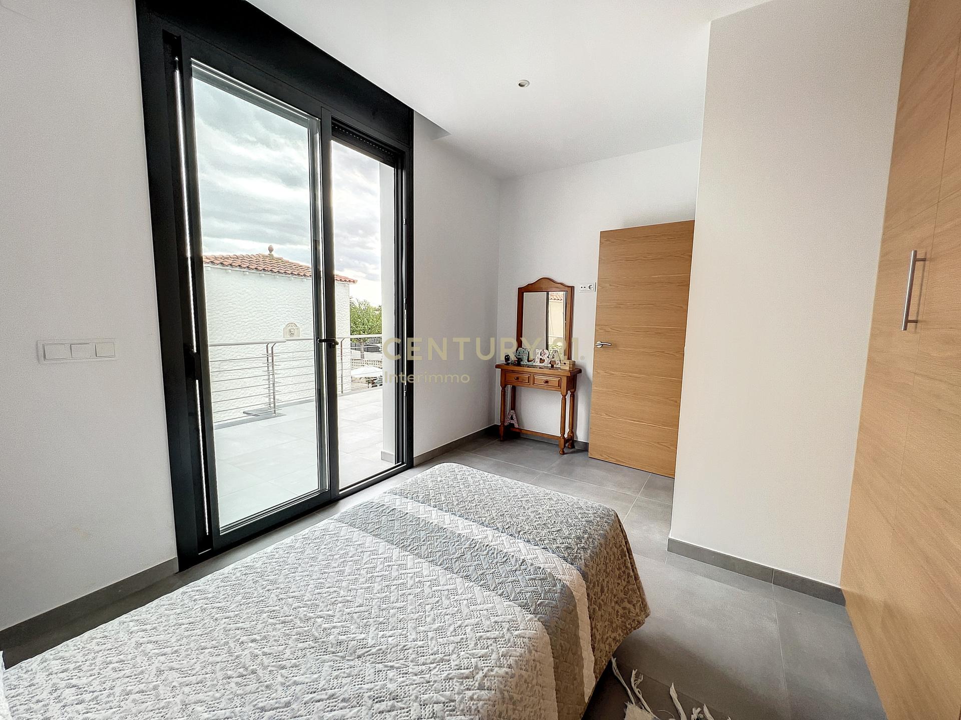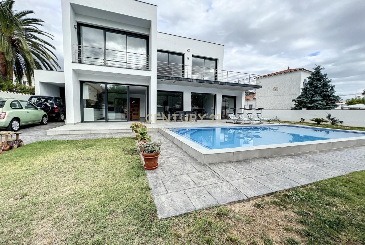 Situada en el corazón de Empuriabrava, a pocos pasos de la playa y de los comercios, ven a descubrir esta magnífica villa moderna con servicios de alta gama. Construida sobre una parcela de 629 m2, esta villa se distribuye en la planta baja de un gran hall de entrada, un baño con aseo y un baño con vestidor, una gran sala luminosa con cocina abierta y totalmente equipada con acceso directo a la terraza y a la piscina. También encontrarás una habitación tipo suite (dormitorio con vestidor y baño privado) y con acceso a la piscina. Un cuarto con la lavadera y un amplio garaje completan esta planta.