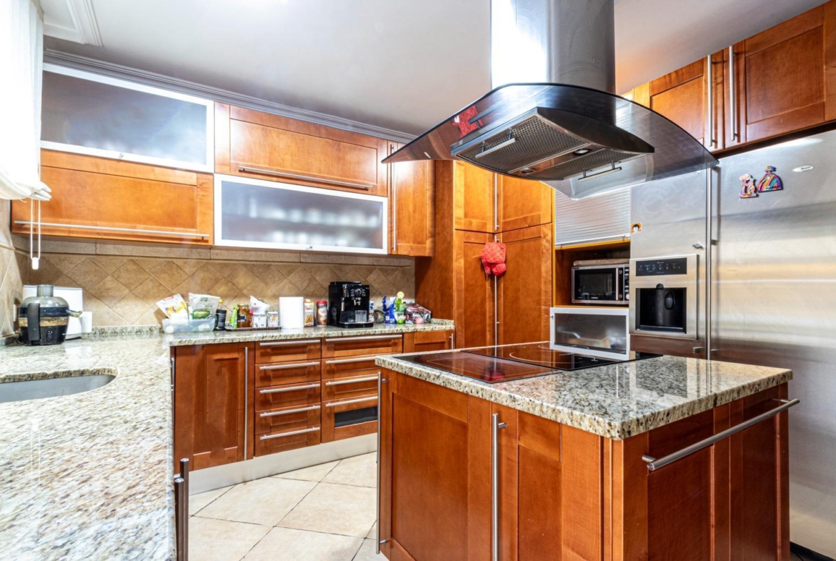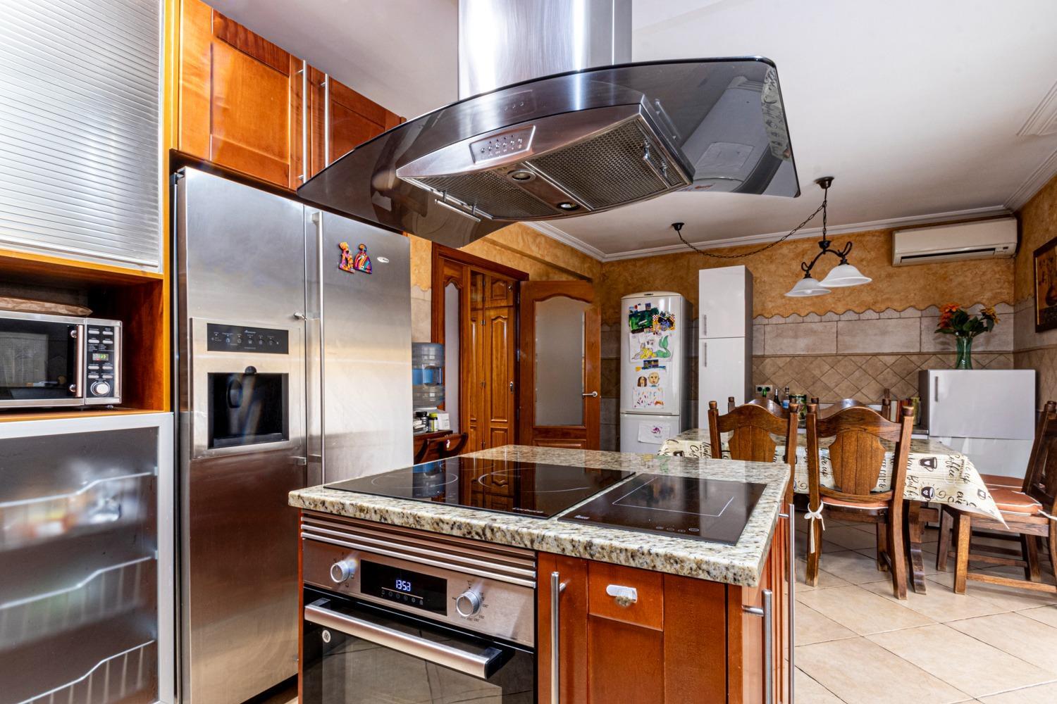 cocina independiente de 25m² con isla central, muy equipada de electrodomésticos y salida a terraza.