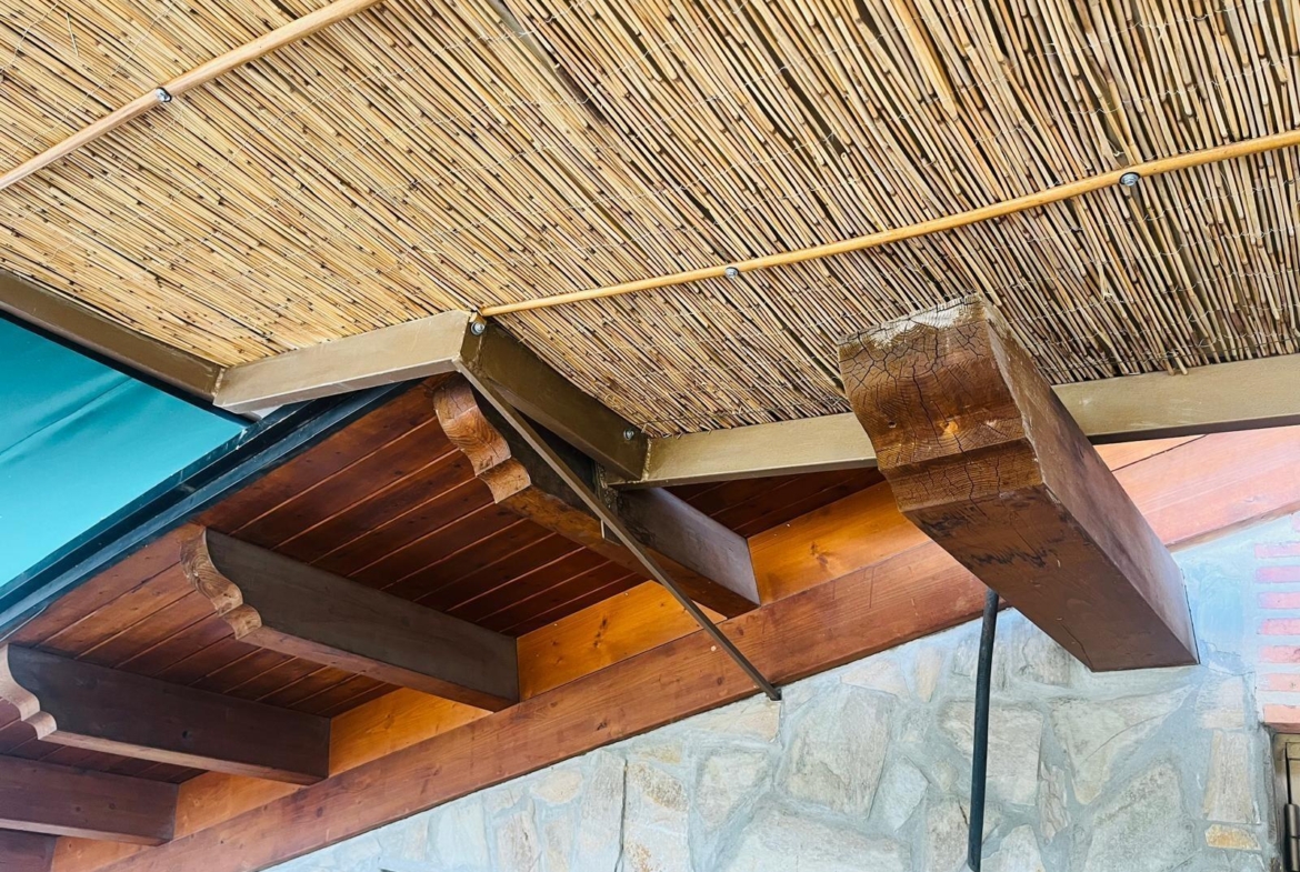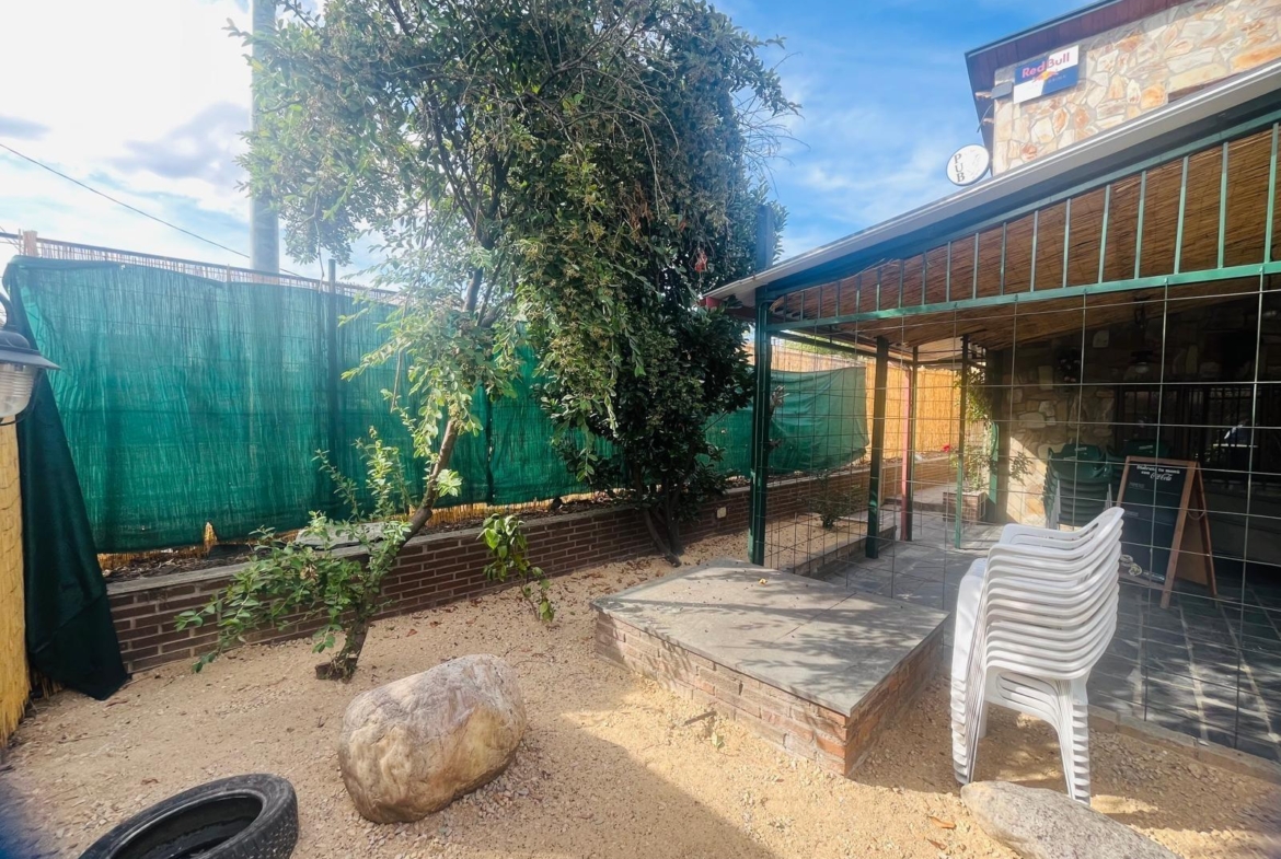 En el interior dispone de despensa con salida de humos, cocina equipada para uso profesional, pozo propio, paredes con pintura lisa y ladrillo de tejar visto que aportan un ambiente cálido y con carácter, así como una chimenea francesa que lo convierte en un espacio acogedor y único.
