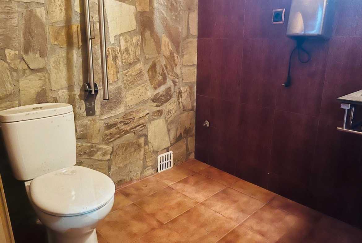 Se vende magnífico local de negocio de Hostelería. Restaurante totalmente equipado y en funcionamiento, con todas las licencias vigentes y en regla. El local cuenta con una fachada de piedra de 30 metros lineales que le aporta gran visibilidad, además de un porche y una amplia terraza exterior perfectamente acondicionable para la instalación de mesas.