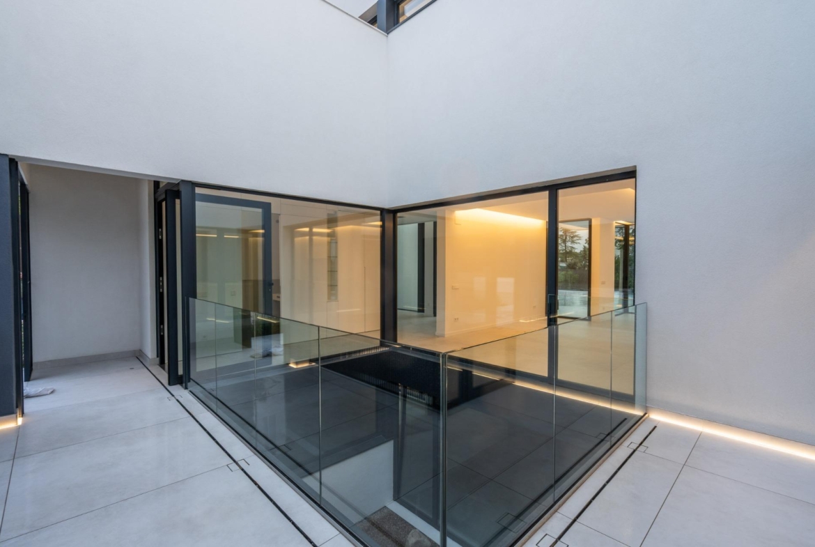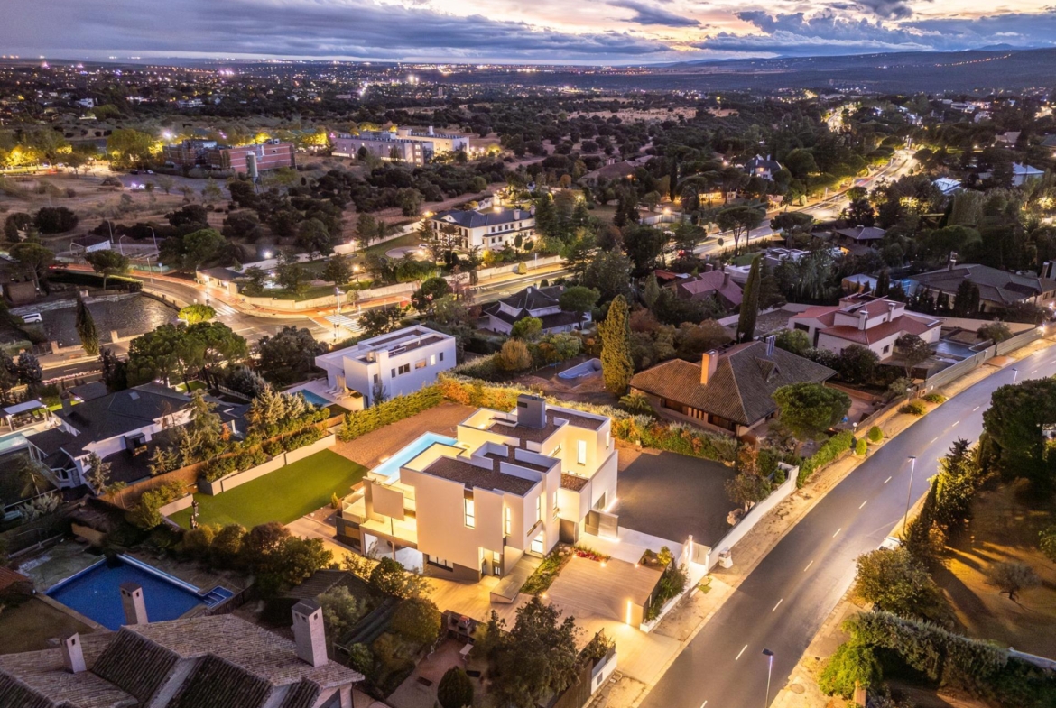 Exclusiva vivienda de lujo totalmente a estrenar, situada en una de las zonas más prestigiosas y seguras de Las Rozas de Madrid, dentro del área del Club de Golf. Con un diseño contemporáneo y elegante, esta propiedad destaca por su amplitud, luminosidad y la perfecta integración entre los espacios interiores y exteriores.