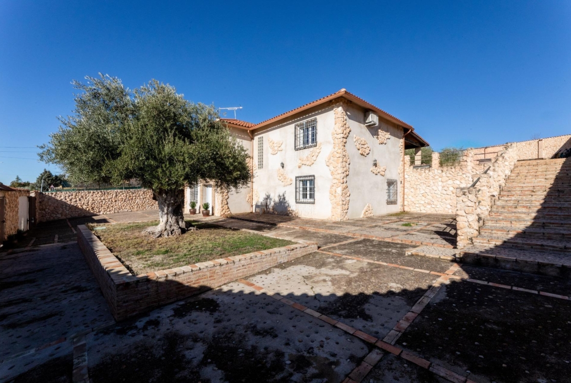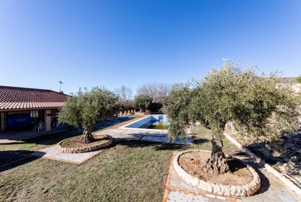 En el jardín existe además una construcción independiente de aproximadamente 15 m² donde se ubica la depuradora de la piscina, un aseo y un espacio destinado a guardamuebles de jardín. Todas las ventanas de la vivienda están protegidas con rejas toledanas macizas y la puerta principal dispone en su interior de un sistema de cierre eléctrico de alta seguridad con lama ciega.
