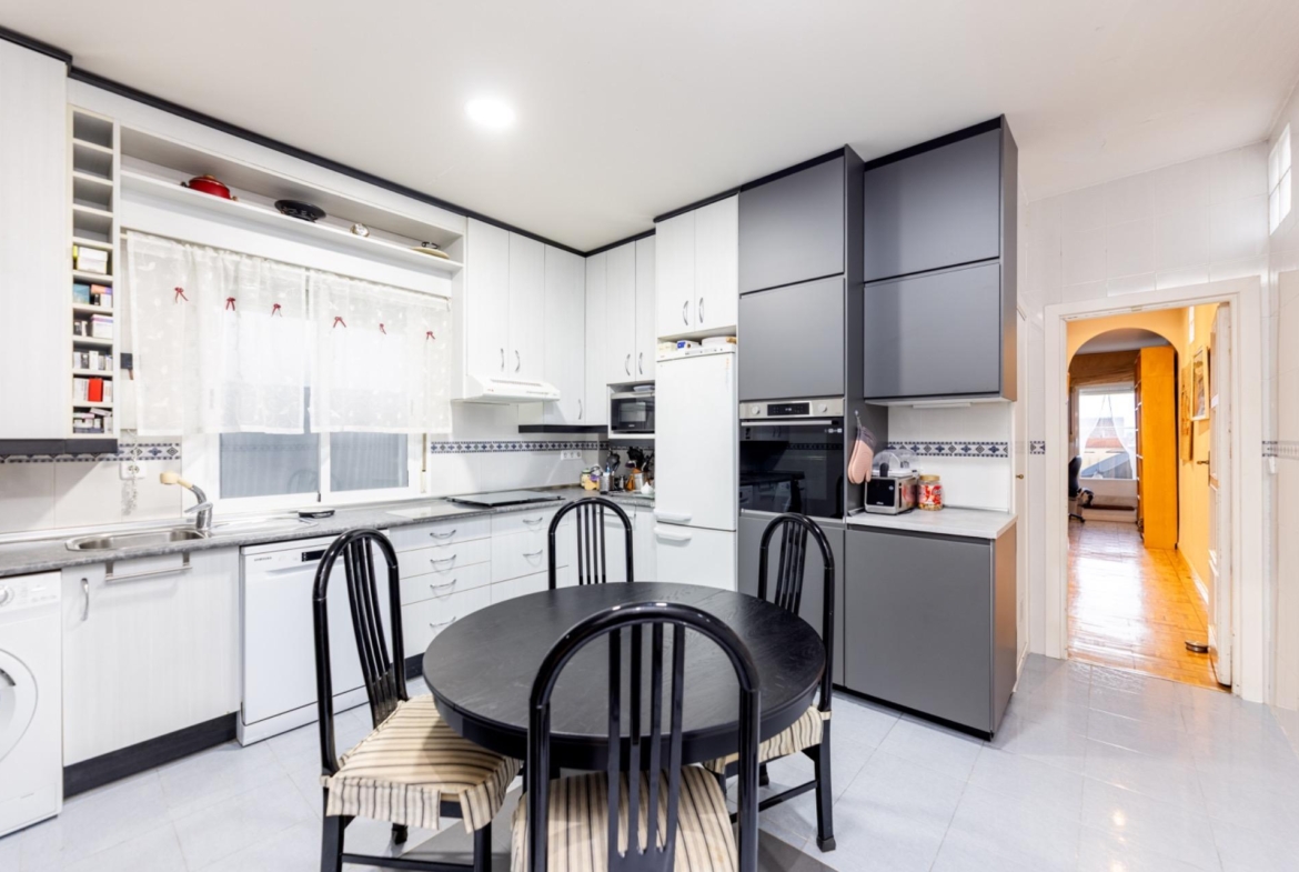 Se trata de un piso de 3 habitaciones (antes 4), con un gran baño (antes baño y aseo), un gran salón y una agradable y amplia terraza. Está reformado (tuberías, electricidad, ventanas, cocina, baño…) ofreciendo un toque más moderno y eficiente a la vivienda.