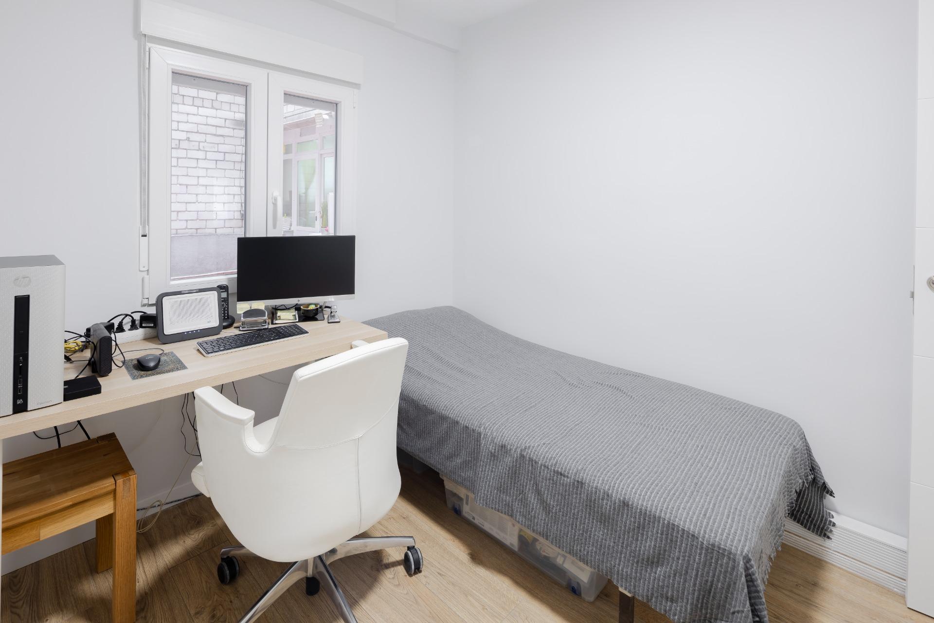 Puerta de acceso blindada. Calefacción central. Suelos de tarima. Paredes lisas. Carpintería lacada en blanco.