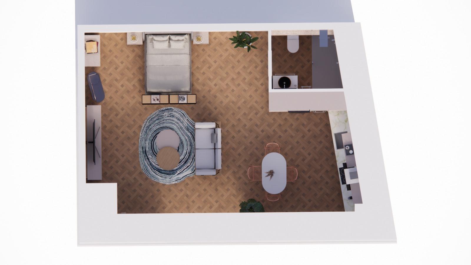 – Primera planta: apartamento de 38m2 en la 1ª planta.