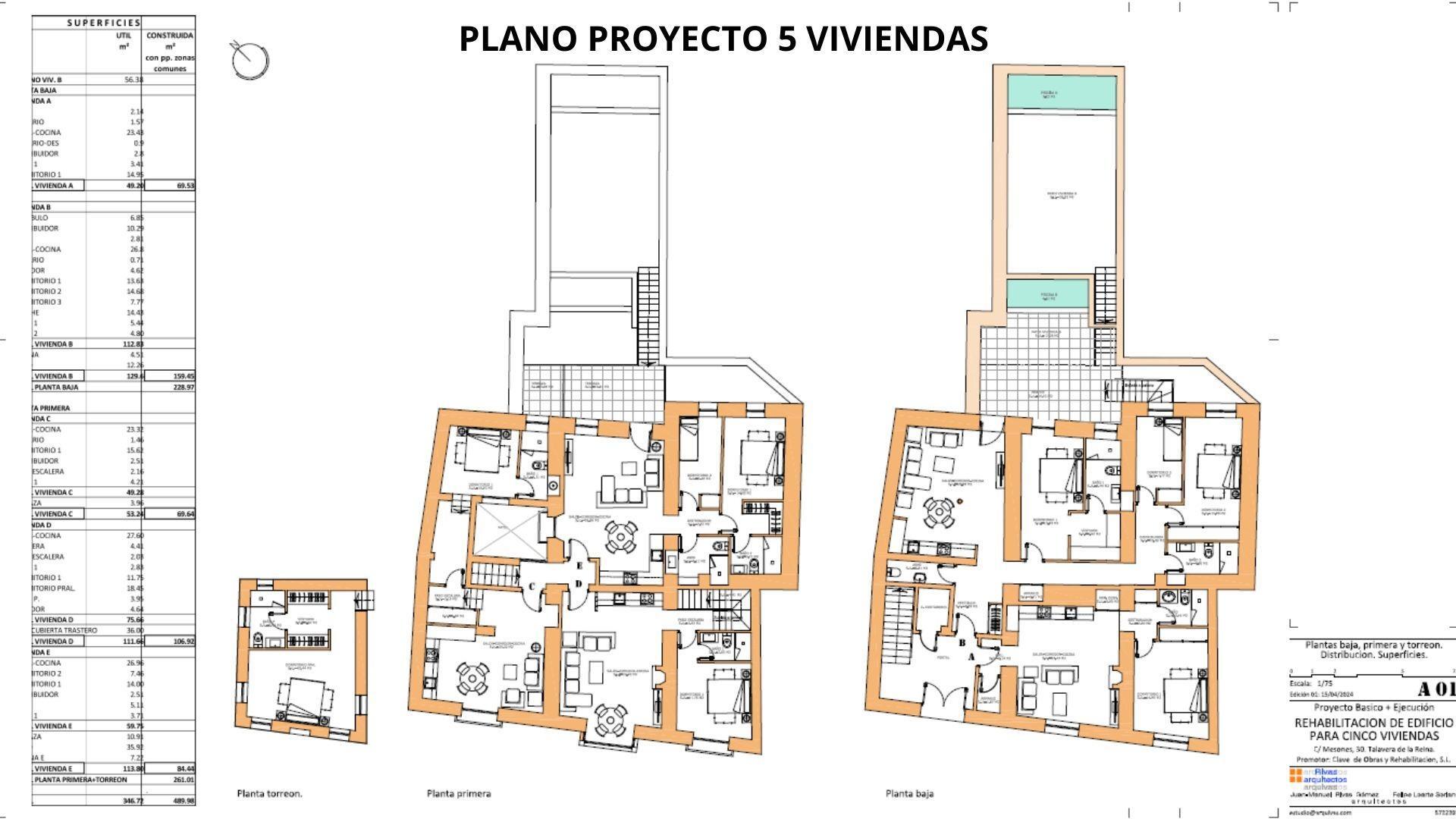 Para quienes buscan una inversión con futuro, esta propiedad incluye un proyecto aprobado para la creación de cinco viviendas: (de 69,53 m², 159,45 m², 69,64 m², 106,92 m² y 84,44 m², respectivamente)