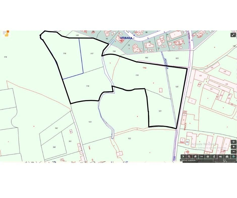 El terreno puede venderse como una sola parcela o dividirse en 6 parcelas individuales, según las necesidades del comprador. Una característica notable es la diferencia de altura a lo largo del terreno, con una parte que ofrece vistas al mar Mediterráneo.