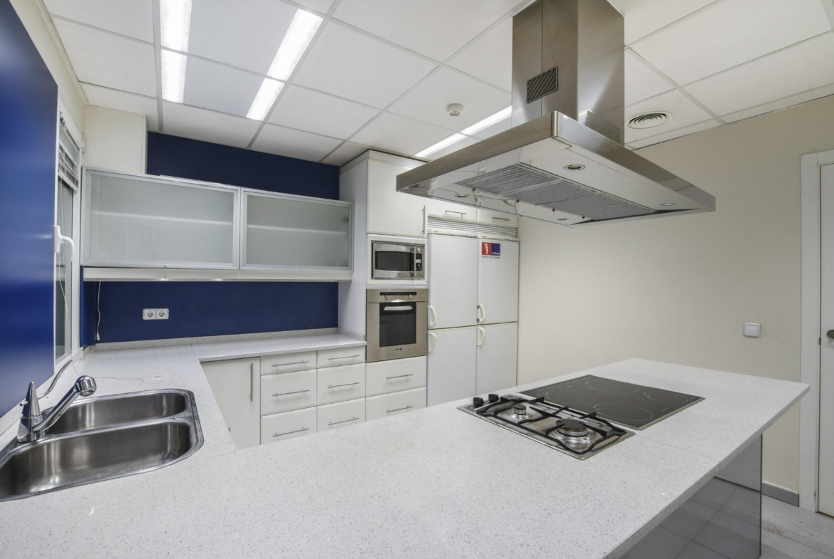 Una oficina totalmente diáfana. Con 231 m2 construidos en un espacio diáfano y con una cocina totalmente equipada y dos aseos. en edificio representativo con gran portal y varios ascensores. Portero físico.