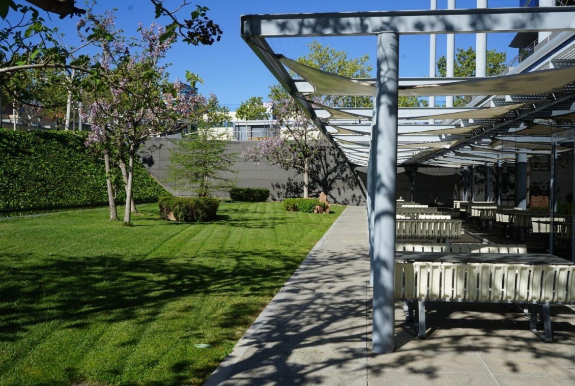 completamente equipada, y terraza ajardinada exterior disponible para cocktails y/o eventos. Con capacidad para 400 personas y equipo audiovisual incluido: pantalla de techo, proyector y TV