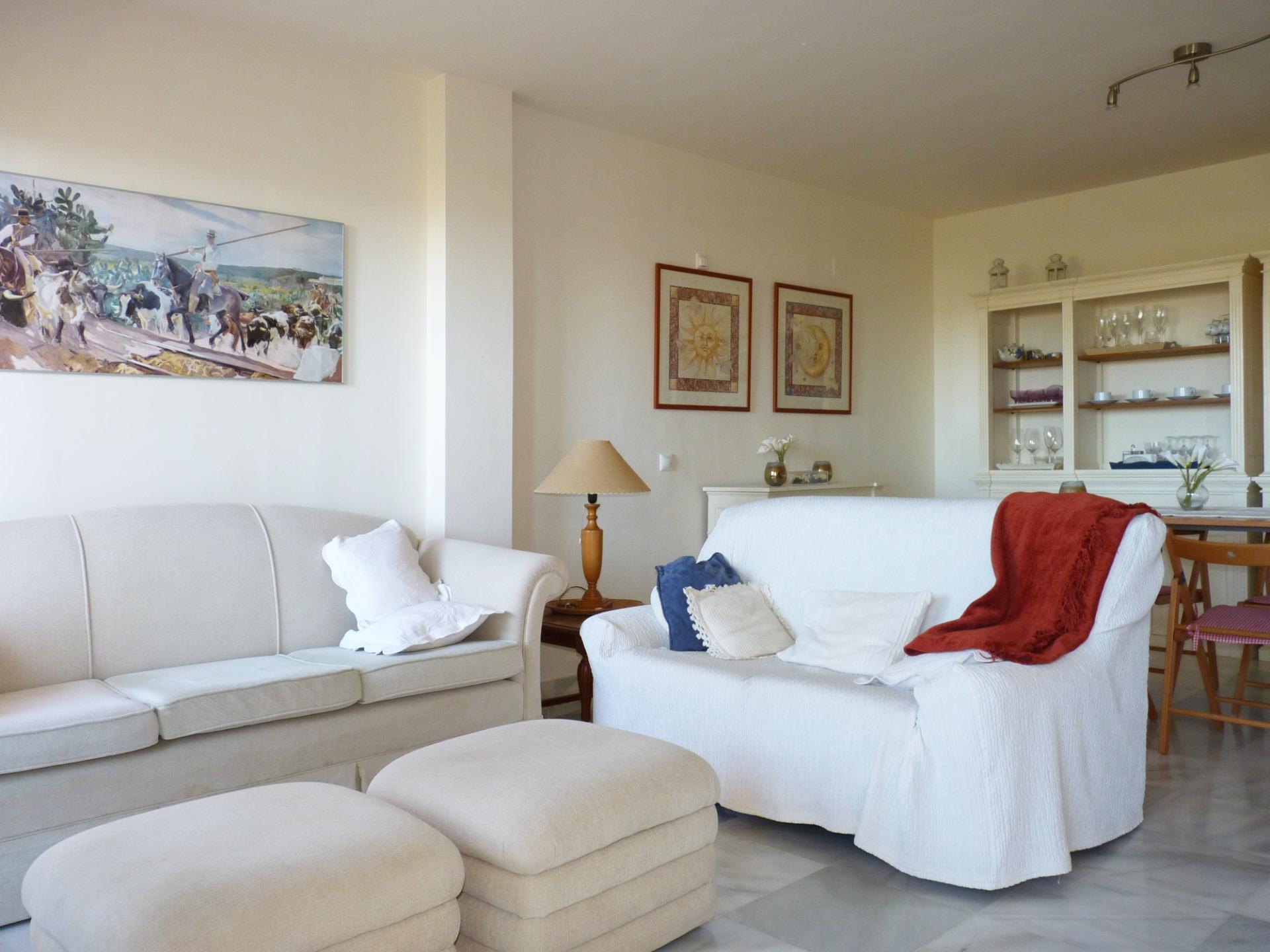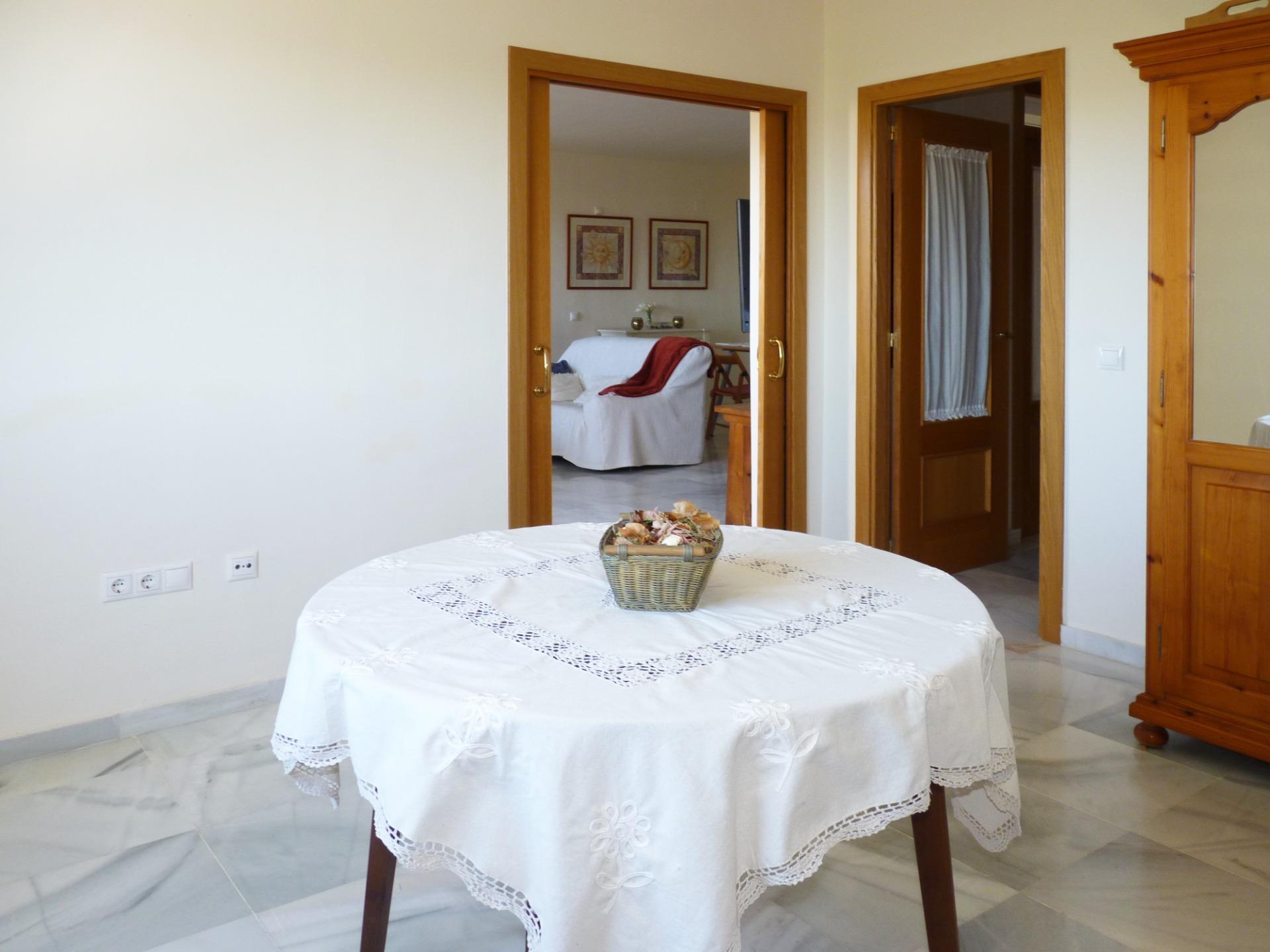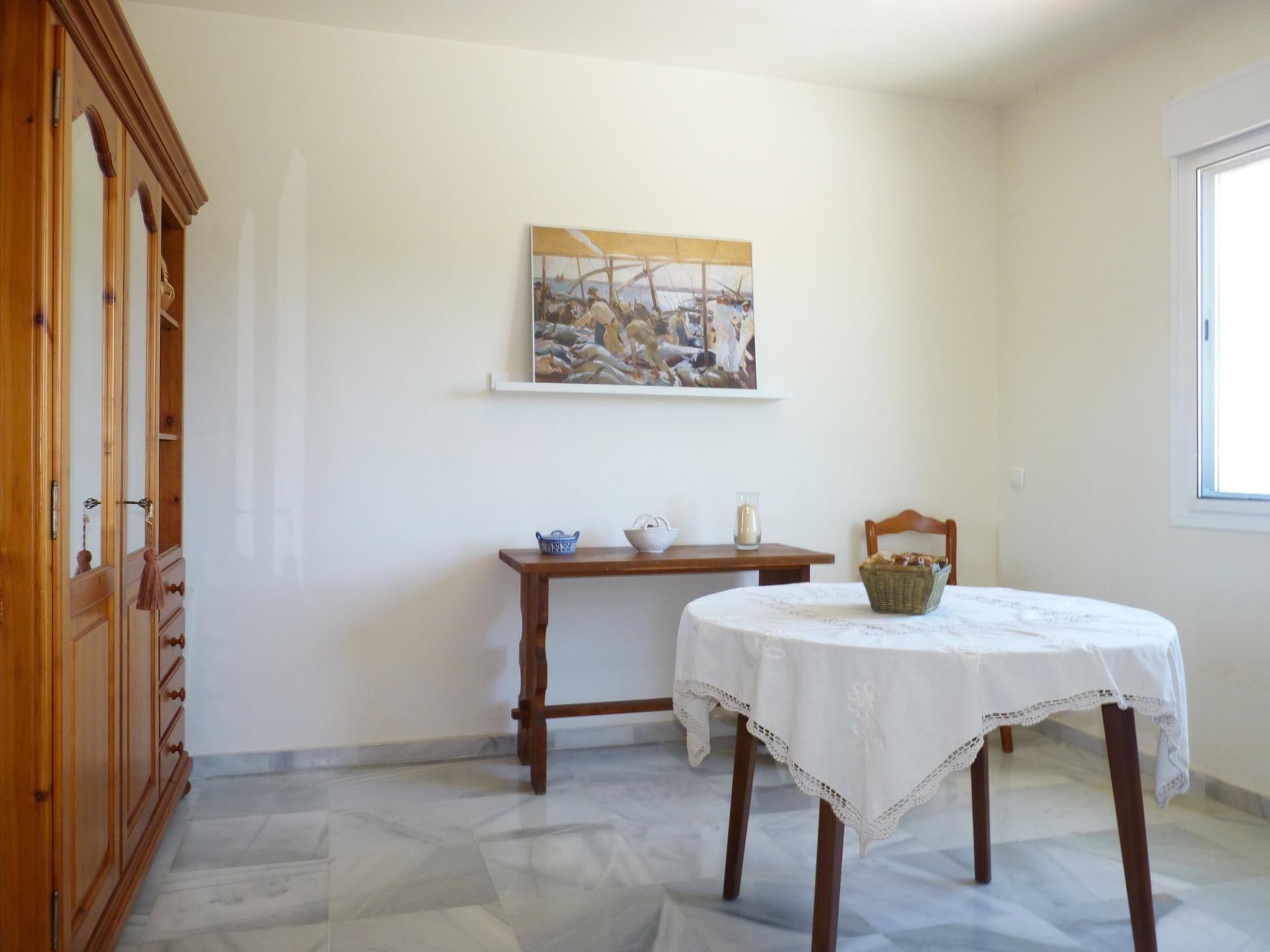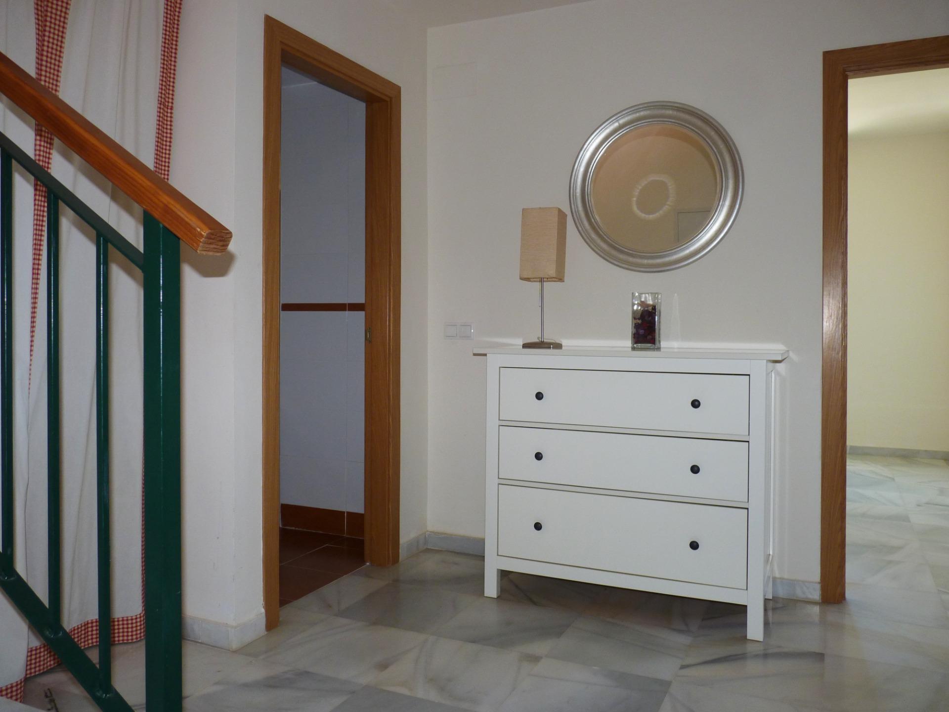 La solería de mármol en la entrada, pasillos, salón y dormitorios y la carpintería interior en roble y barnizada aportan calidez y confort a la vivienda.