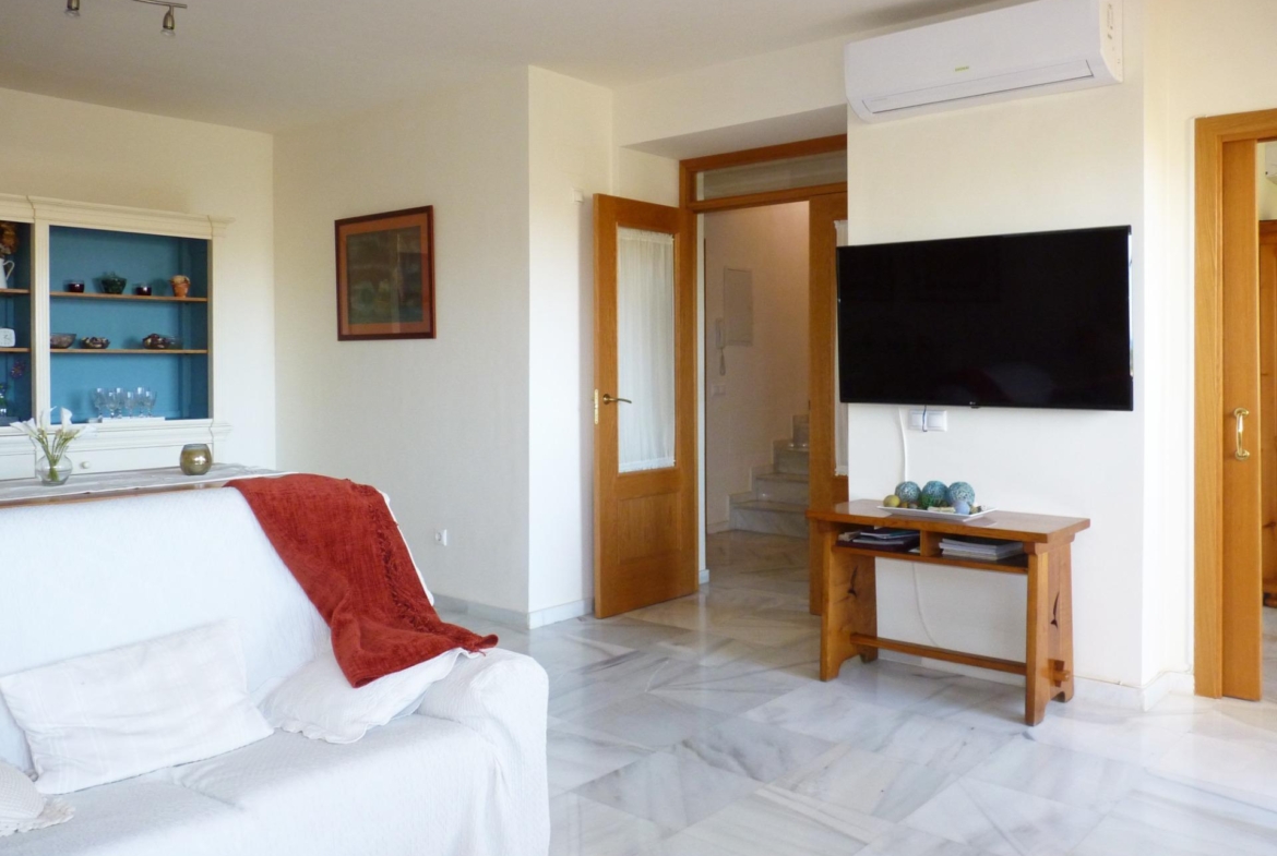 Ubicado estratégicamente a tan solo 750 metros de la playa, este hogar es un oasis de tranquilidad con impresionantes vistas panorámicas al mar. Imagina relajarte en su amplia terraza apergolada en la planta baja o disfrutar de la inmensidad de su terraza perimetral de 136 m² en la planta ático, perfecta para crear múltiples ambientes y deleitarte con el clima privilegiado de la Costa del Sol.