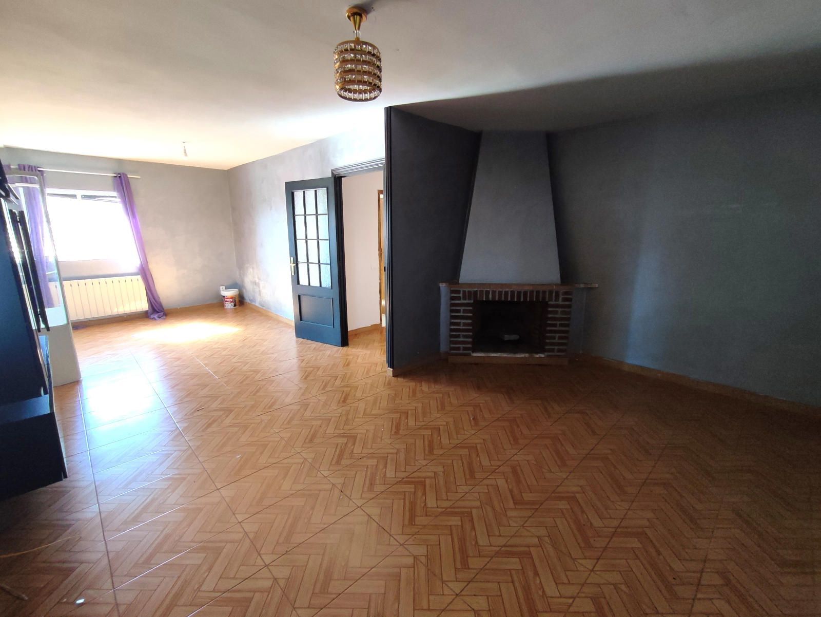 Amplio salón con chimenea y salida a terraza cubierta