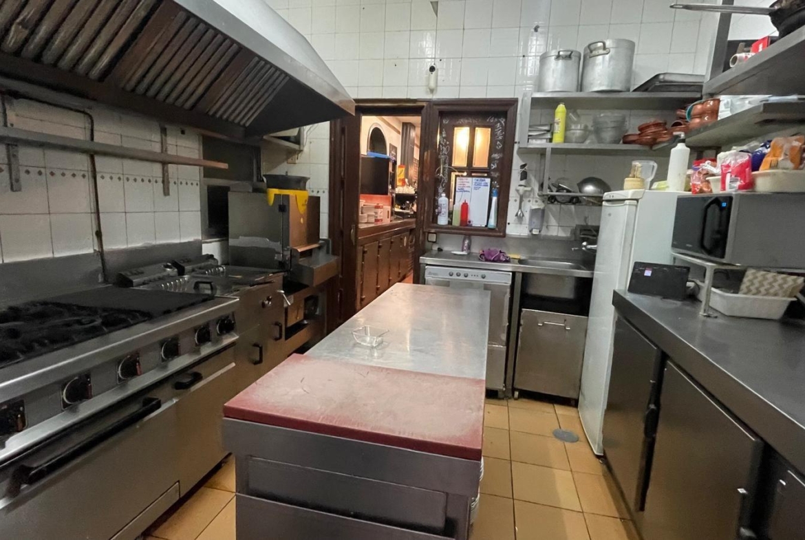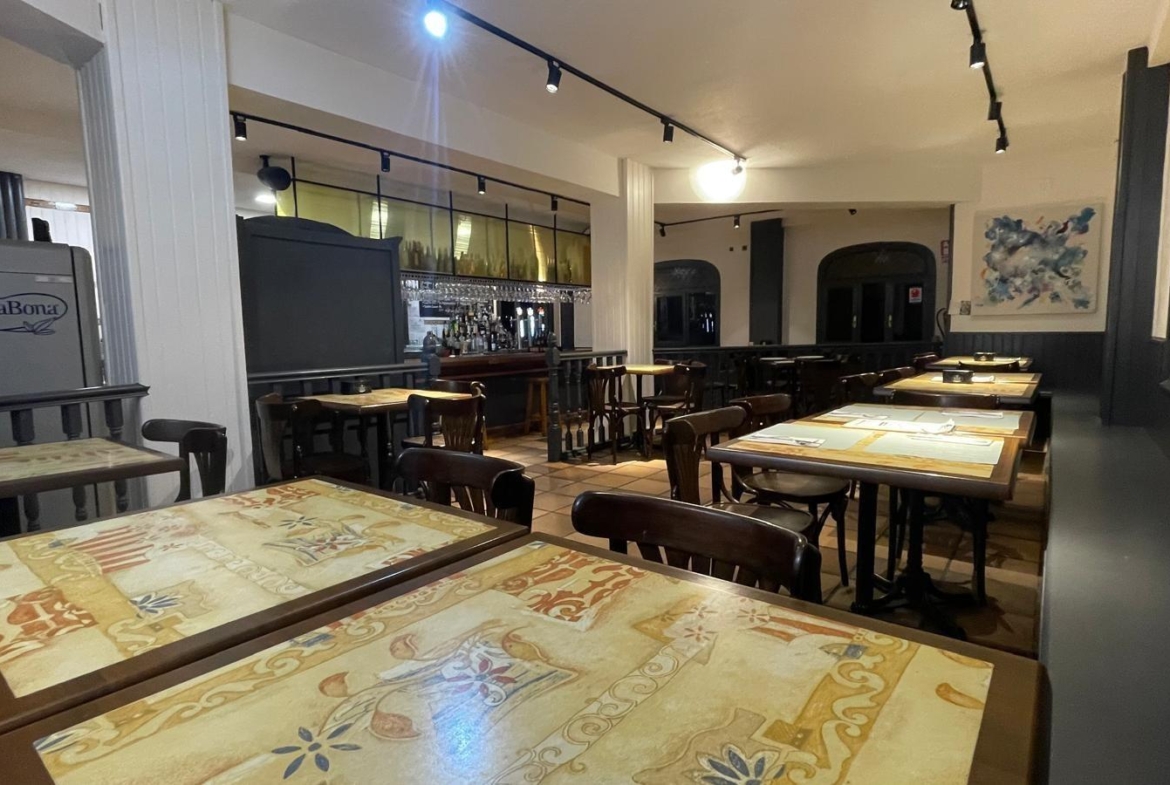 Su distribución incluye un salón con barra extensa, comedor para hasta 30 comensales y una terraza cubierta climatizada apta para eventos múltiples, capaz de acoger a otros 40 clientes cómodamente; además dispone del equipamiento adecuado como cocina funcional e instalaciones sanitarias.