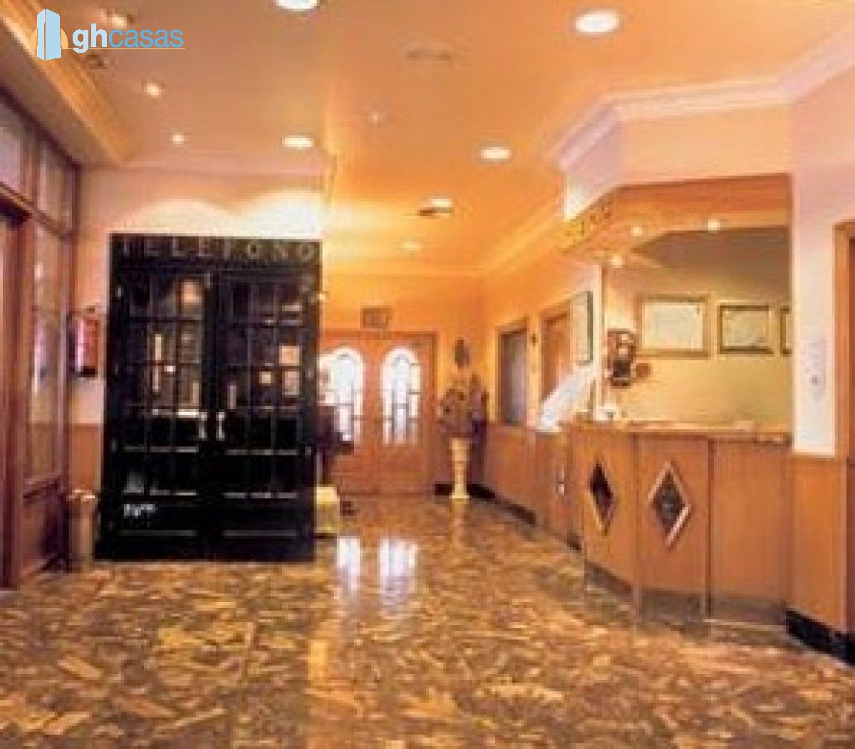 Planta baja: Salones comedores, bar, cocina, oficios, recepción, conserjería, baños.
