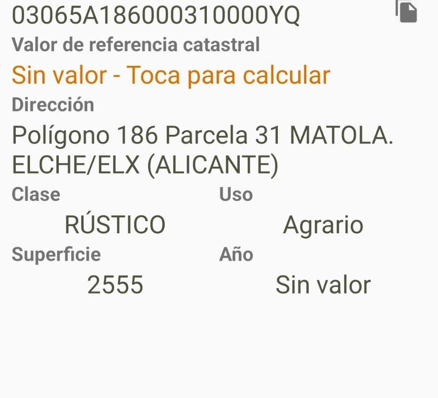Se vende terreno en la zona de Matola, Elche, con una superficie de 2.555 m². Ubicado en un entorno tranquilo y bien comunicado, este terreno ofrece multitud de posibilidades para uso agrícola, recreativo o como inversión.