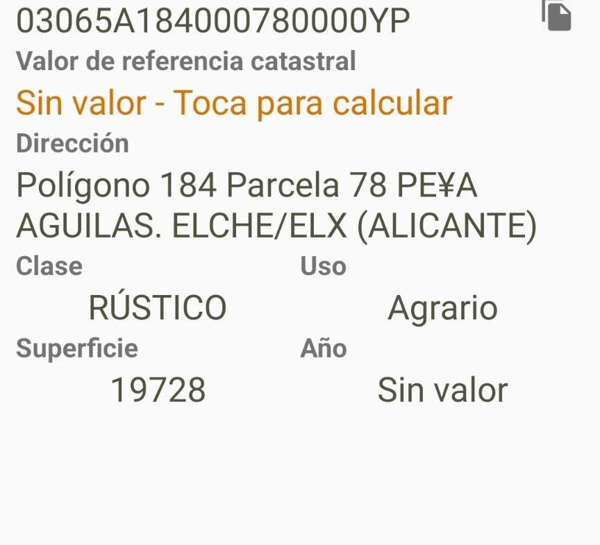 Se vende terreno urbanizable de 19.728 m² en la exclusiva zona de Peña de las Águilas, una de las áreas más valoradas de Elche por su tranquilidad, entorno natural y excelente conexión con la ciudad.