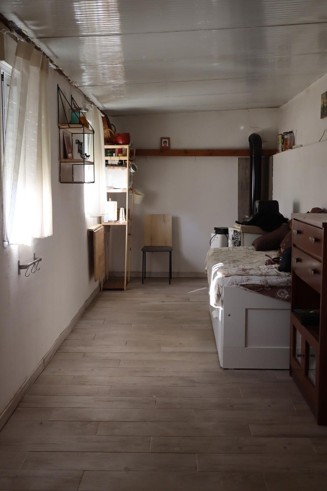 • Caseta de hormigón ya construida: equipada con baño, dormitorio, cocina básica y chimenea, lista para uso inmediato como punto de apoyo o vivienda provisional.