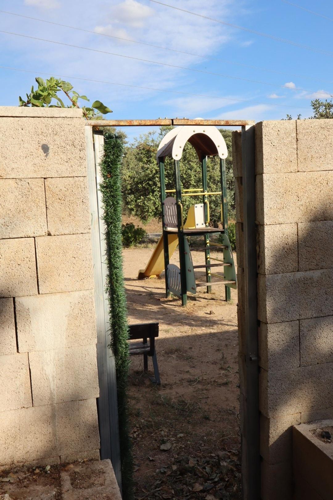 • Infraestructuras ya instaladas: conexión de luz y agua disponibles (pendientes sólo de contratación), muros de ocultación construidos, y fachada terminada en hormigón con puerta de garaje y entrada peatonal en línea con el estilo vecino.