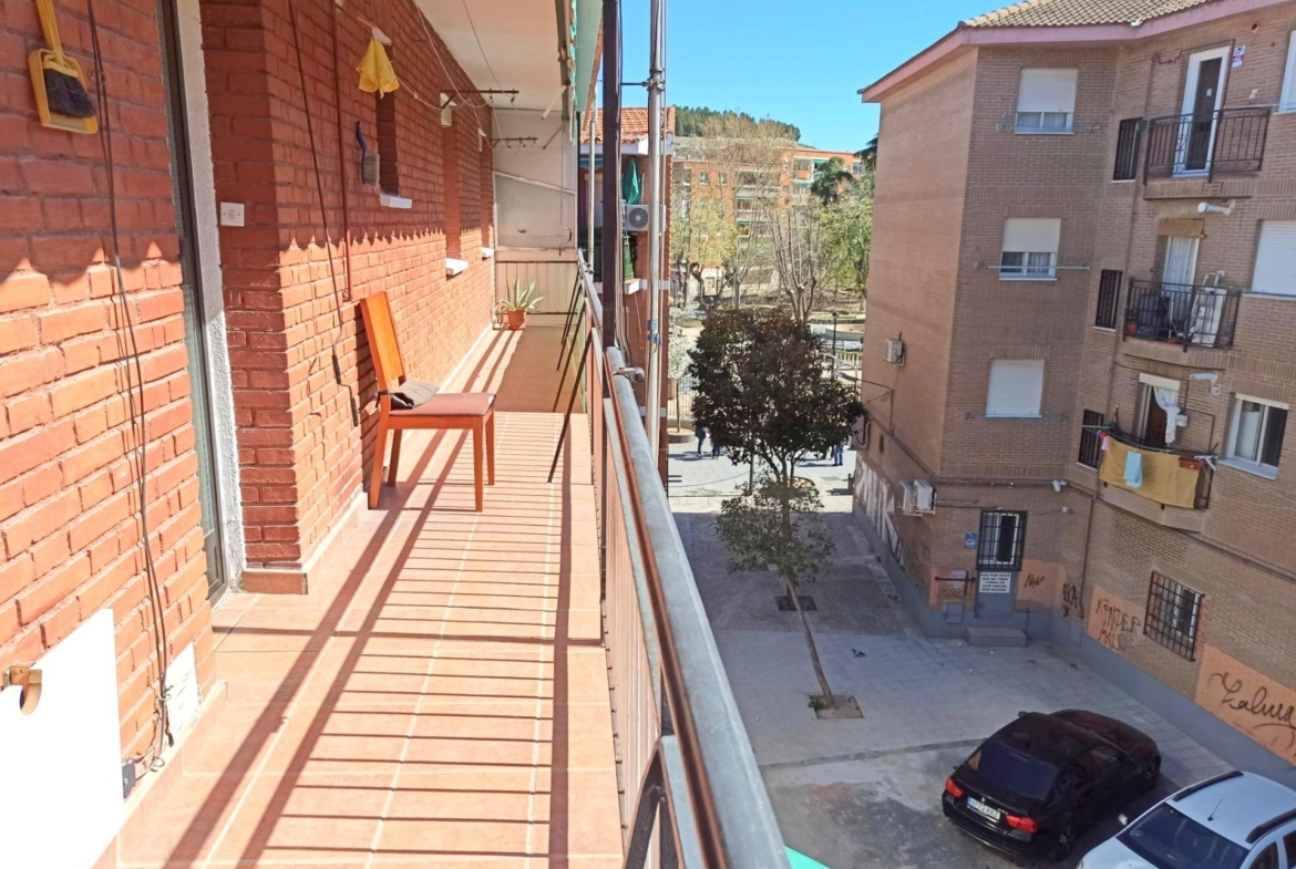 PISO TOTALMENTE EXTERIOR E IMPRESIONANTE TERRAZA TODA EN ESQUINA CON UNA PARTE CERRADA y preparada para poder cocinar, situado AL LADO DEL METRO DE ARGANDA, MUY LUMINOSO, aunque es altura de tercero, son escaleras muy cómodas, y tiene 90 m2 construidos aprox. y consta de 3 habitaciones 1 con armario empotrado, 1 cuarto de baño, cocina amueblada, y ventanas de aluminio, la calefacción de gas natural. La terraza tiene toldos.