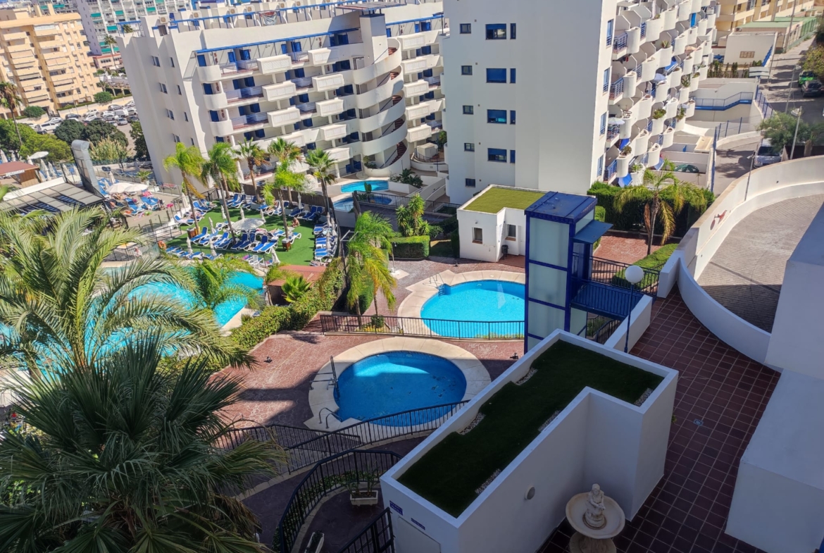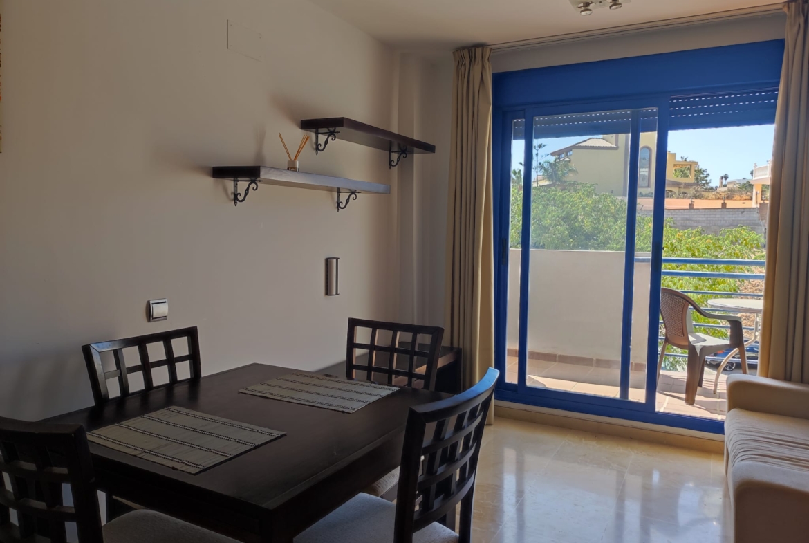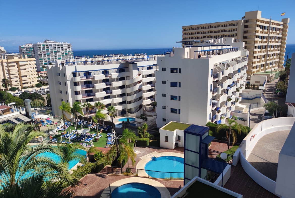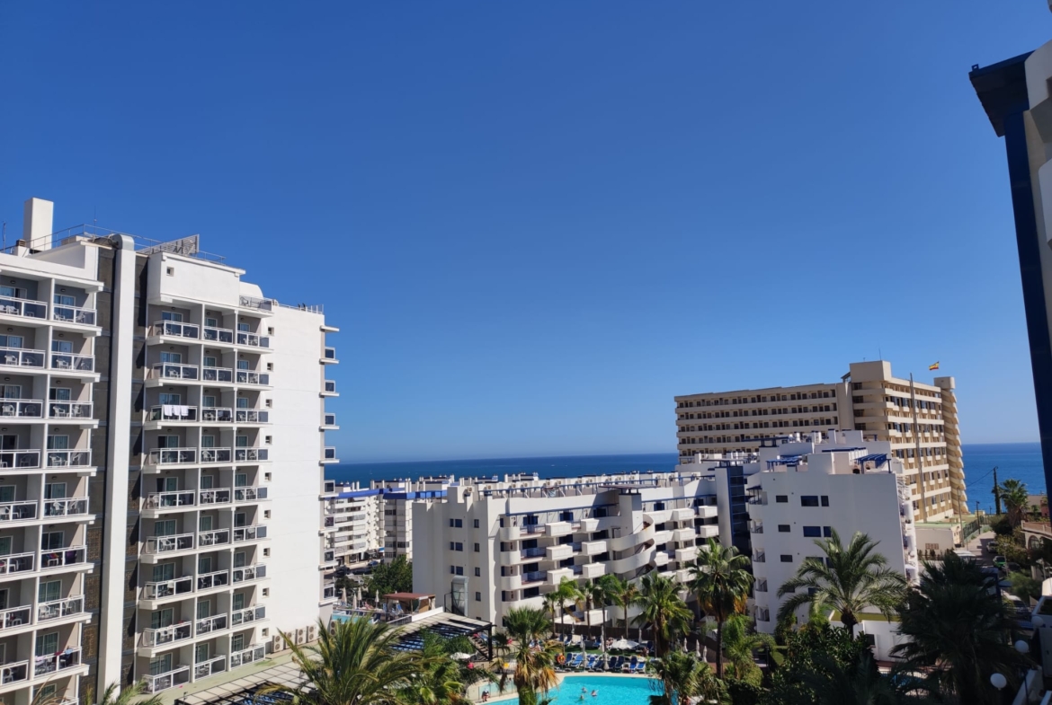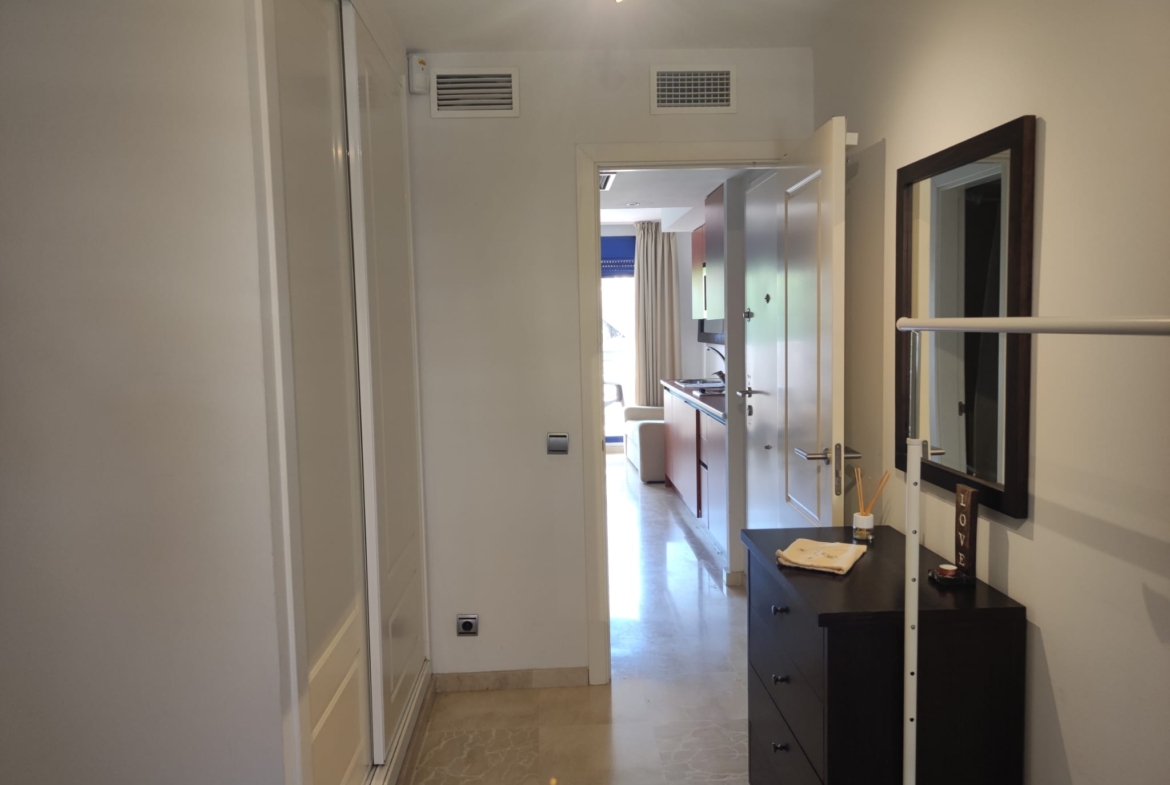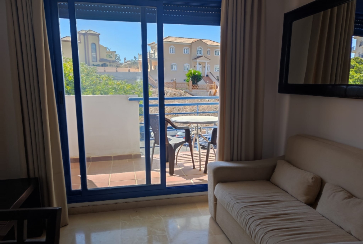 Piso en alquiler Benalmádena Costa. Vivienda de 1 habitación con salón-comedor y cocina incorporada, baño con plato de ducha y terraza.