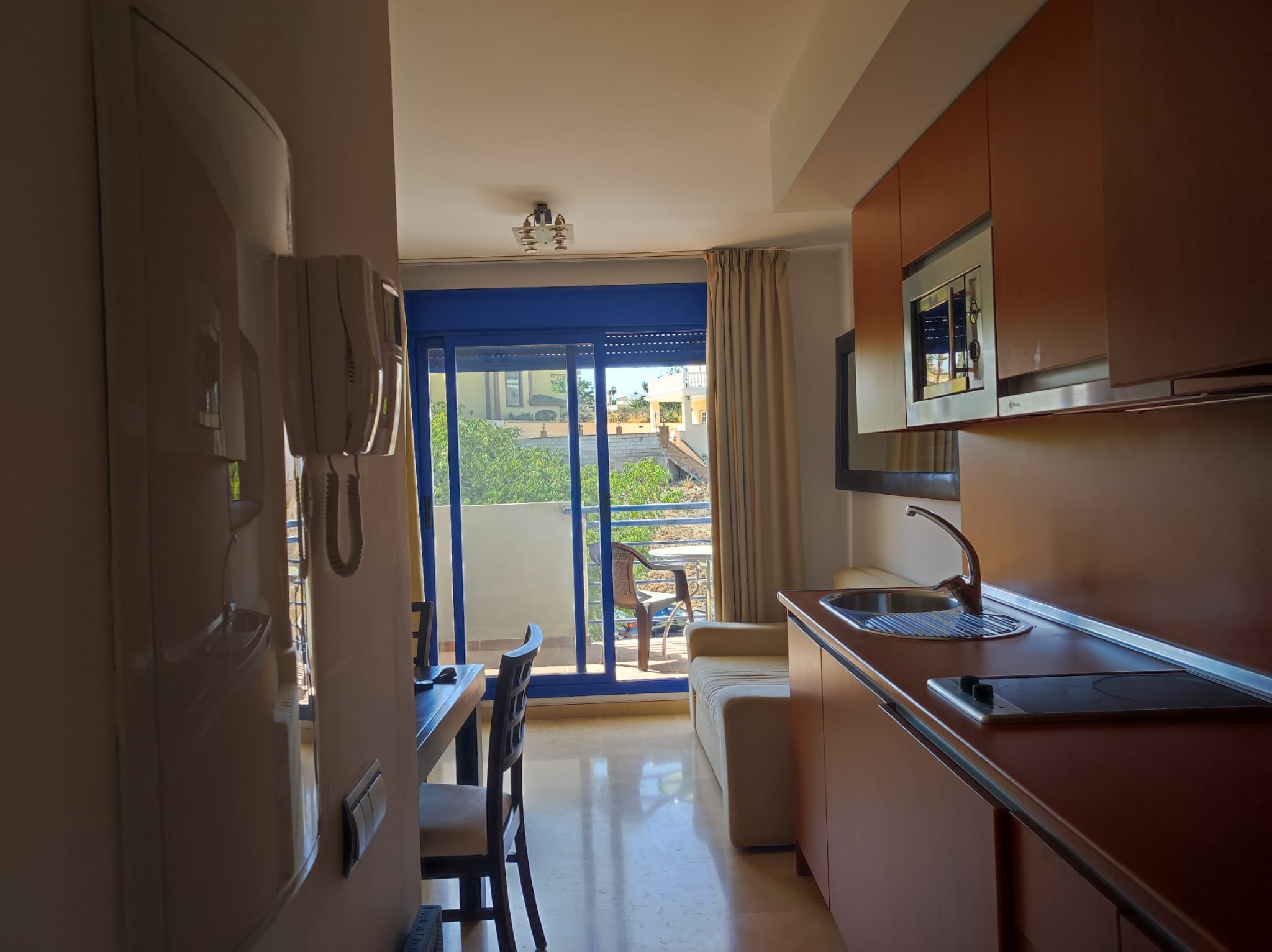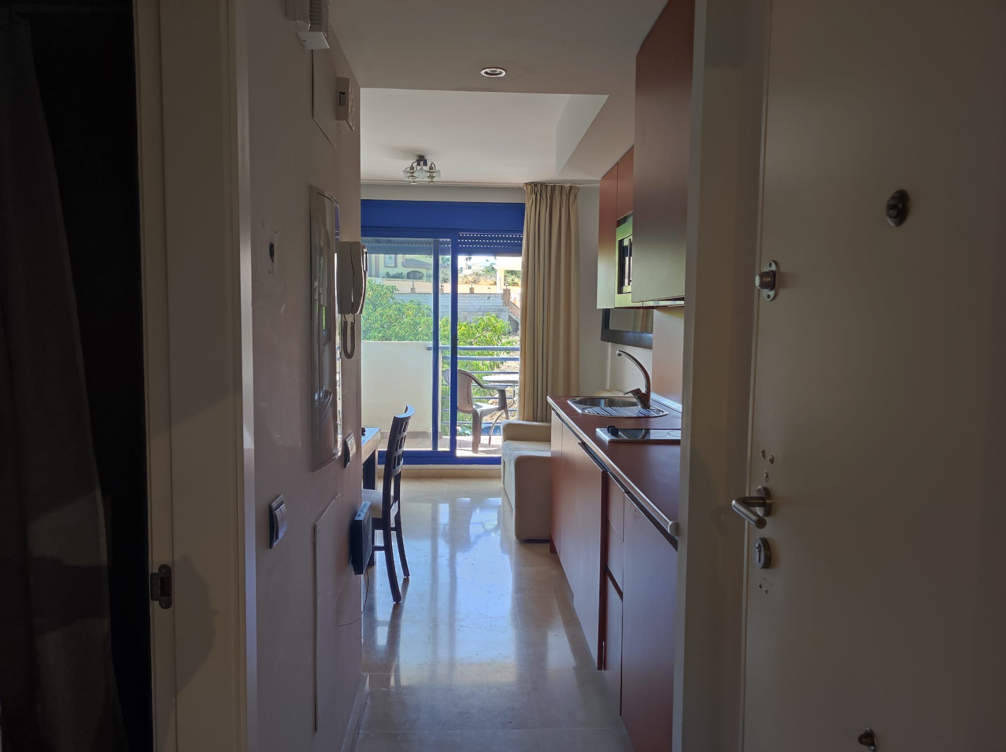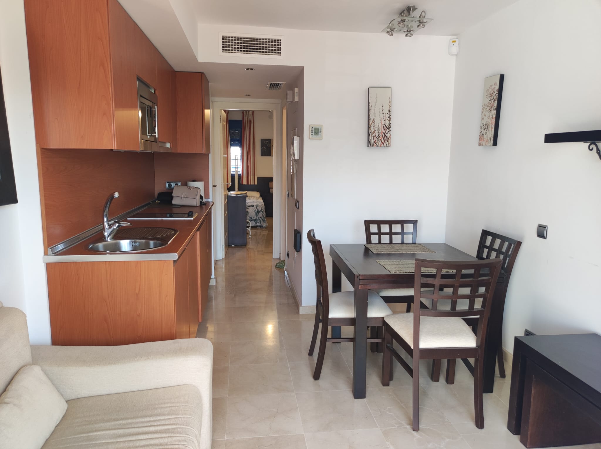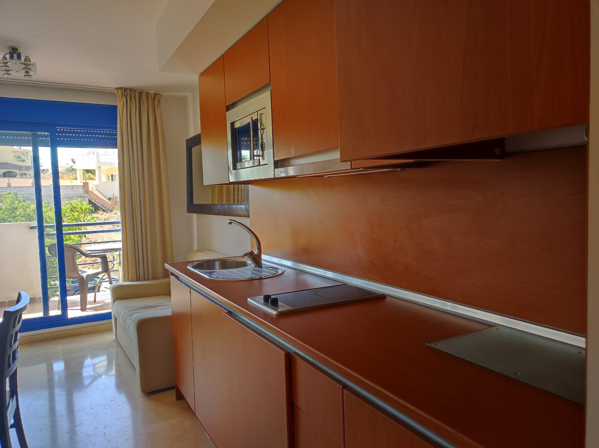 Piso en alquiler Benalmádena Costa. Vivienda de 1 habitación con salón-comedor y cocina incorporada, baño con plato de ducha y terraza.