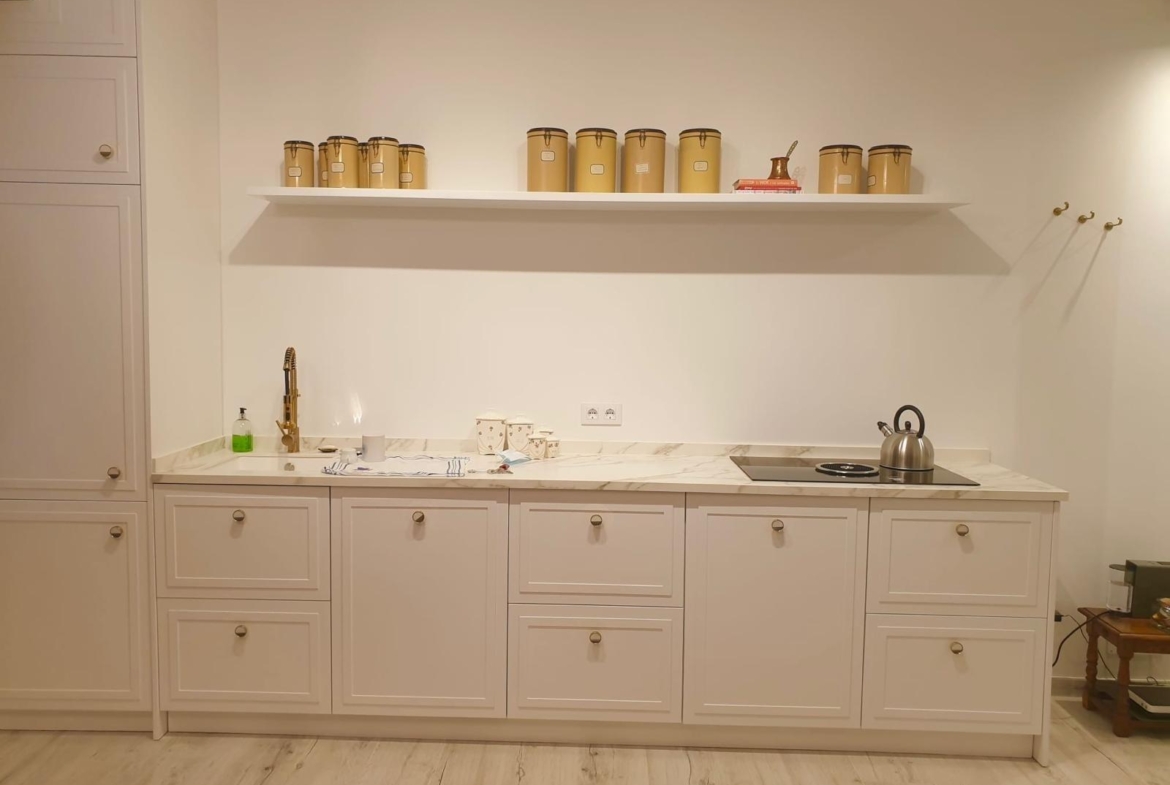 Cuenta con una superficie bien aprovechada con una distribución óptima. Cocina de diseño integrada con el salón, equipada con electrodomésticos de alta gama: nevera integrada, lavadora, secadora y utensilios de cocina.