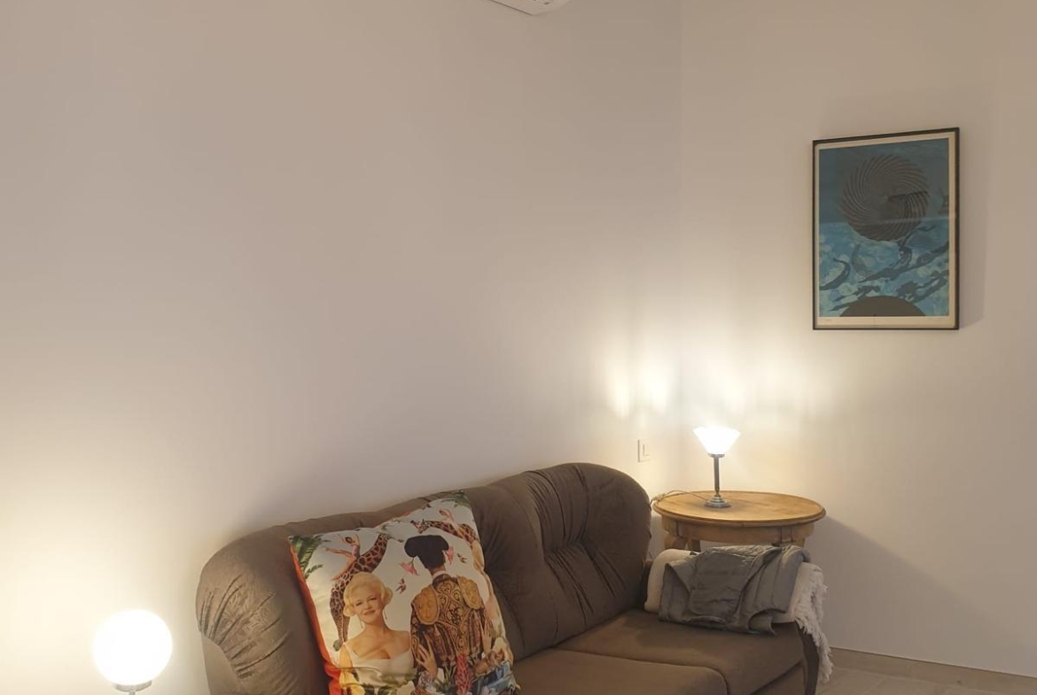 Amueblado con estilo, incluye sofá cama, mesa y sillas de comedor, electrodomésticos, utensilios de cocina, cama y decoración.