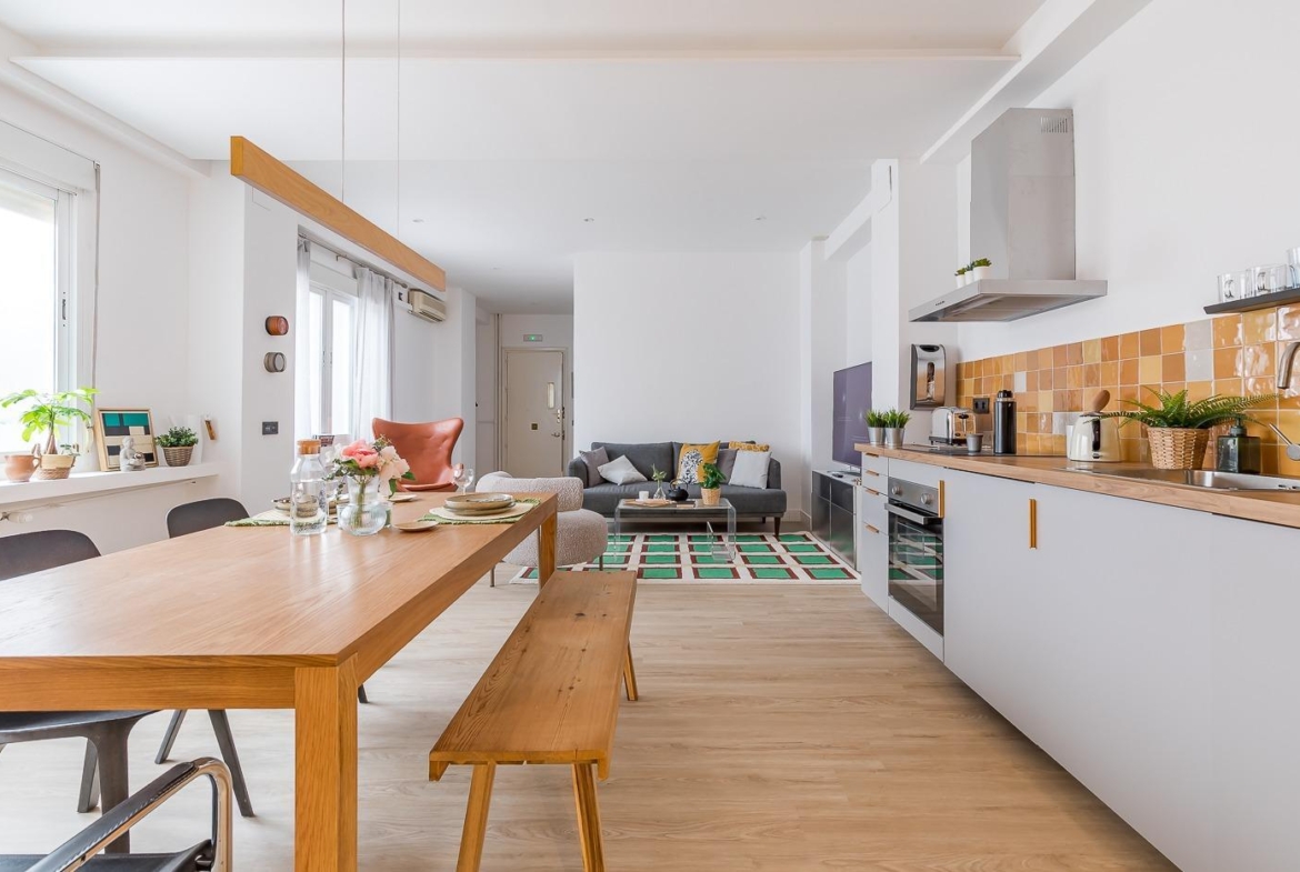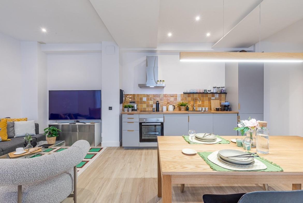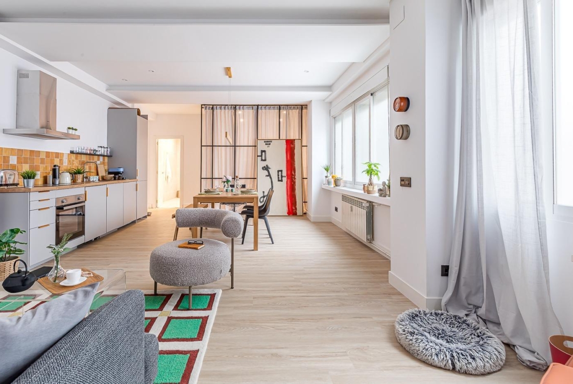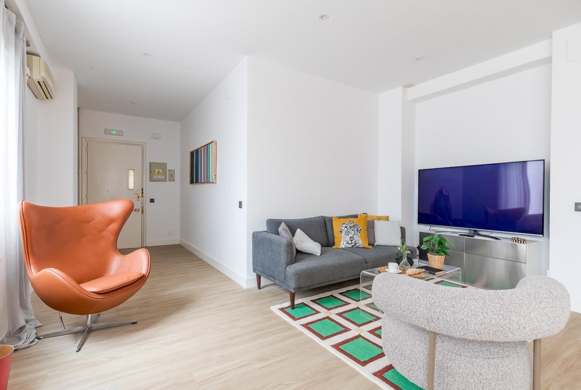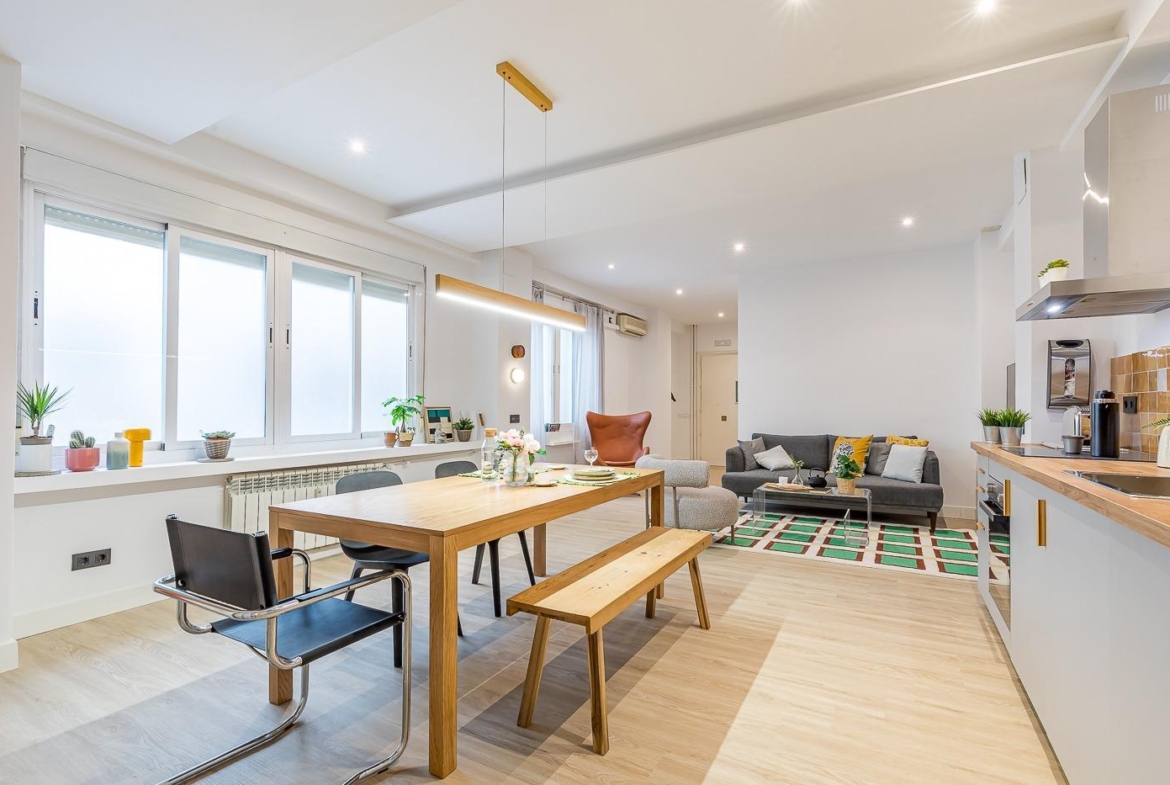 Este apartamento magníficamente ubicado en el palpitante corazón de Madrid esta totalmente reformado y listo para recibir a sus nuevos propietarios. Al entrar accedemos a un hall de entrada y desde este a una sala diáfana con mucha luz que proporciona espacio para salón-comedor y cocina totalmente equipada, al fondo de esta en un ambiente separado hay un dormitorio espacioso y un cuarto de baño completo. El piso gira alrededor de un patio que proyecta luz y transmite una buena sensación de amplitud.