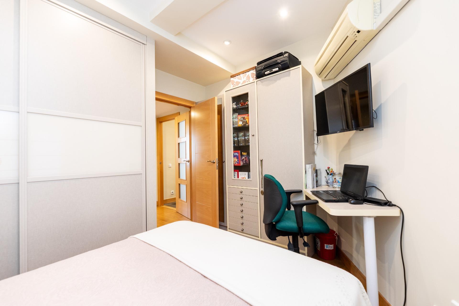 Dispone de cuatro dormitorios, todos ellos con armarios empotrados, y dos cuartos de baño completos. El salón, amplio y muy luminoso, cuenta con una superficie aproximada de 22 m², ofreciendo un espacio cómodo y elegante para el día a día.