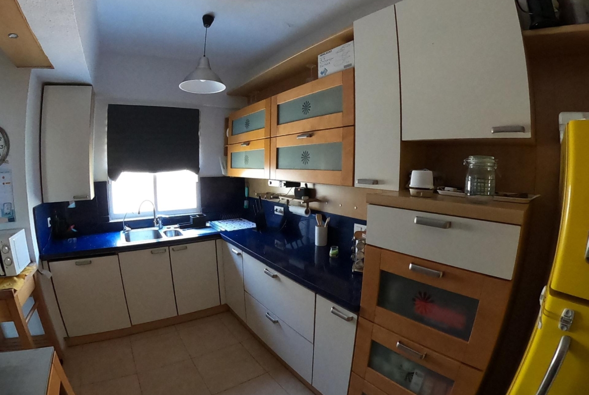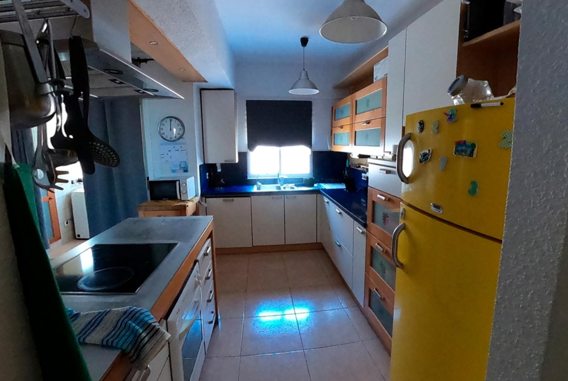 Este espacioso piso, de aproximadamente 90 metros cuadrados, está distribuido de manera muy práctica. Cuenta con un salón comedor con cocina americana integrada a través de una moderna isla. La vivienda dispone de tres habitaciones: dos dobles y una sencilla, esta última con un amplio armario. Además, tiene un baño completo con moderno plato de ducha y una cómoda solana.