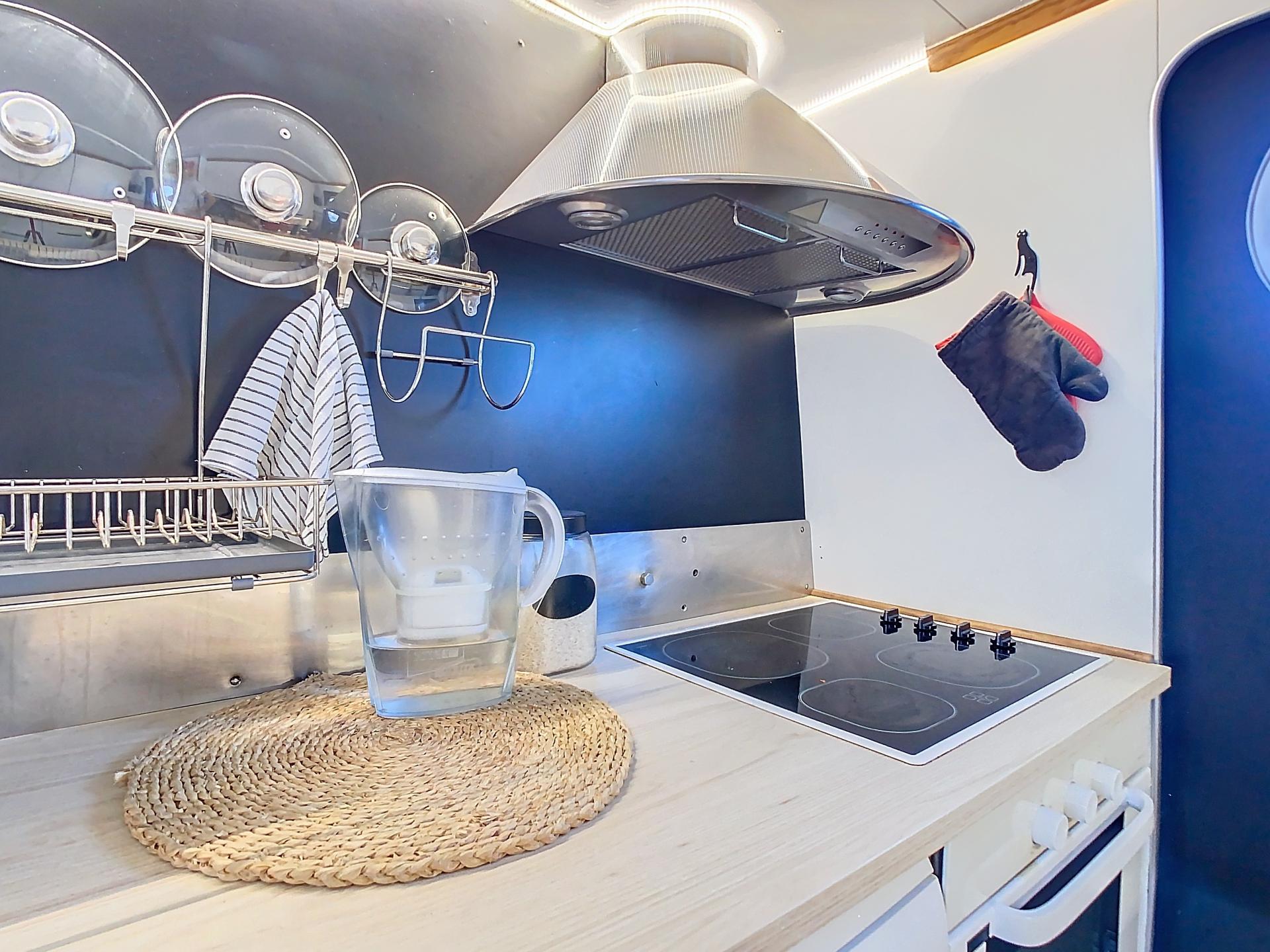 Disfruta de impresionantes vistas al mar desde tu terraza privada en el piso superior, perfecta para relajarte y recibir a tus invitados. La cocina está totalmente equipada con electrodomésticos de alta calidad.