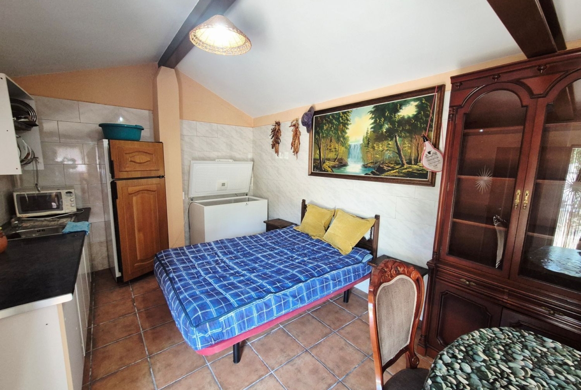 La vivienda cuenta con un acogedor dormitorio, un amplio salón con chimenea que invita a relajarse, y una cocina completamente amueblada con electrodomésticos. Además, el baño completo. el porche es ideal para disfrutar de las agradables tardes al aire libre, mientras que el jardín y las zonas comunes añade un toque especial a este hogar. En el recinto se encuentra una casa/vivienda para invitados, con cocina/salón con chimenea y dormitorio todo en la misma planta.