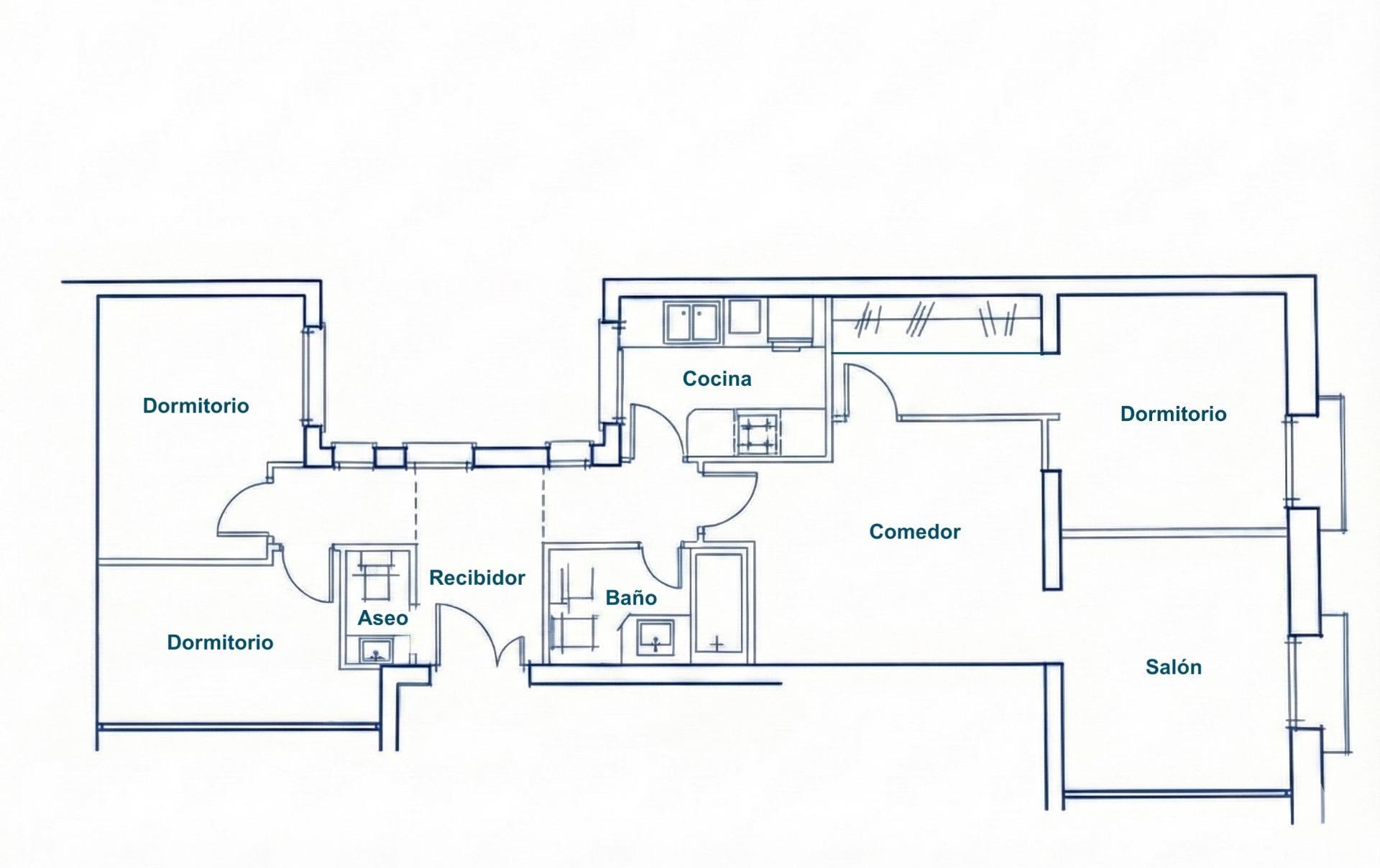 Un hogar con estancias bien proporcionadas y una distribución que separa de manera natural las zonas de día y de noche. Una vivienda ideal para quienes valoran la luminosidad, el espacio y una ubicación vibrante sin renunciar a la tranquilidad dentro de casa.