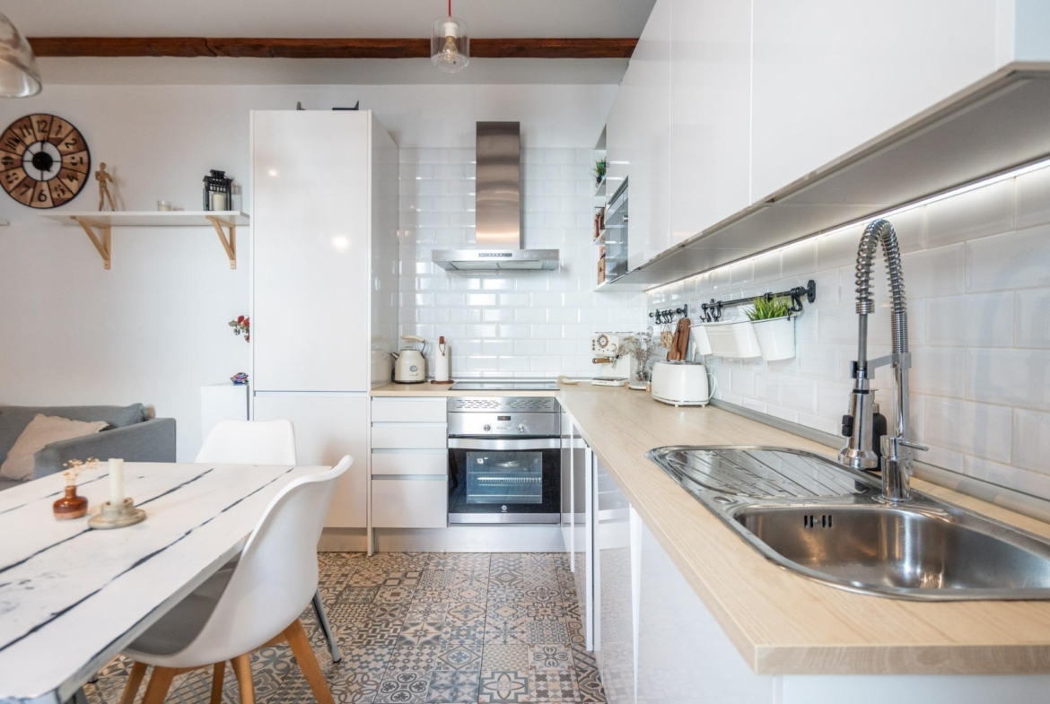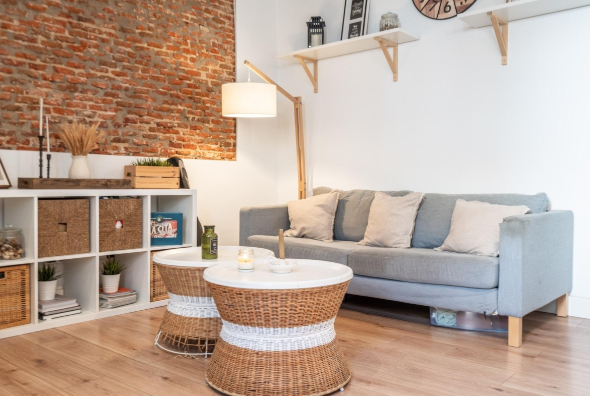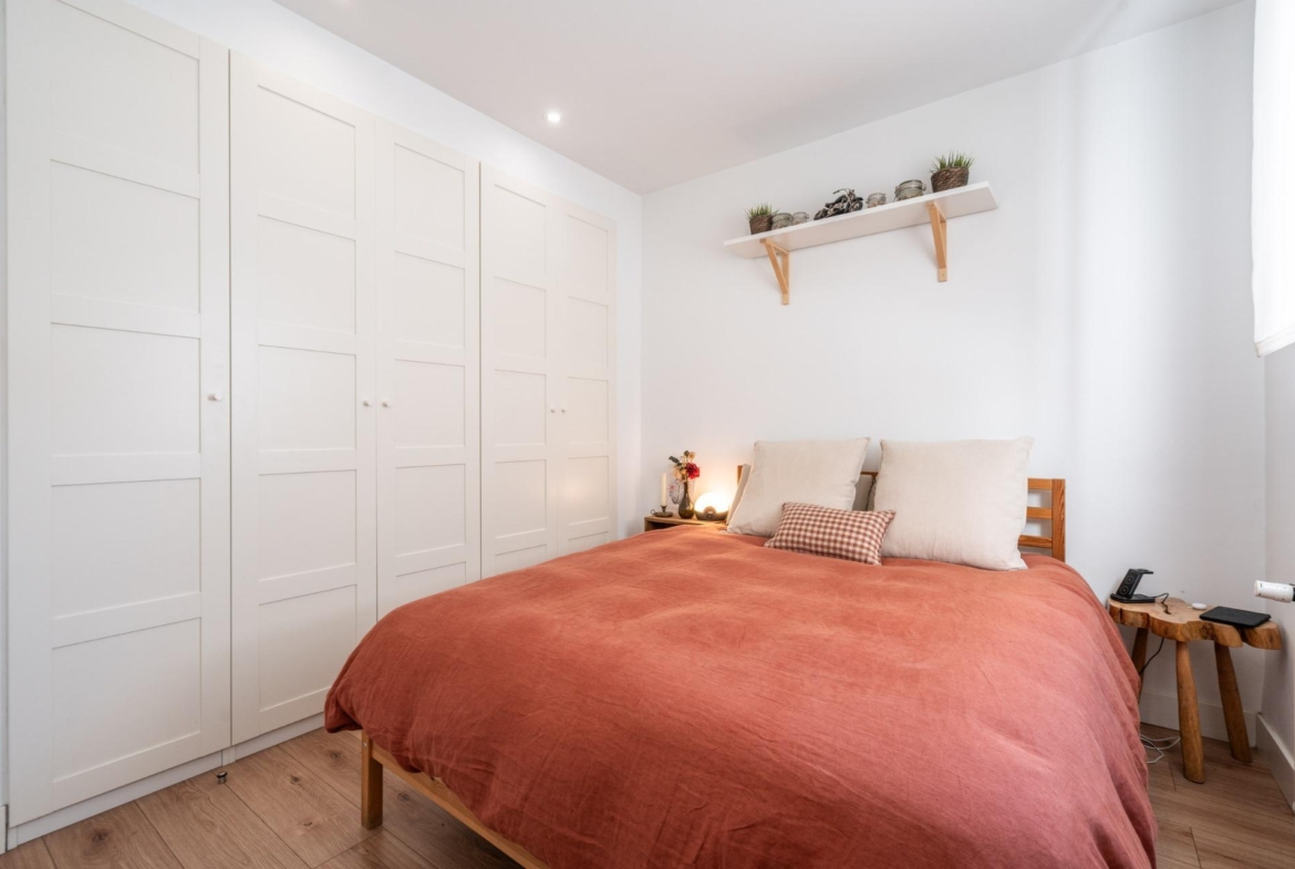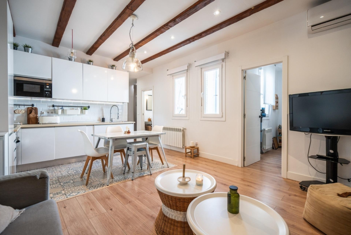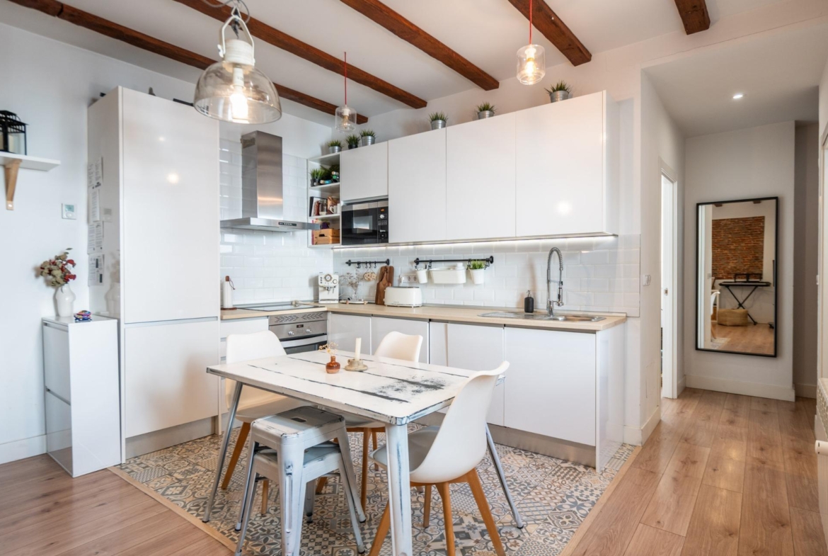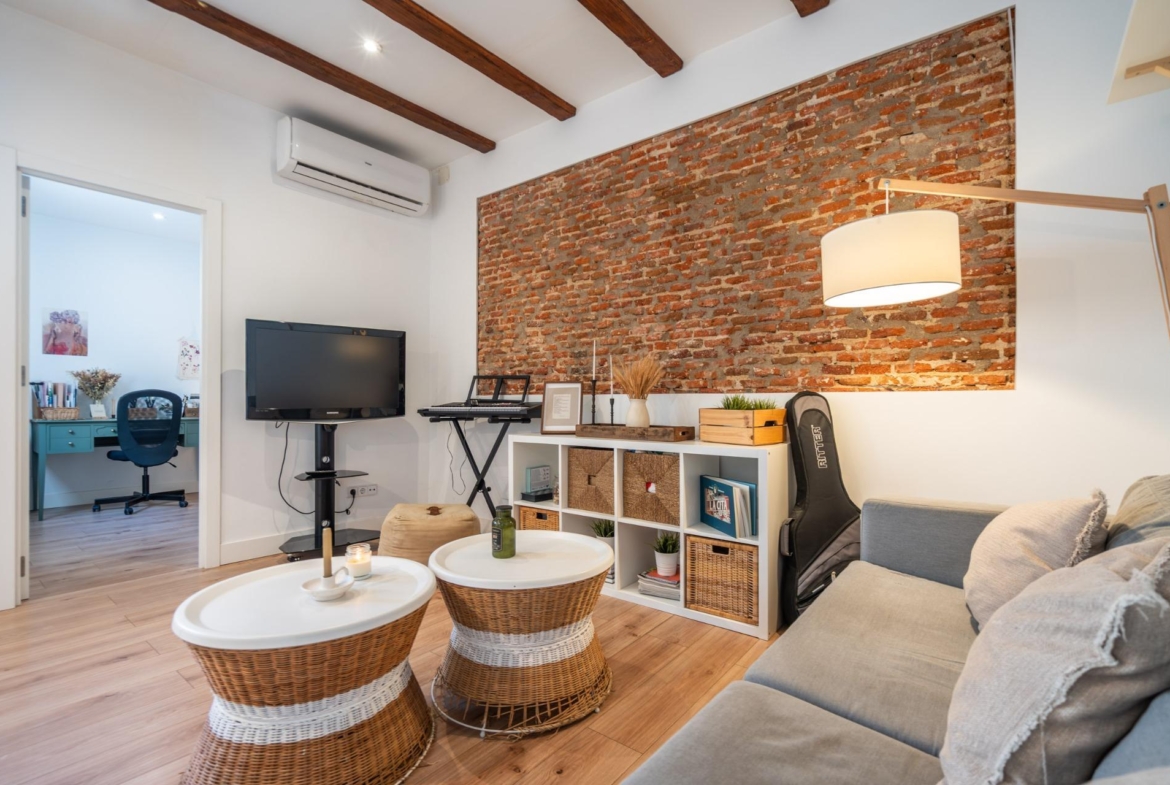 La vivienda ha sido completamente reformada con un estilo contemporáneo lleno de personalidad. Destacan los techos con vigas de madera vistas, el contraste del ladrillo original en el salón y los acabados en tonos neutros que aportan calidez, equilibrio y una estética atemporal. El piso se distribuye en dos habitaciones, un cuarto de baño completo y una cocina abierta al salón que favorece la amplitud y la entrada de luz natural.