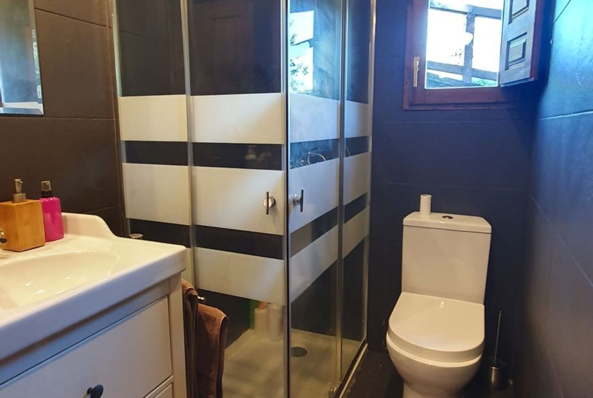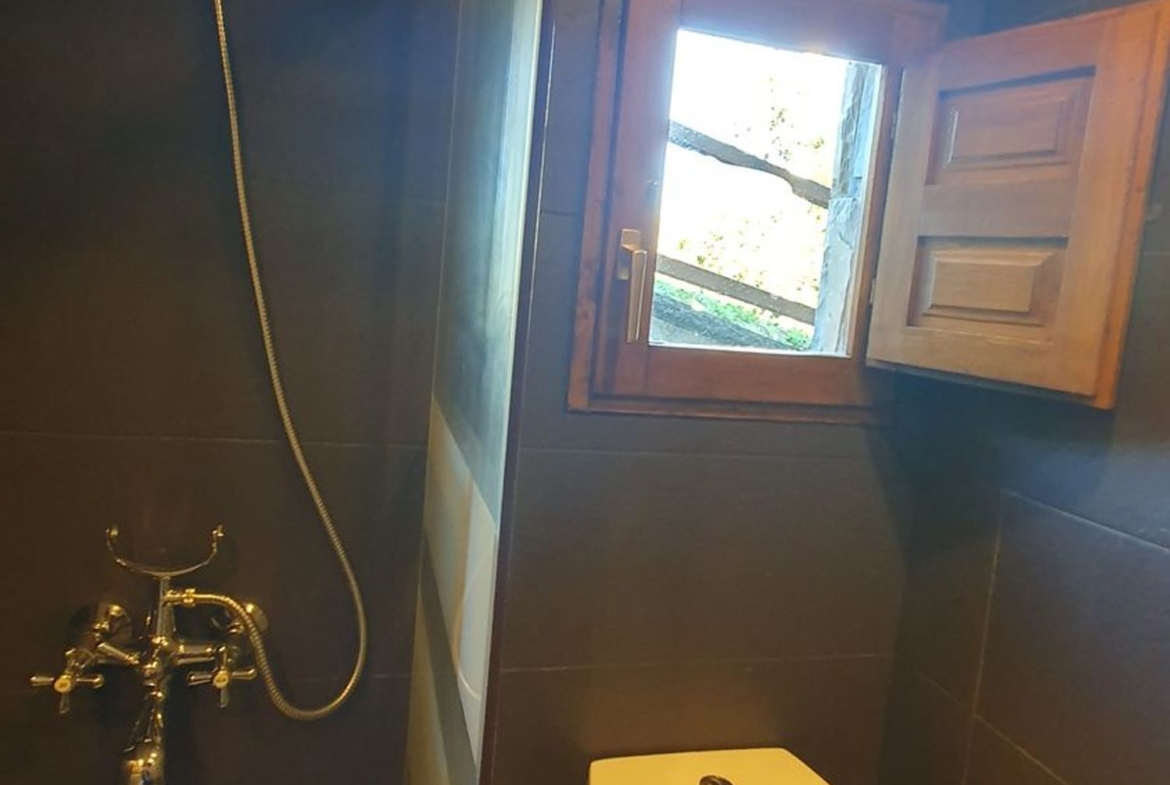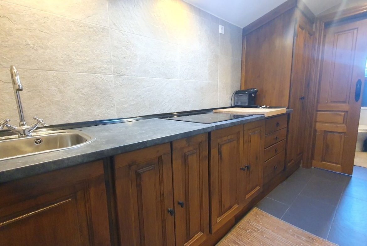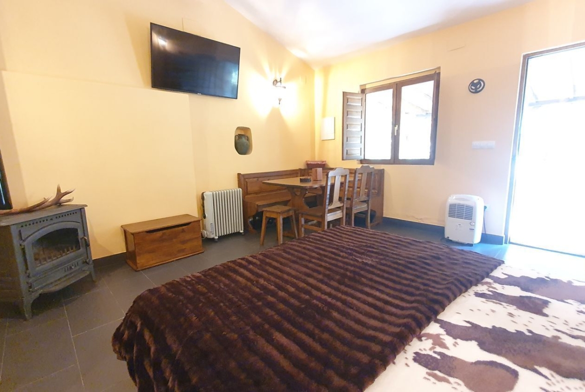 Cocina con muebles de castaño a medida termo eléctrico, vitrocerámica, nevera. , cuarto de baño con ducha y zona de salón, actualmente se utiliza también como dormitorio.