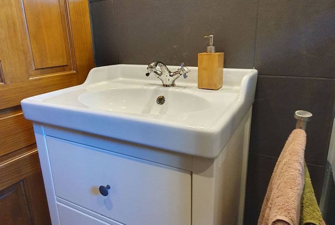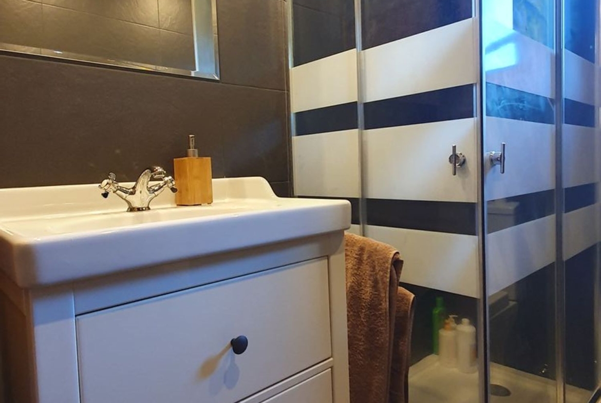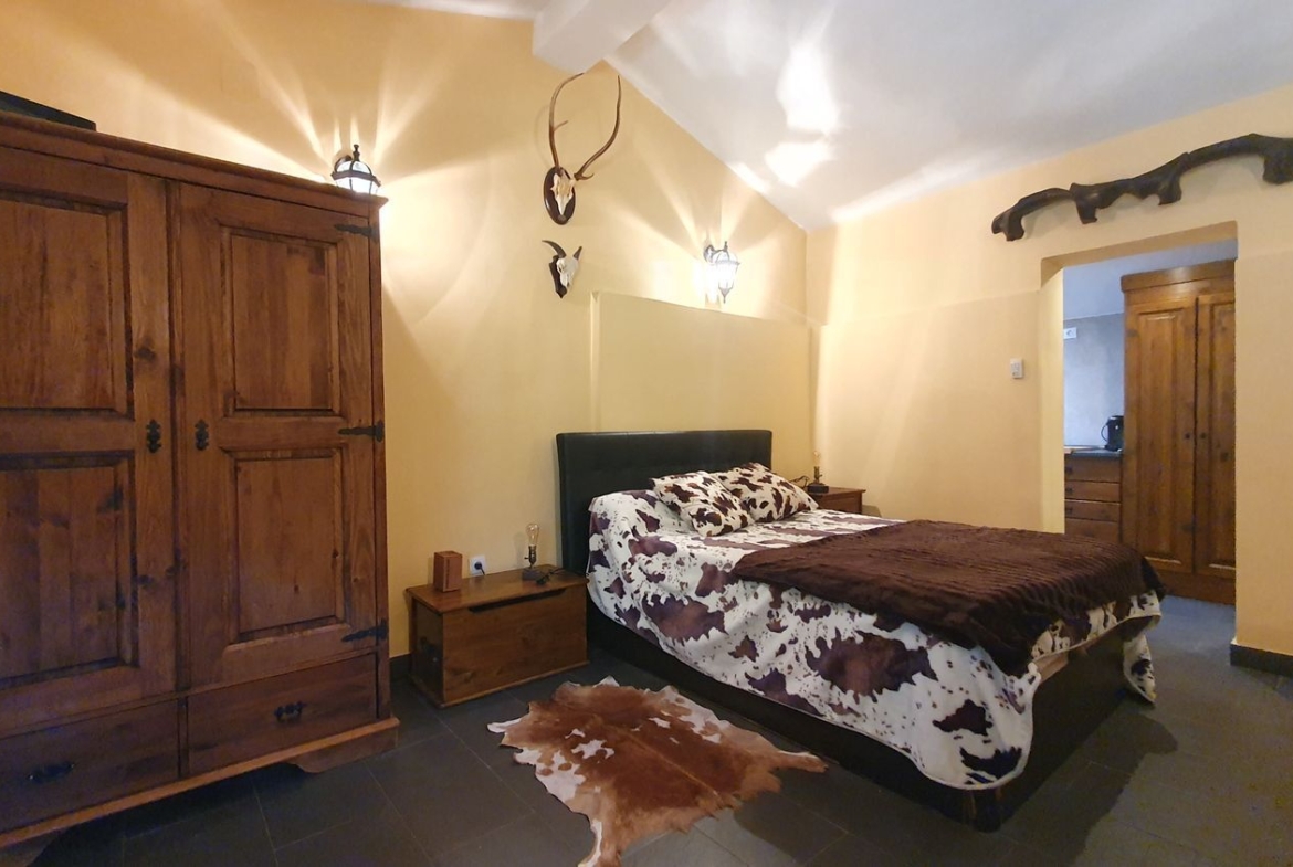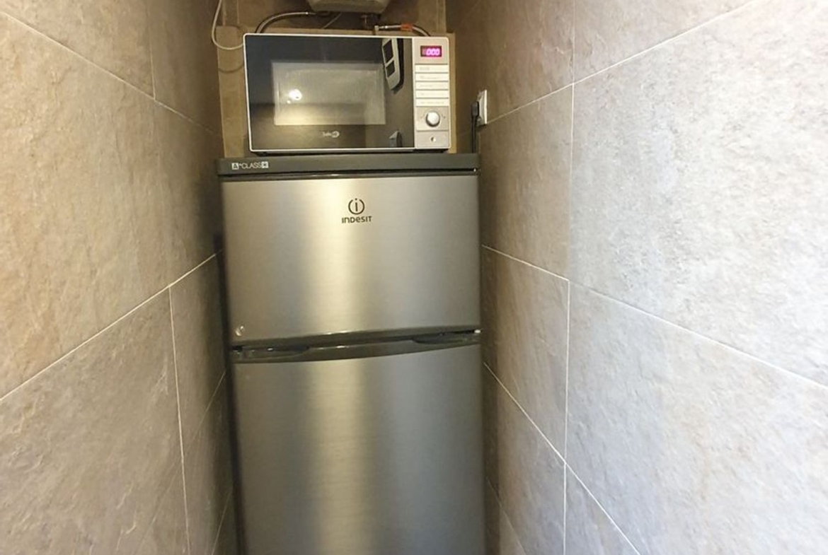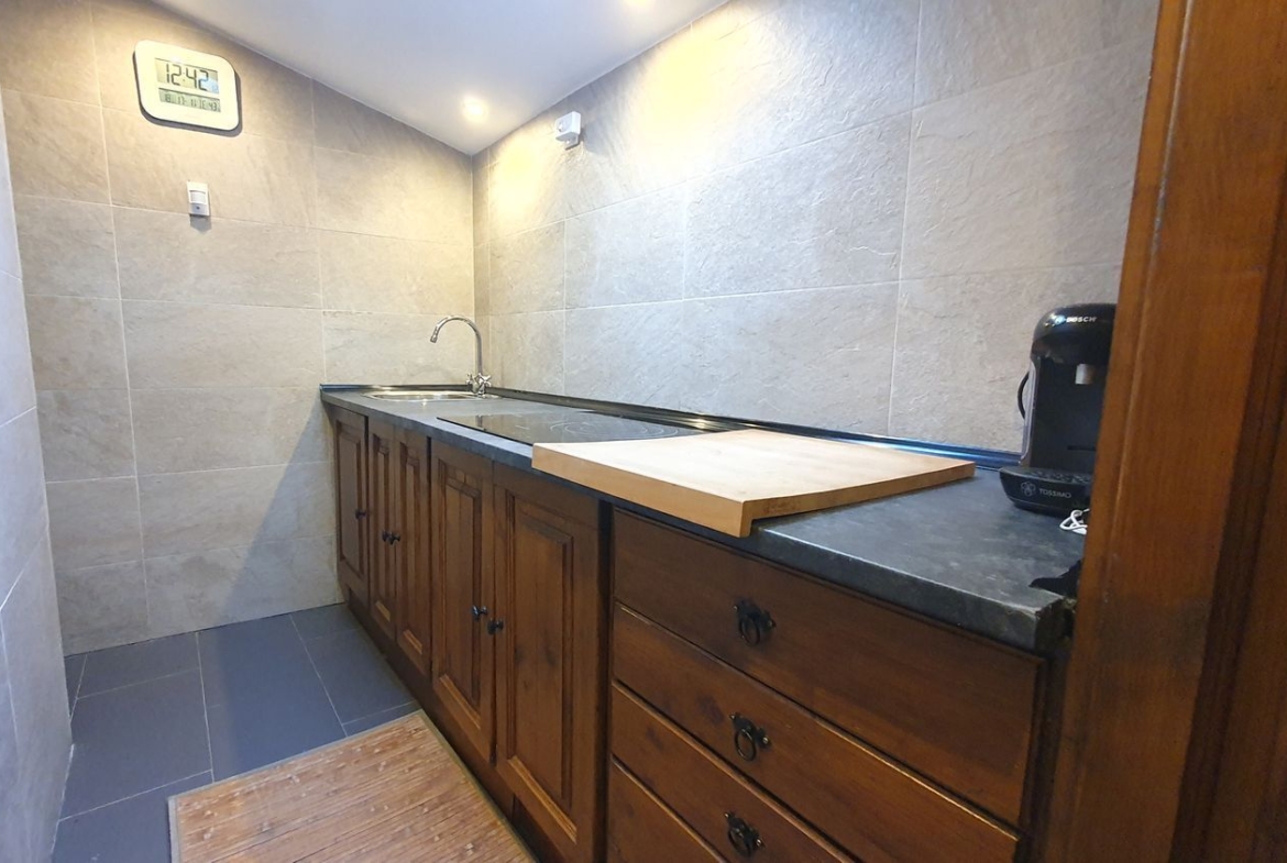 Cocina con muebles de castaño a medida termo eléctrico, vitrocerámica, nevera. , cuarto de baño con ducha y zona de salón, actualmente se utiliza también como dormitorio.
