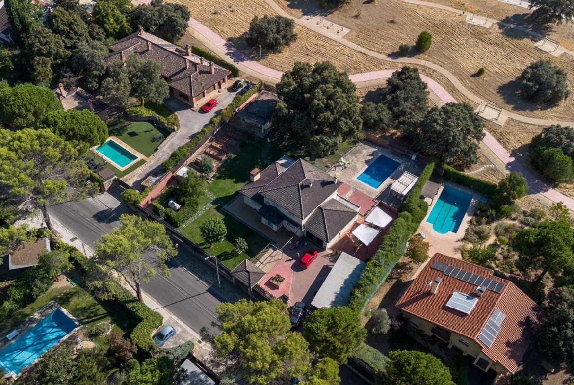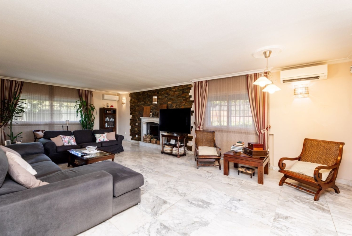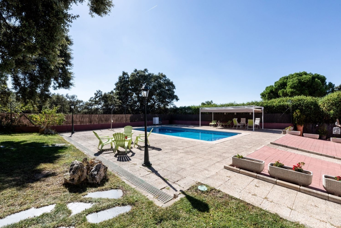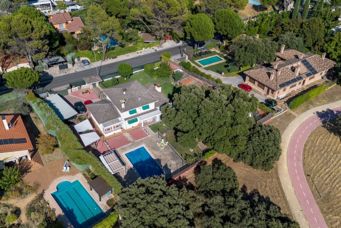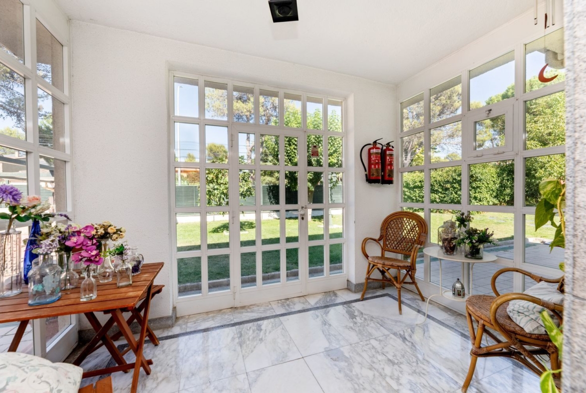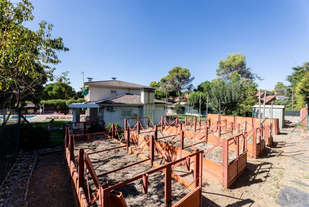 Descubre este impresionante chalet unifamiliar independiente, ubicado en la prestigiosa urbanización El Bosque. Con una reforma integral realizada en 2010, esta propiedad de 293 m² construidos se asienta sobre una amplia parcela de 2005 m², ideal para disfrutar de la tranquilidad y la naturaleza. El jardín está meticulosamente cuidado, adornado con árboles frutales, bonita encina milenaria y un huerto en metálico con bancales elevados, perfecto para los amantes de la jardinería.