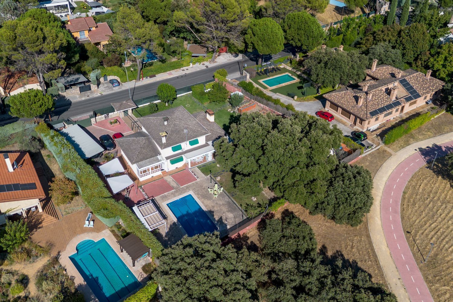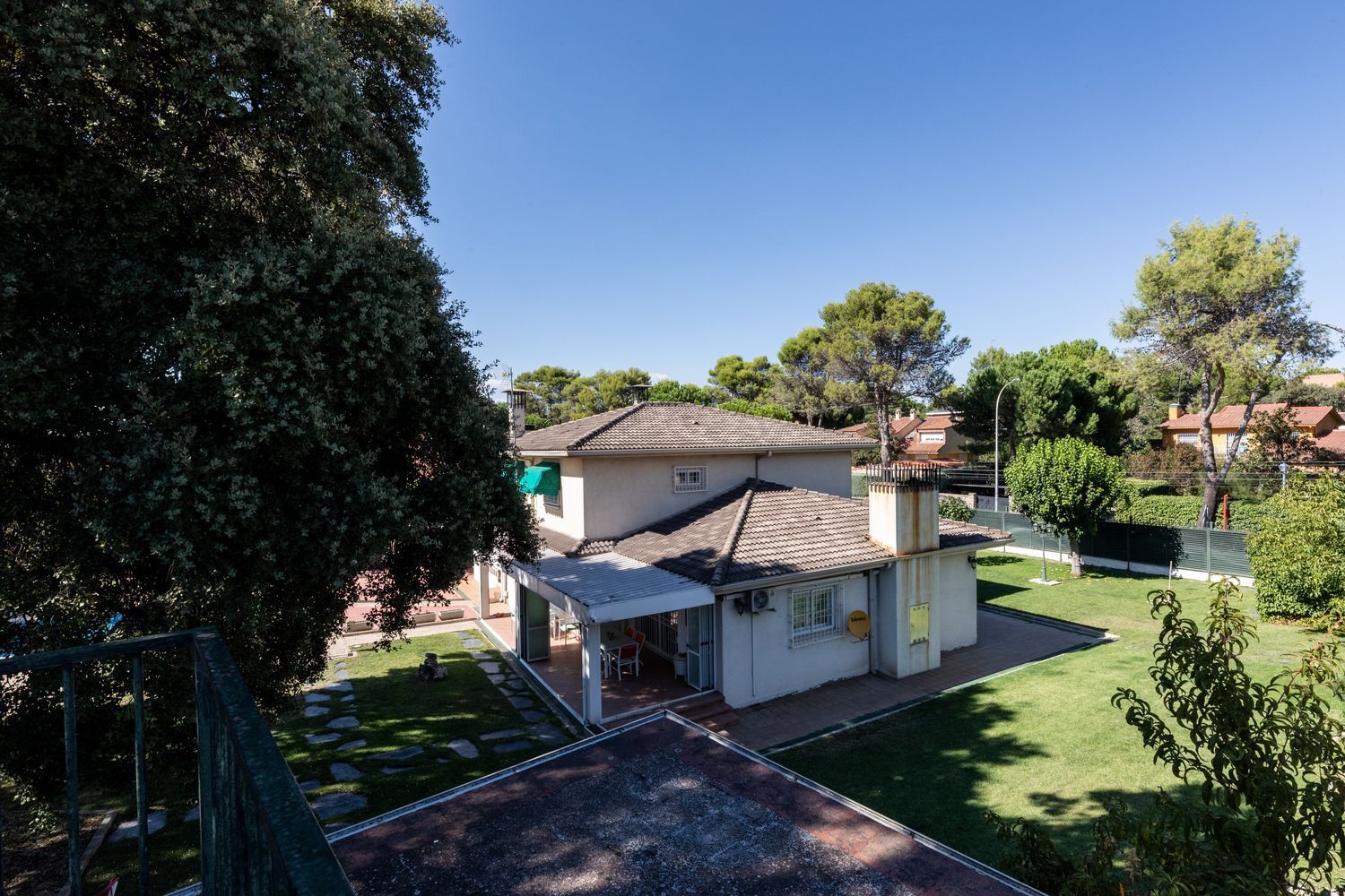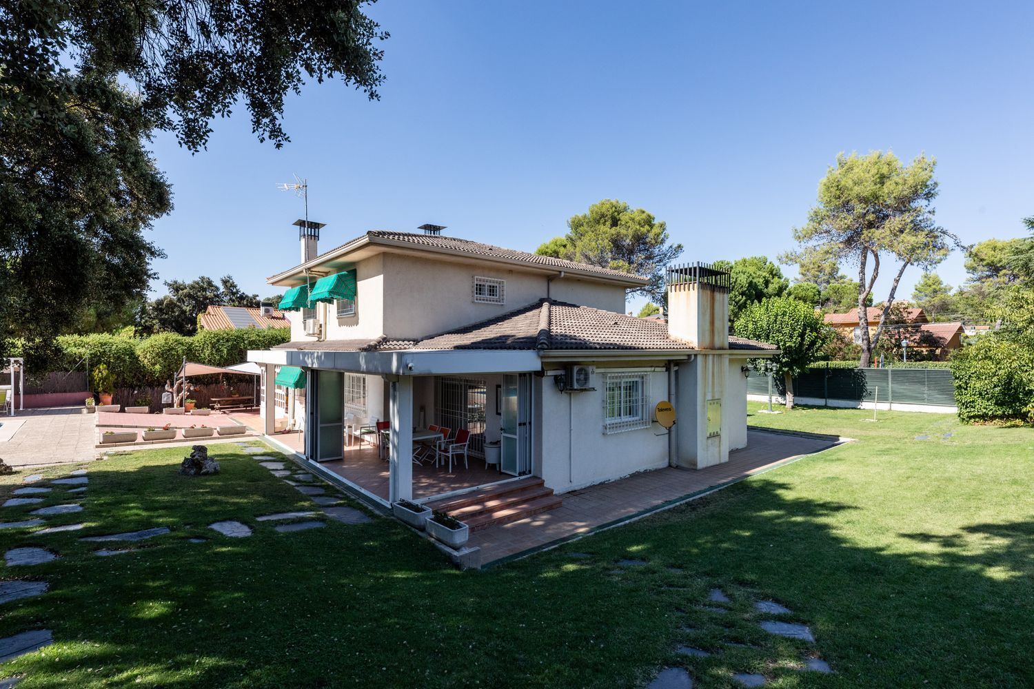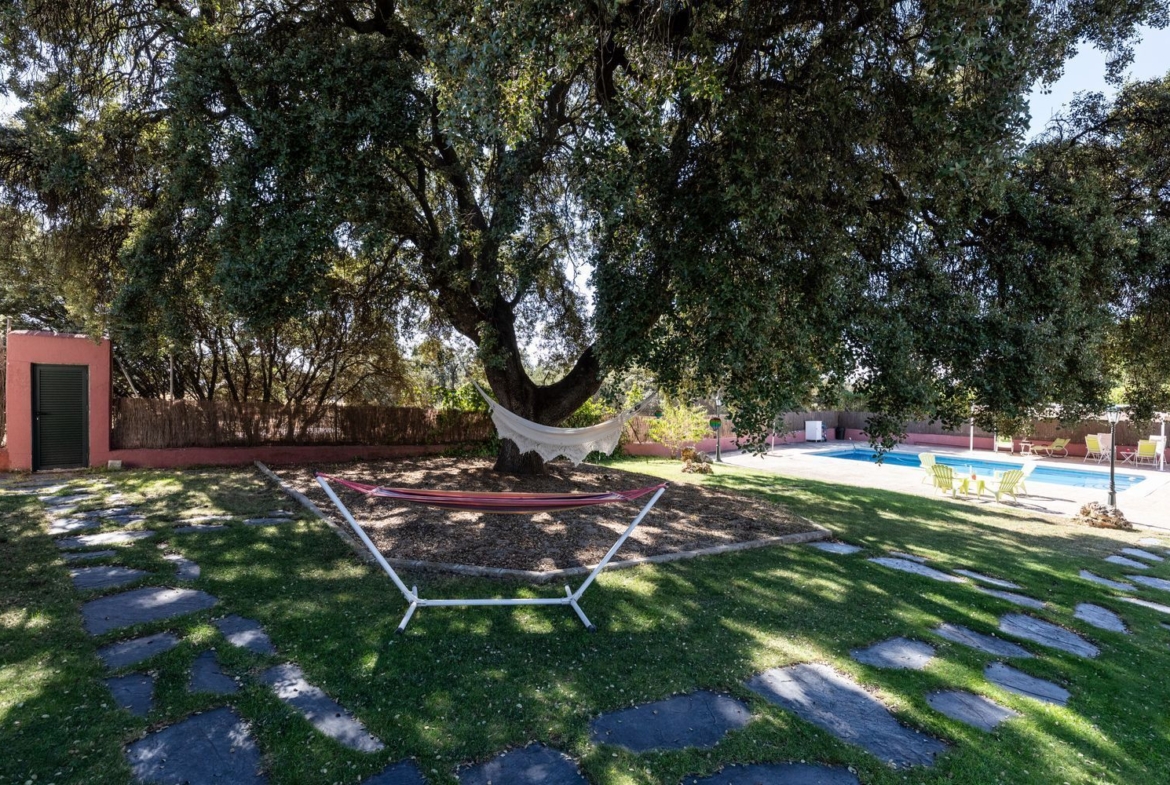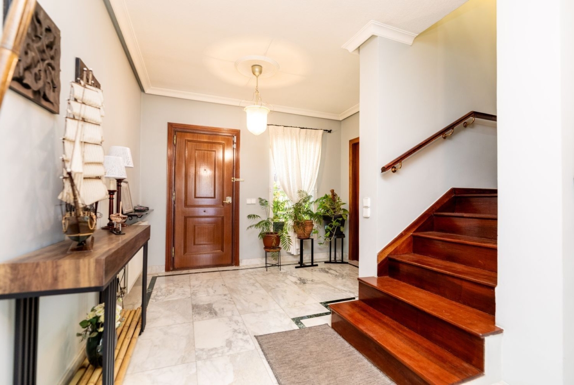 Descubre este impresionante chalet unifamiliar independiente, ubicado en la prestigiosa urbanización El Bosque. Con una reforma integral realizada en 2010, esta propiedad de 293 m² construidos se asienta sobre una amplia parcela de 2005 m², ideal para disfrutar de la tranquilidad y la naturaleza. El jardín está meticulosamente cuidado, adornado con árboles frutales, bonita encina milenaria y un huerto en metálico con bancales elevados, perfecto para los amantes de la jardinería.