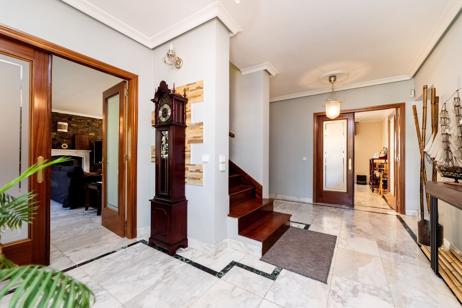 Al entrar, nos encontramos con hall amplio, a continuación te recibe un amplio salón comedor con una acogedora chimenea tipo hogar calefactor que no solo calienta el ambiente, sino que también suministra agua caliente a radiadores y grifos, dispone de salida directa a amplio porche y jardín. La cocina totalmente equipada y la zona de despensa hacen de este espacio un lugar funcional y cómodo para la vida diaria. La terraza acristalada ofrece un rincón perfecto para relajarse mientras se disfruta de las vistas al jardín. Garaje o almacén.