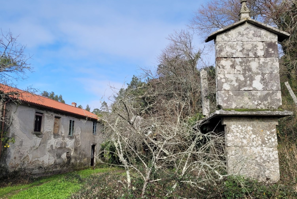 La propiedad conserva elementos tradicionales con gran valor histórico, como un hórreo, una bodega, una antigua lareira y un lagar, además de contar con su propio manantial.