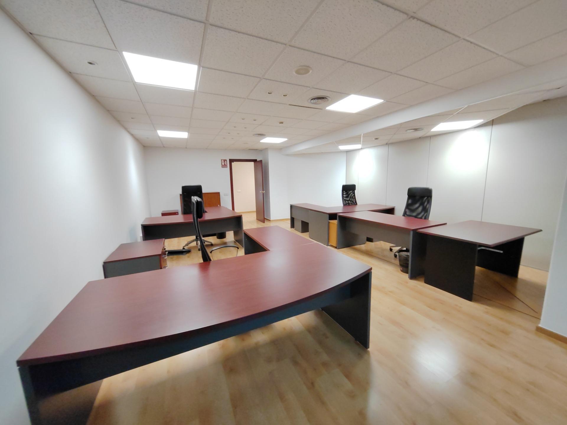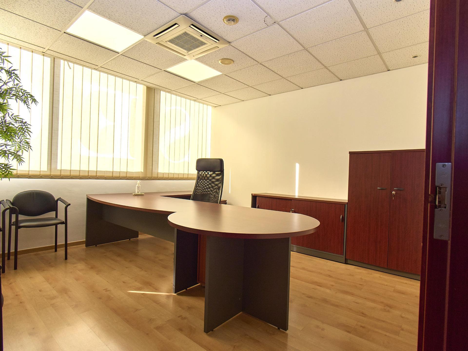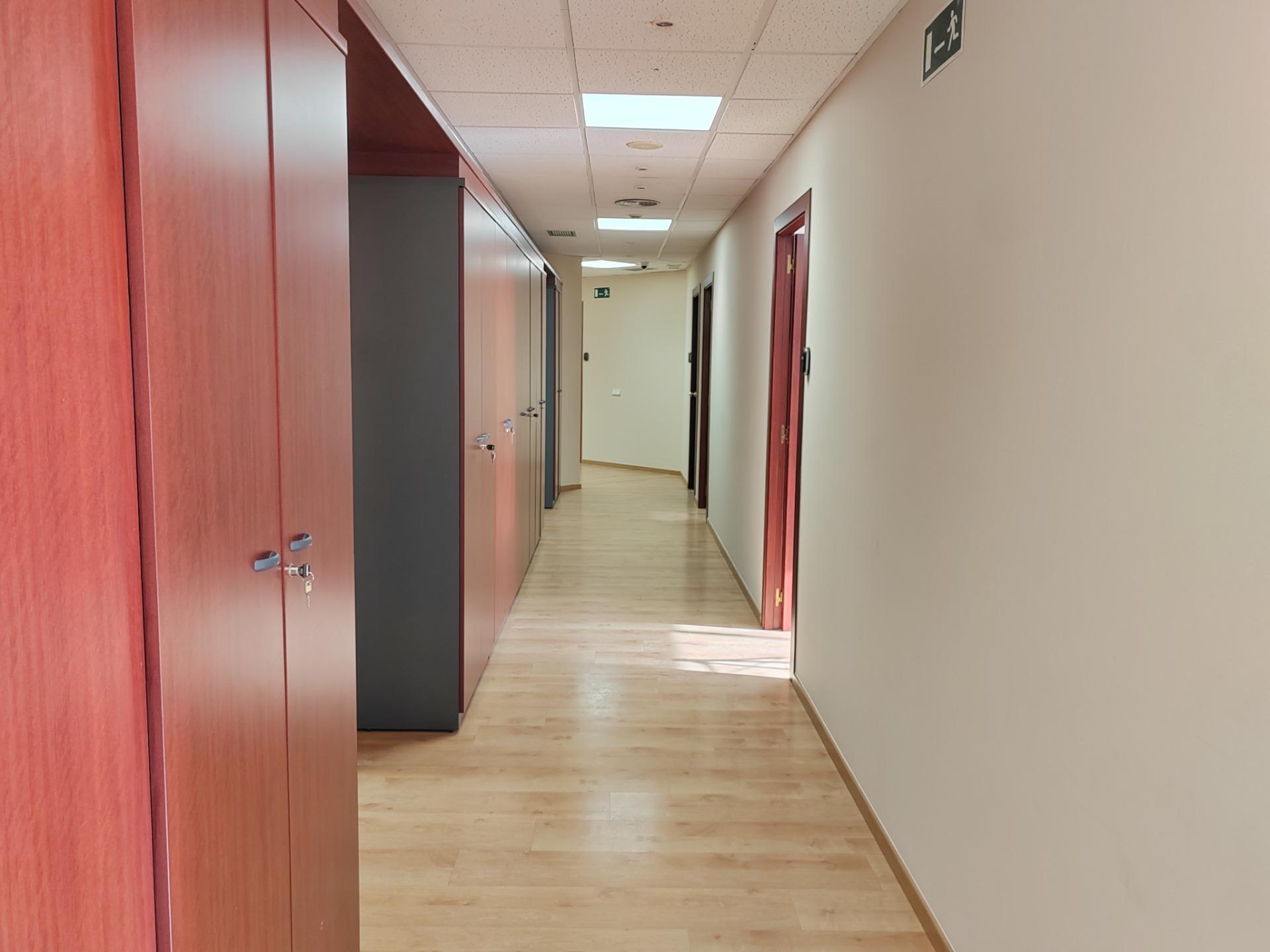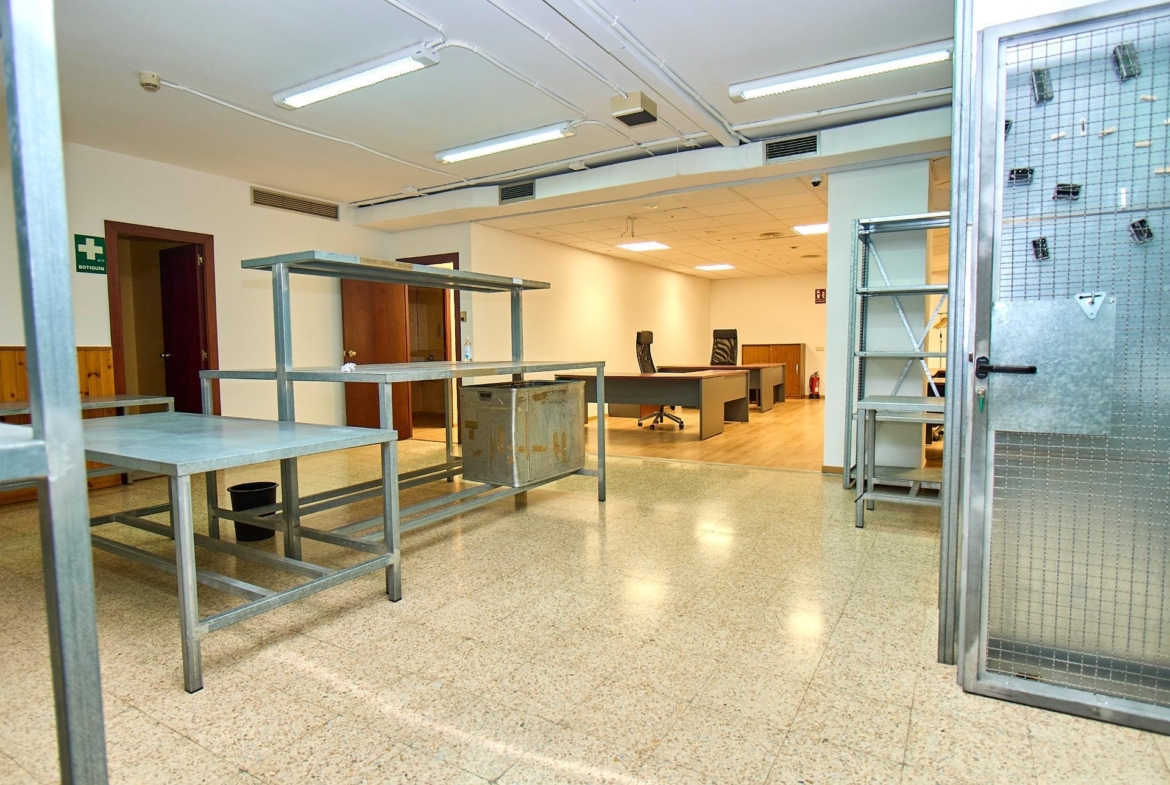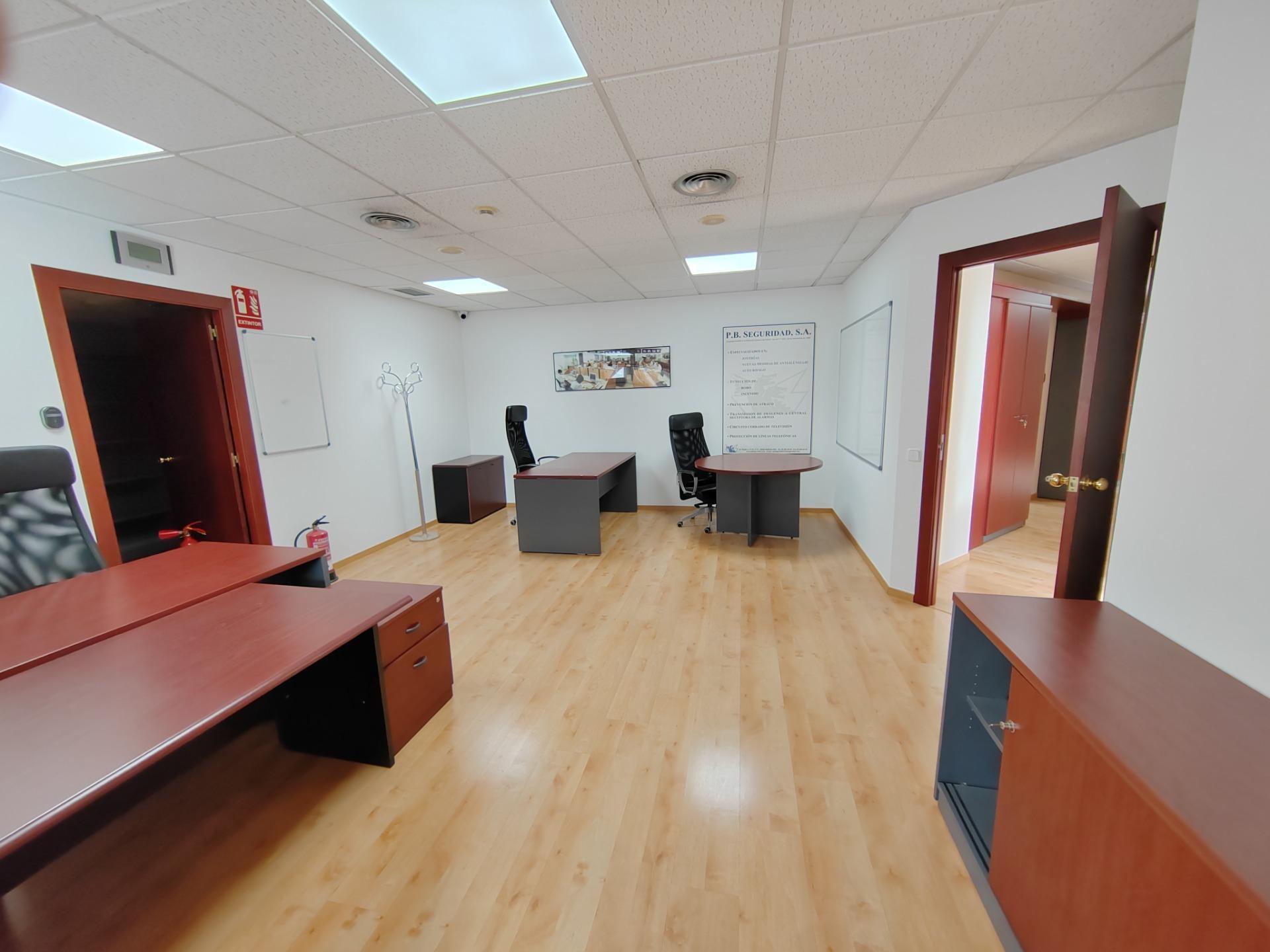 Compuesto por recepción, zona de administración, sala de reuniones, 3 despachos individuales, 2 despachos con mesas de trabajo y cuarto de comunicaciones. Zona office, zona almacén oficina, sala archivos, cuarto máquinas y amplia zona trabajo tipo taller. 3 baños y cuarto limpieza. Además, dispone de mobiliario (sillas y mesas). Múltiples posibilidades de distribución. Suelos de parquet en oficinas y gres en la zona “taller”. Aire acondicionado por conductos y split’s.