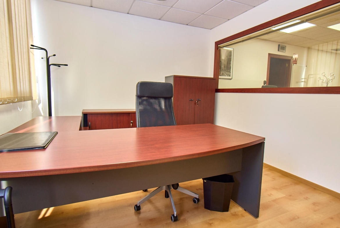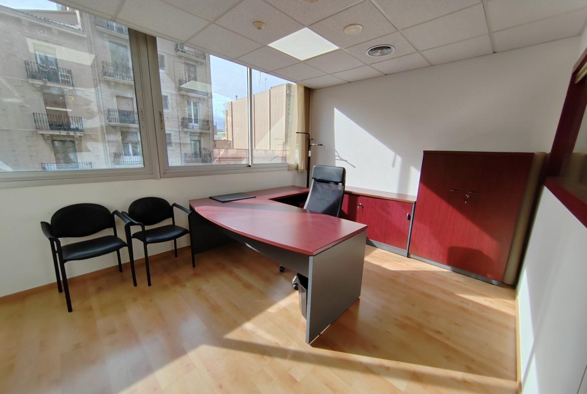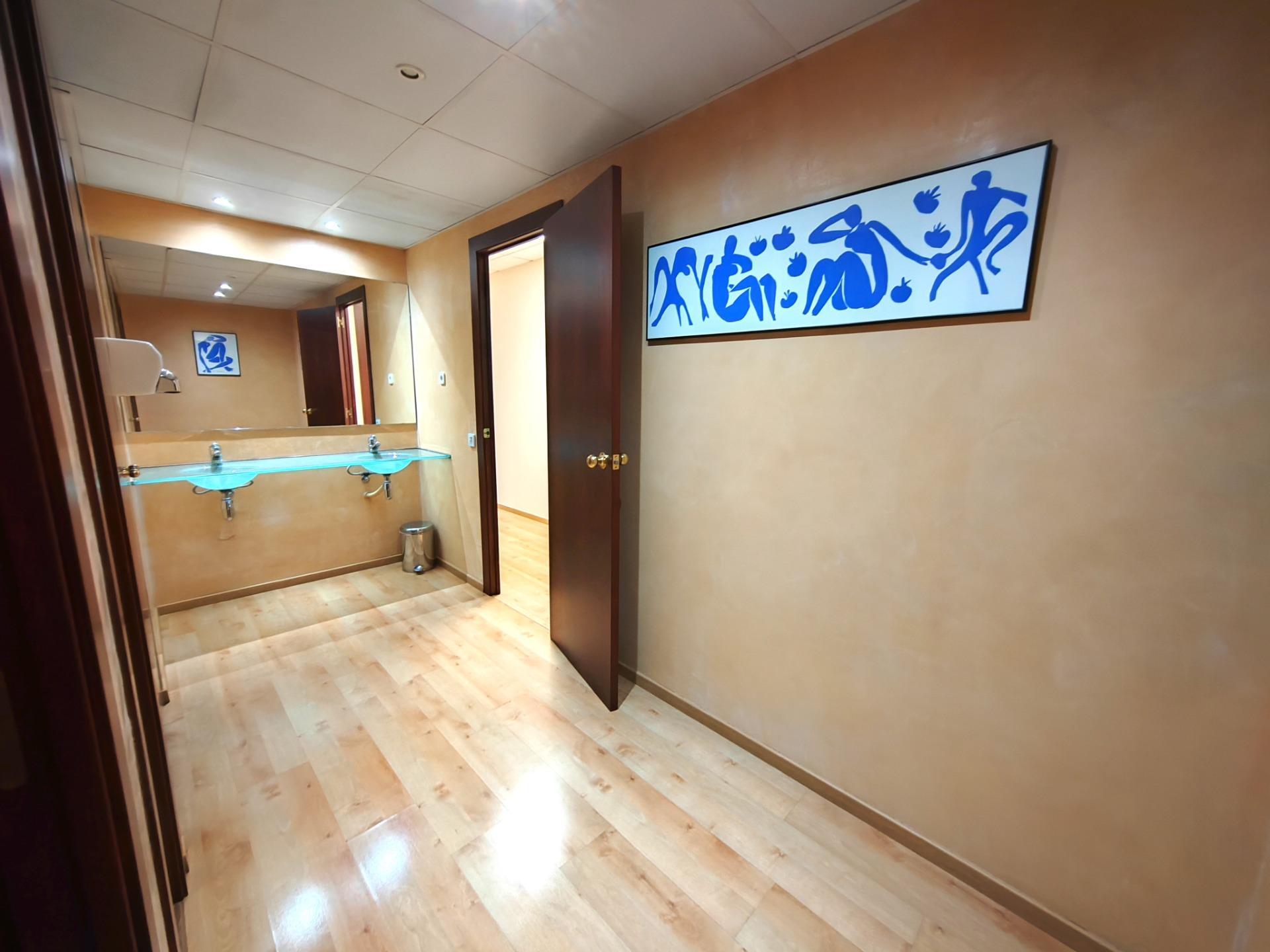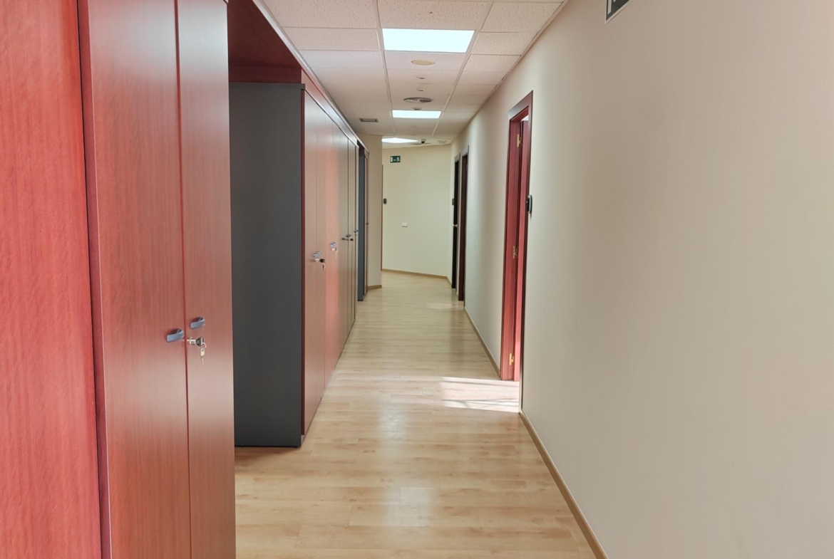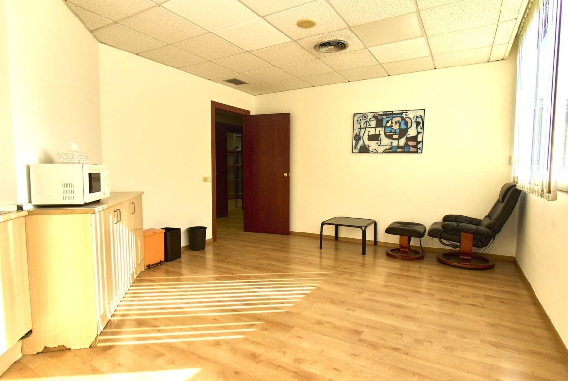Compuesto por recepción, zona de administración, sala de reuniones, 3 despachos individuales, 2 despachos con mesas de trabajo y cuarto de comunicaciones. Zona office, zona almacén oficina, sala archivos, cuarto máquinas y amplia zona trabajo tipo taller. 3 baños y cuarto limpieza. Además, dispone de mobiliario (sillas y mesas). Múltiples posibilidades de distribución. Suelos de parquet en oficinas y gres en la zona “taller”. Aire acondicionado por conductos y split’s.