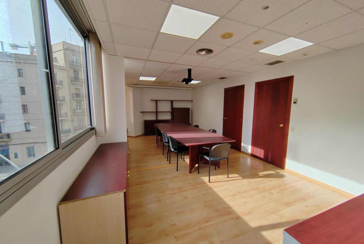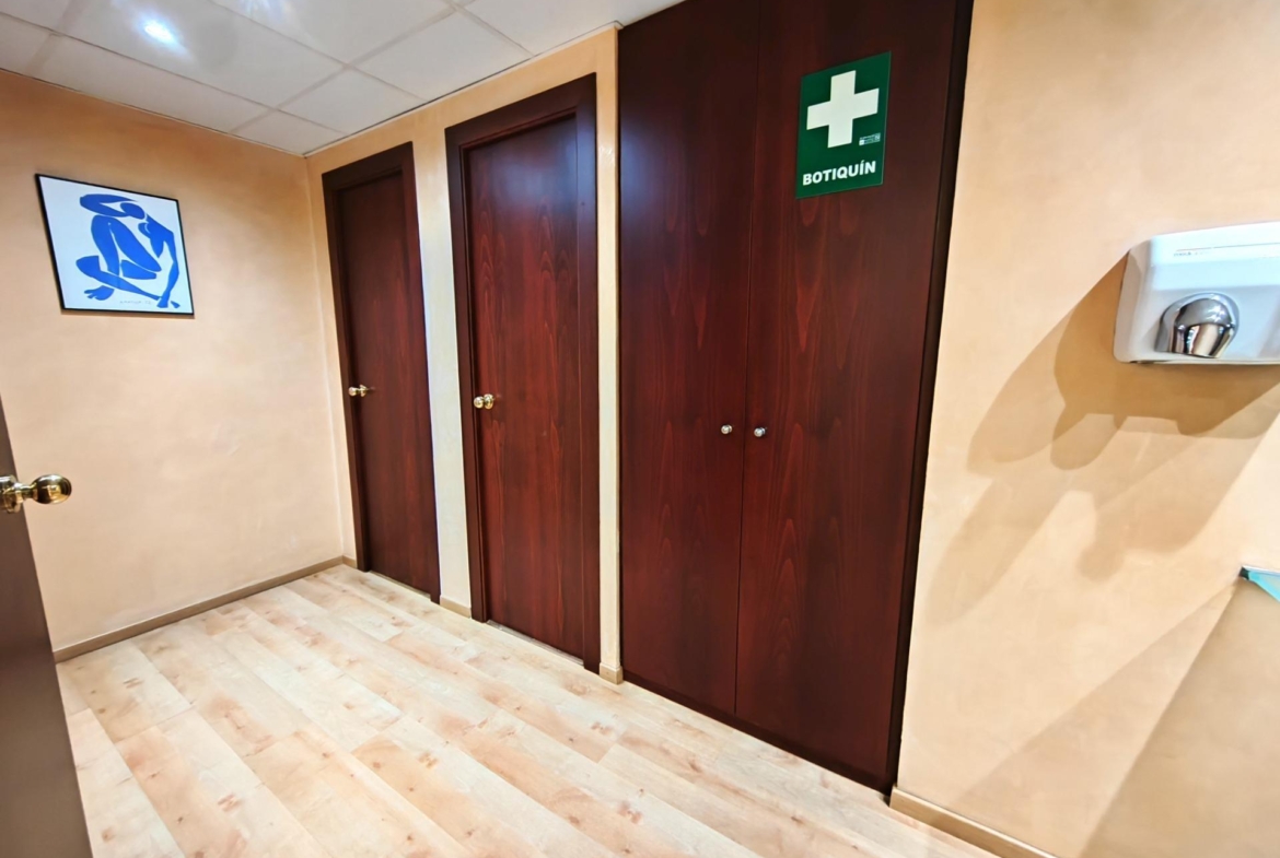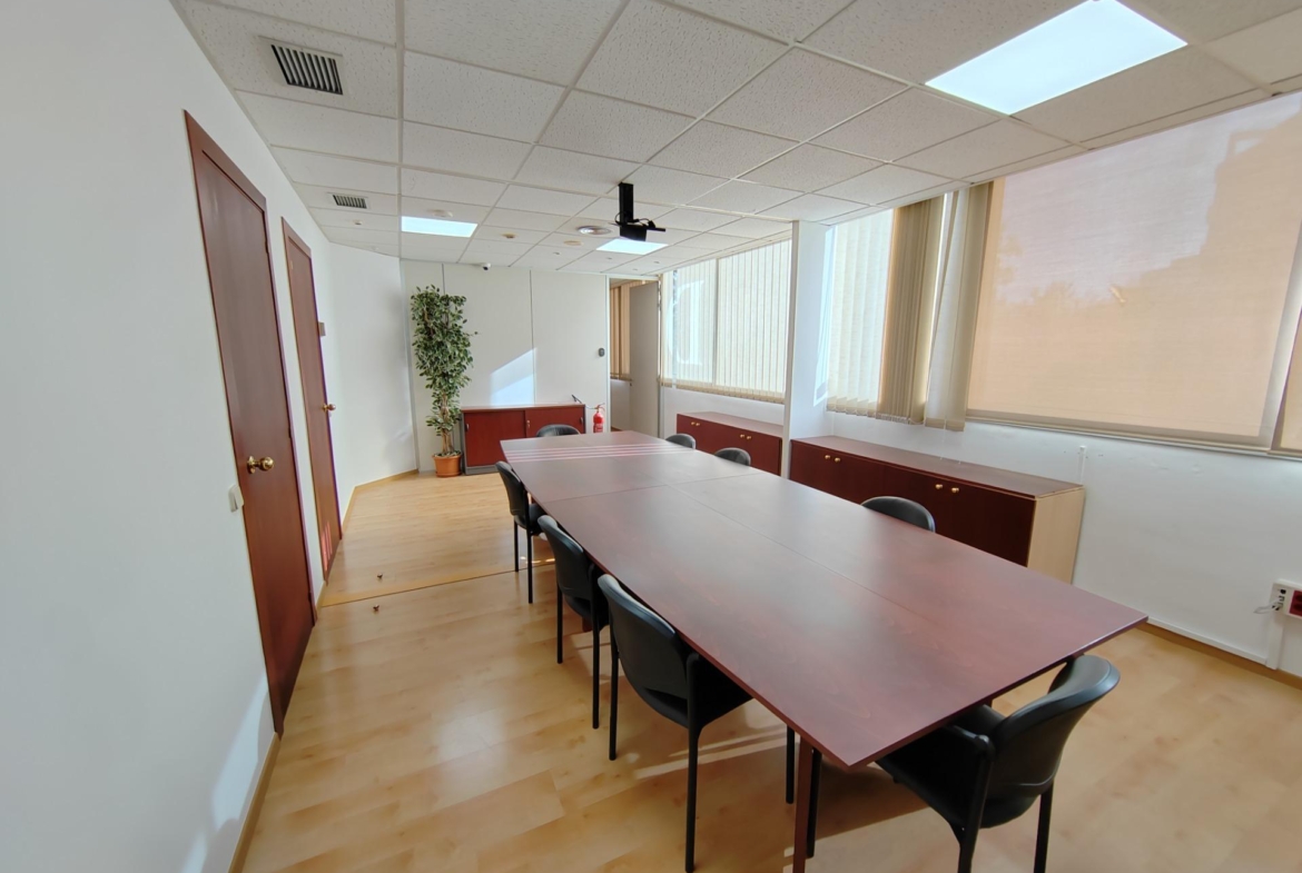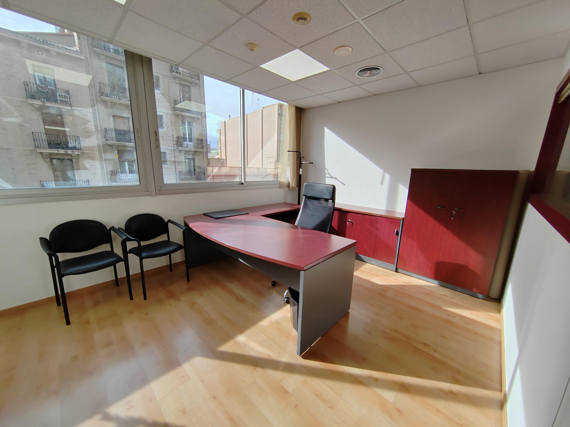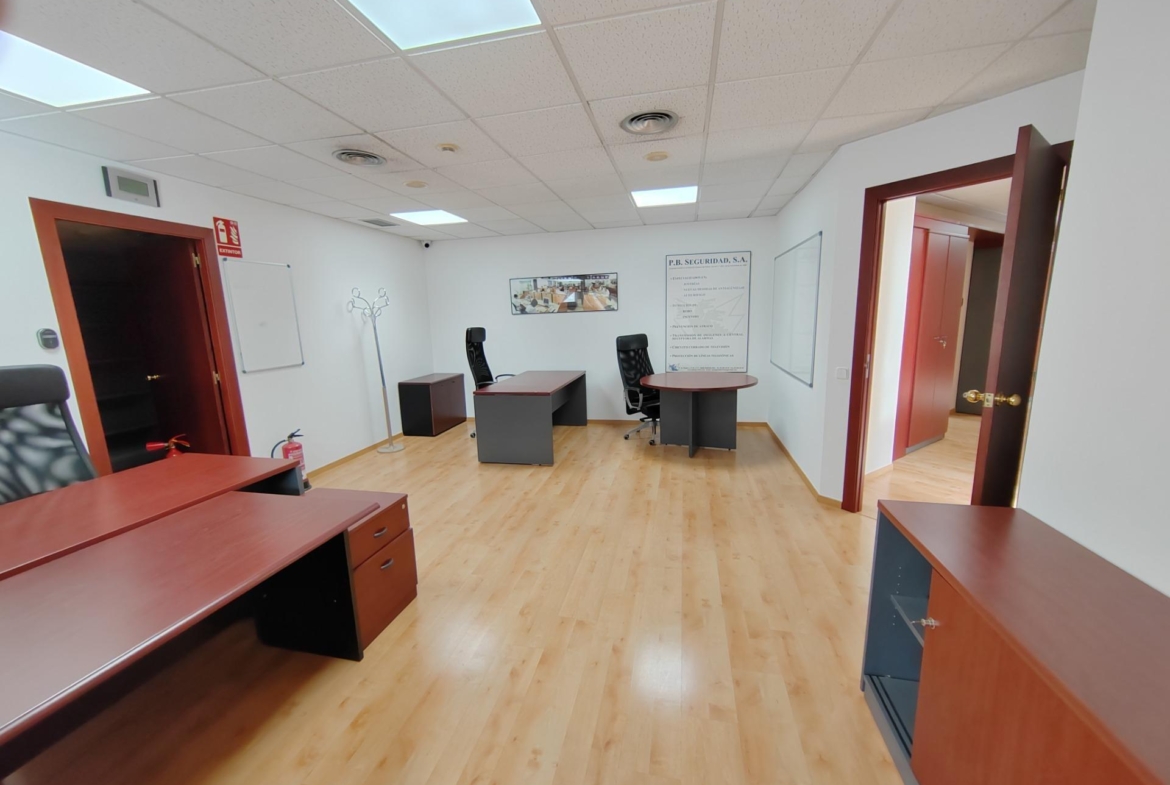 Compuesto por recepción, zona de administración, sala de reuniones, 3 despachos individuales, 2 despachos con mesas de trabajo y cuarto de comunicaciones. Zona office, zona almacén oficina, sala archivos, cuarto máquinas y amplia zona trabajo tipo taller. 3 baños y cuarto limpieza. Además, dispone de mobiliario (sillas y mesas). Múltiples posibilidades de distribución. Suelos de parquet en oficinas y gres en la zona “taller”. Aire acondicionado por conductos y split’s.