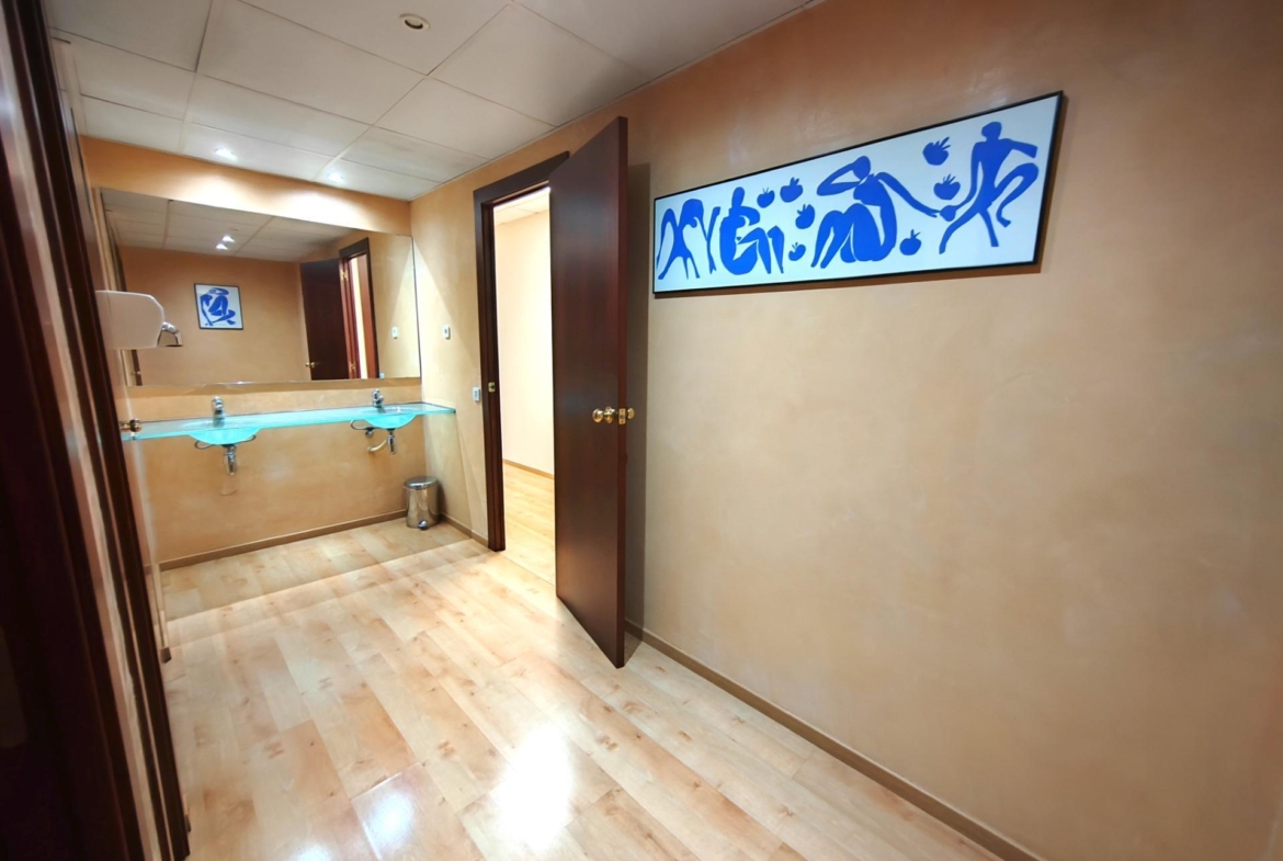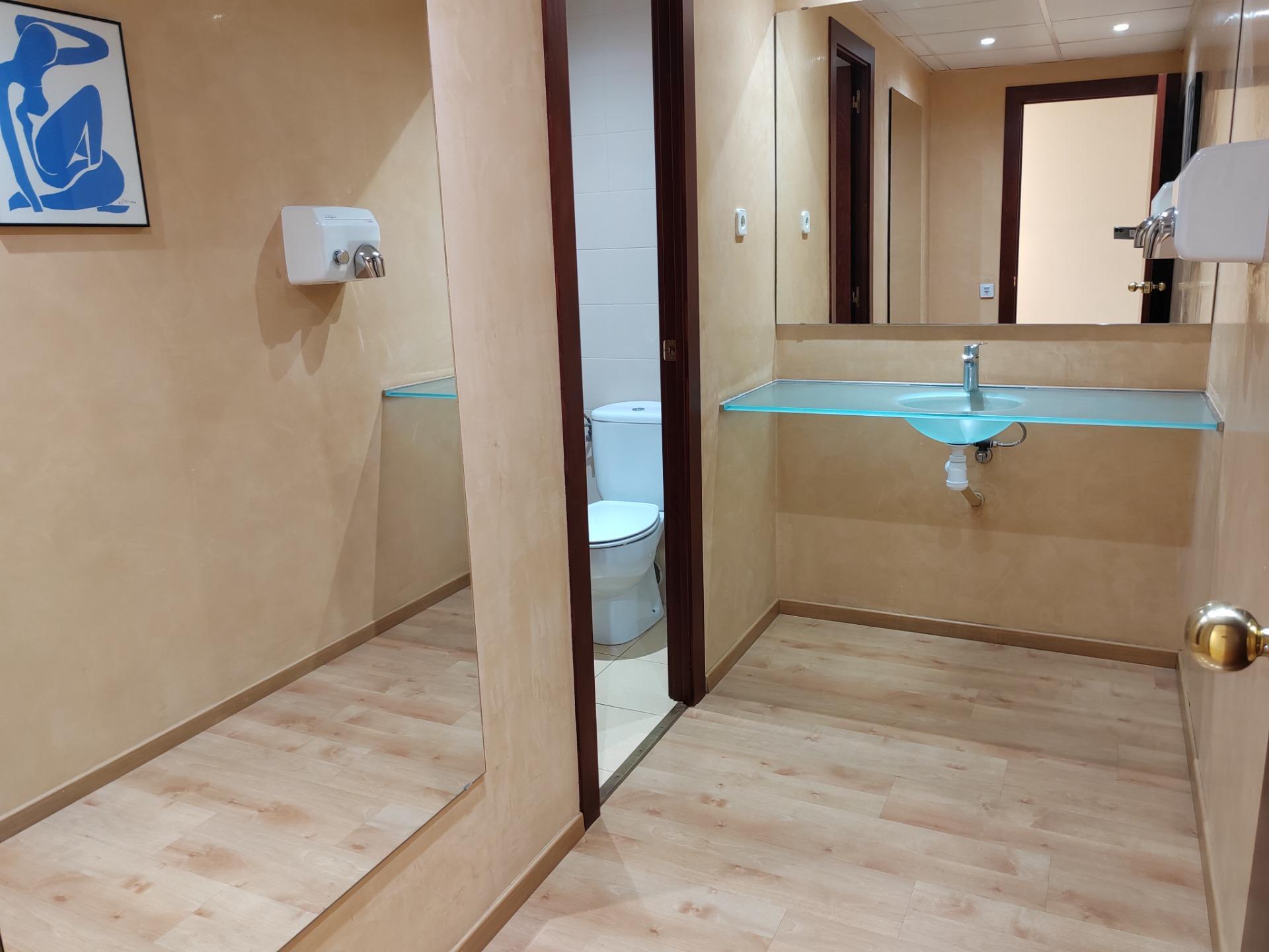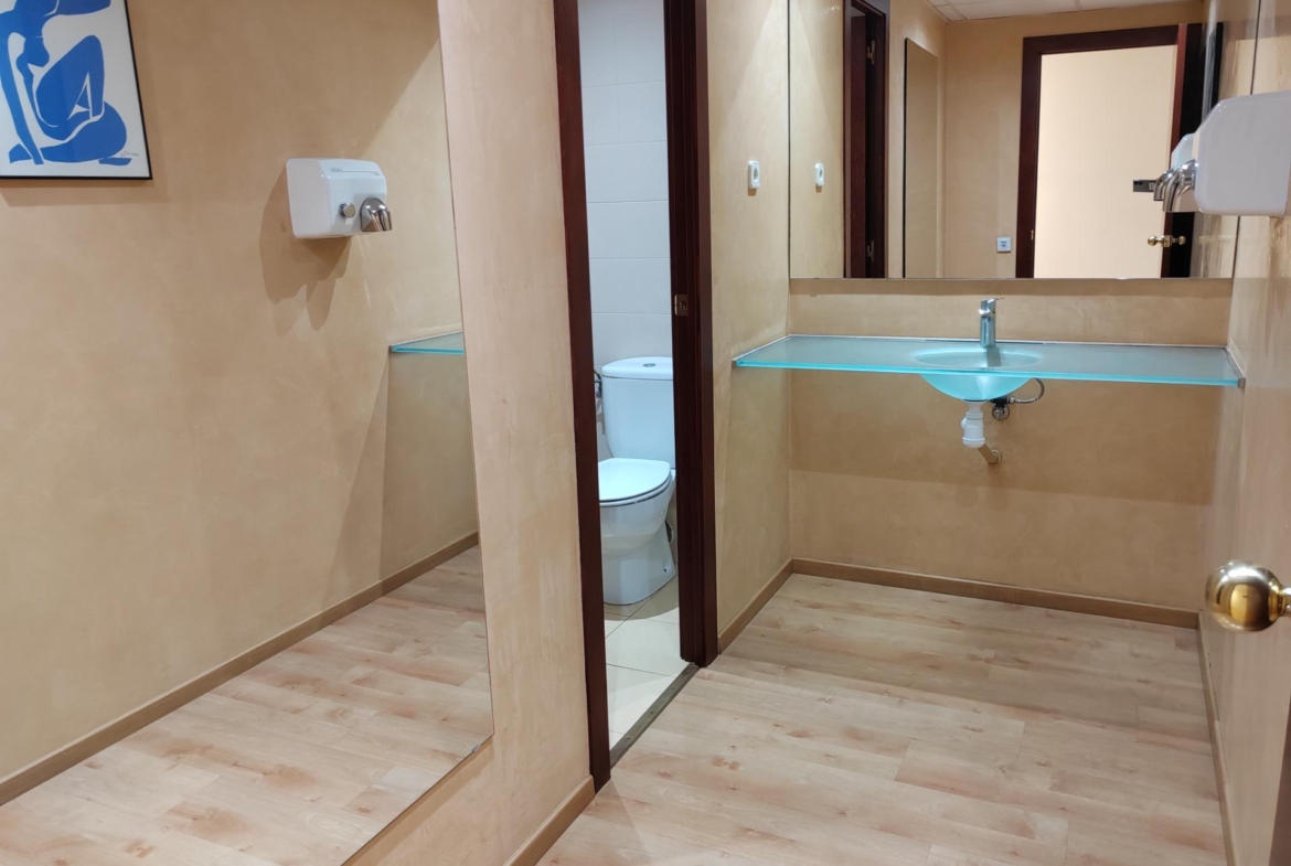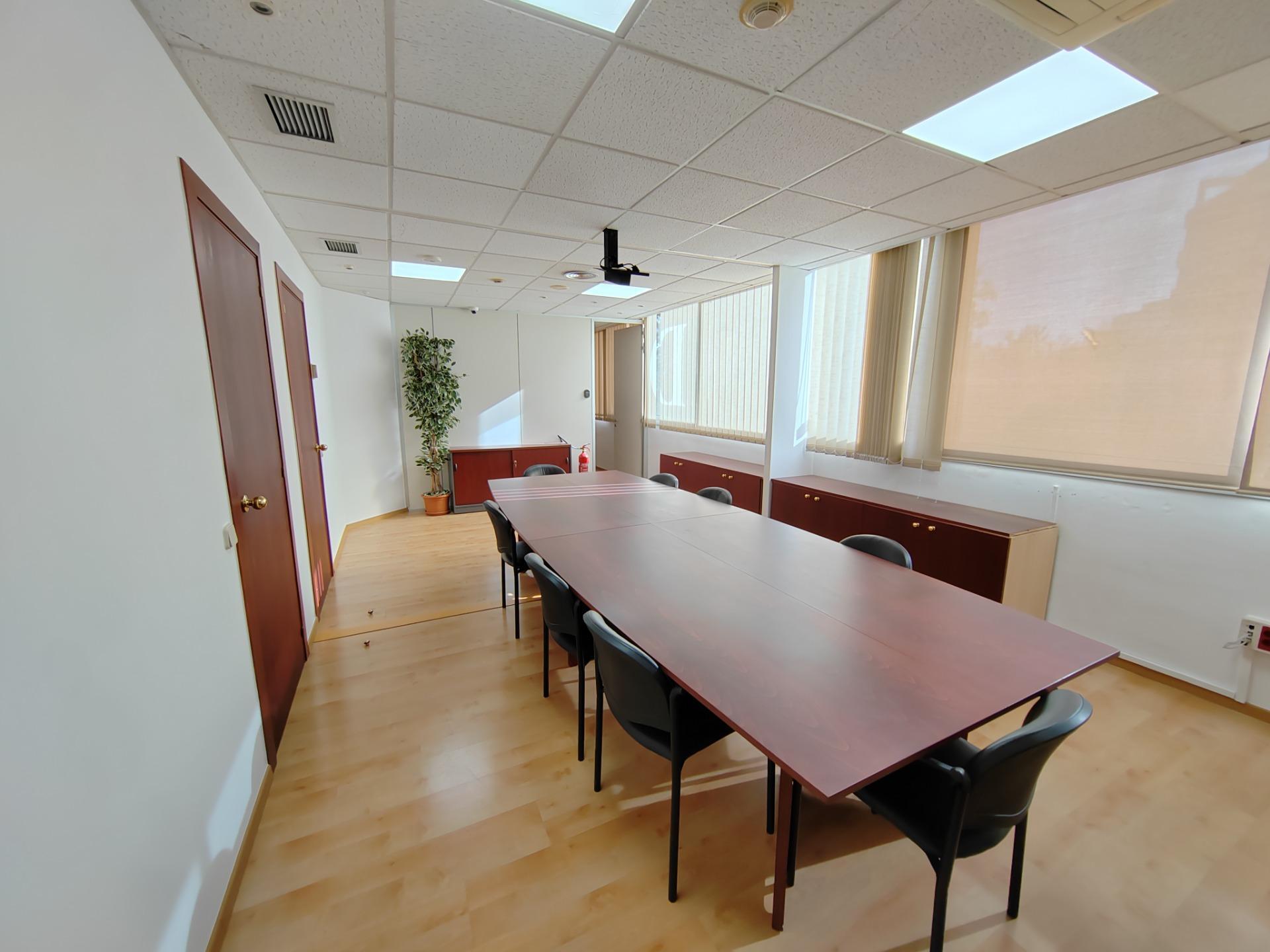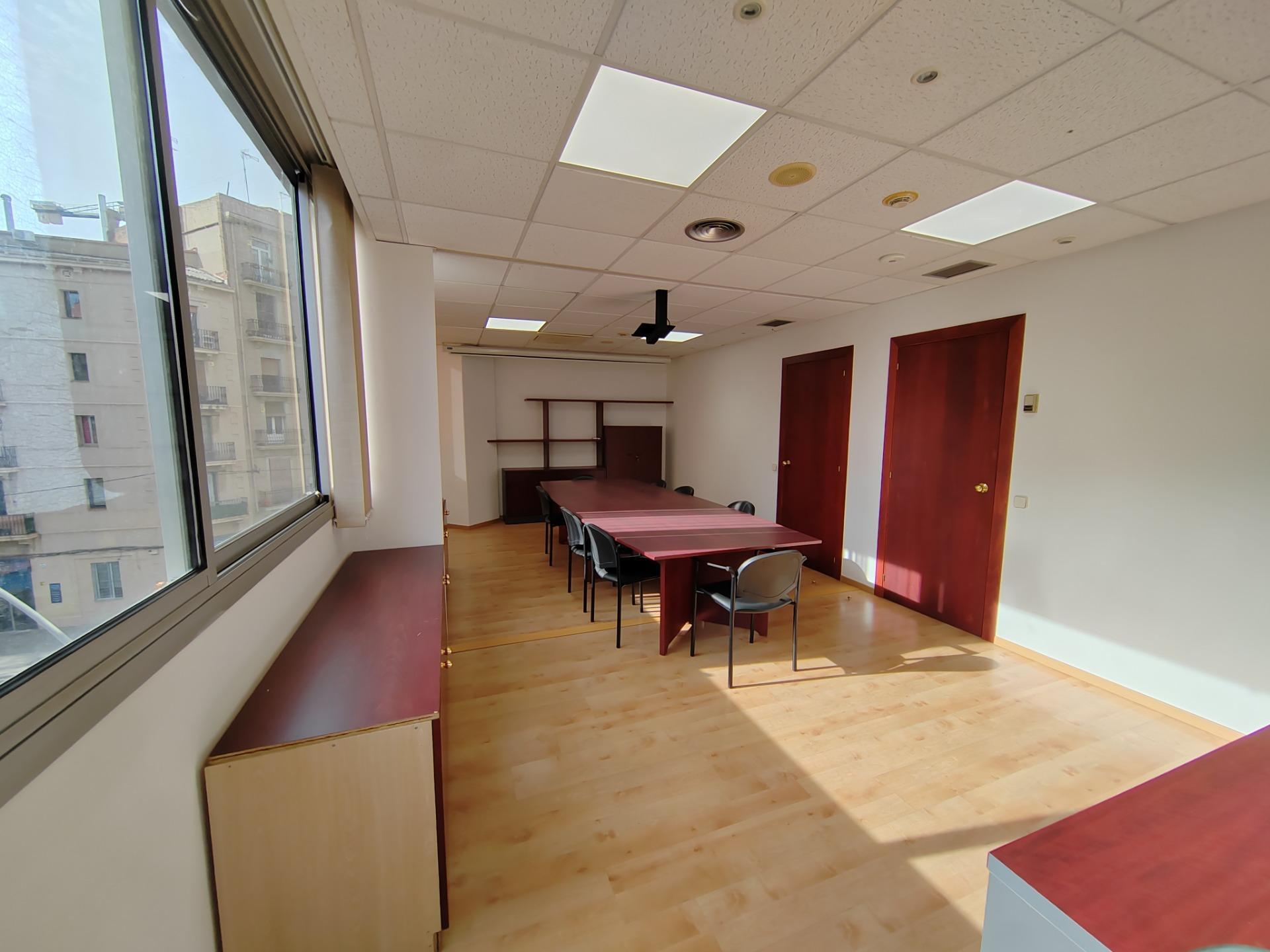 Compuesto por recepción, zona de administración, sala de reuniones, 3 despachos individuales, 2 despachos con mesas de trabajo y cuarto de comunicaciones. Zona office, zona almacén oficina, sala archivos, cuarto máquinas y amplia zona trabajo tipo taller. 3 baños y cuarto limpieza. Además, dispone de mobiliario (sillas y mesas). Múltiples posibilidades de distribución. Suelos de parquet en oficinas y gres en la zona “taller”. Aire acondicionado por conductos y split’s.