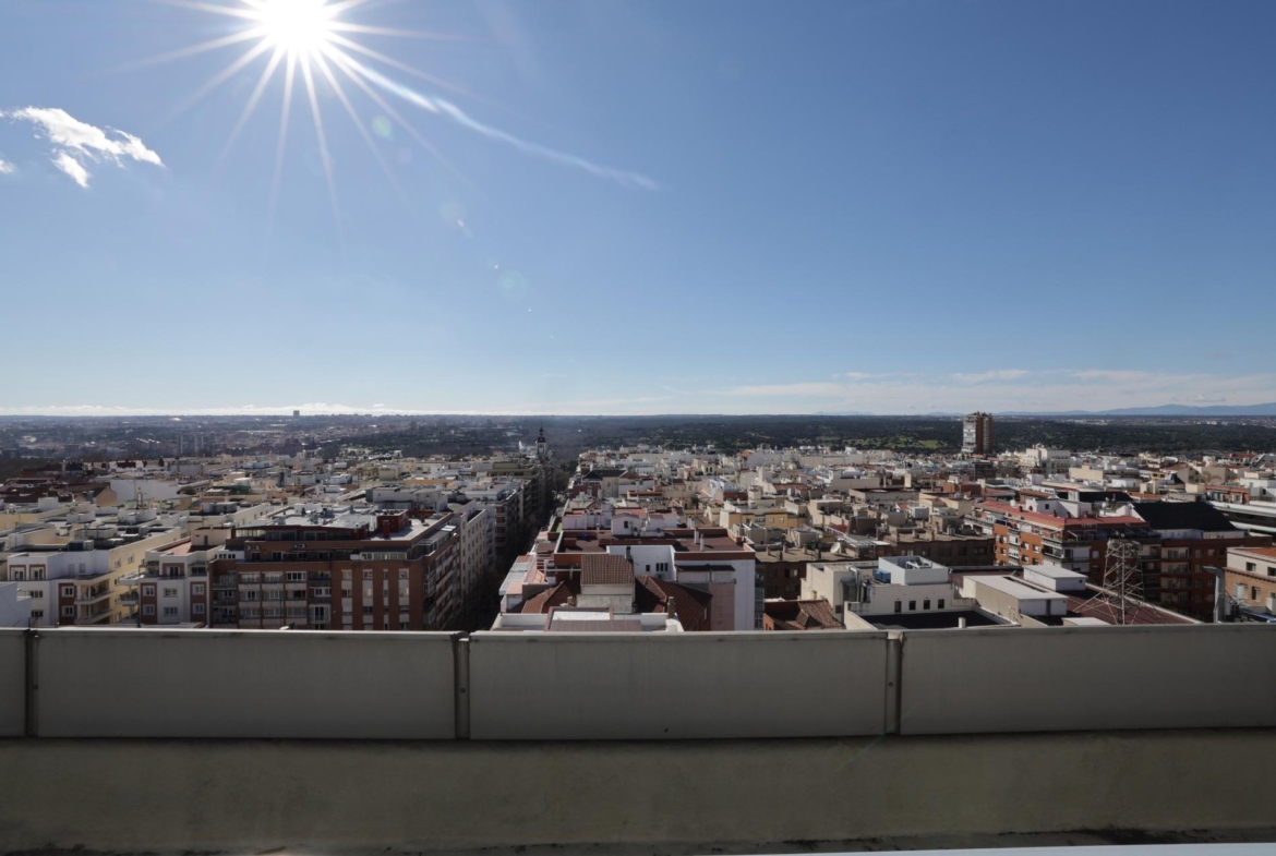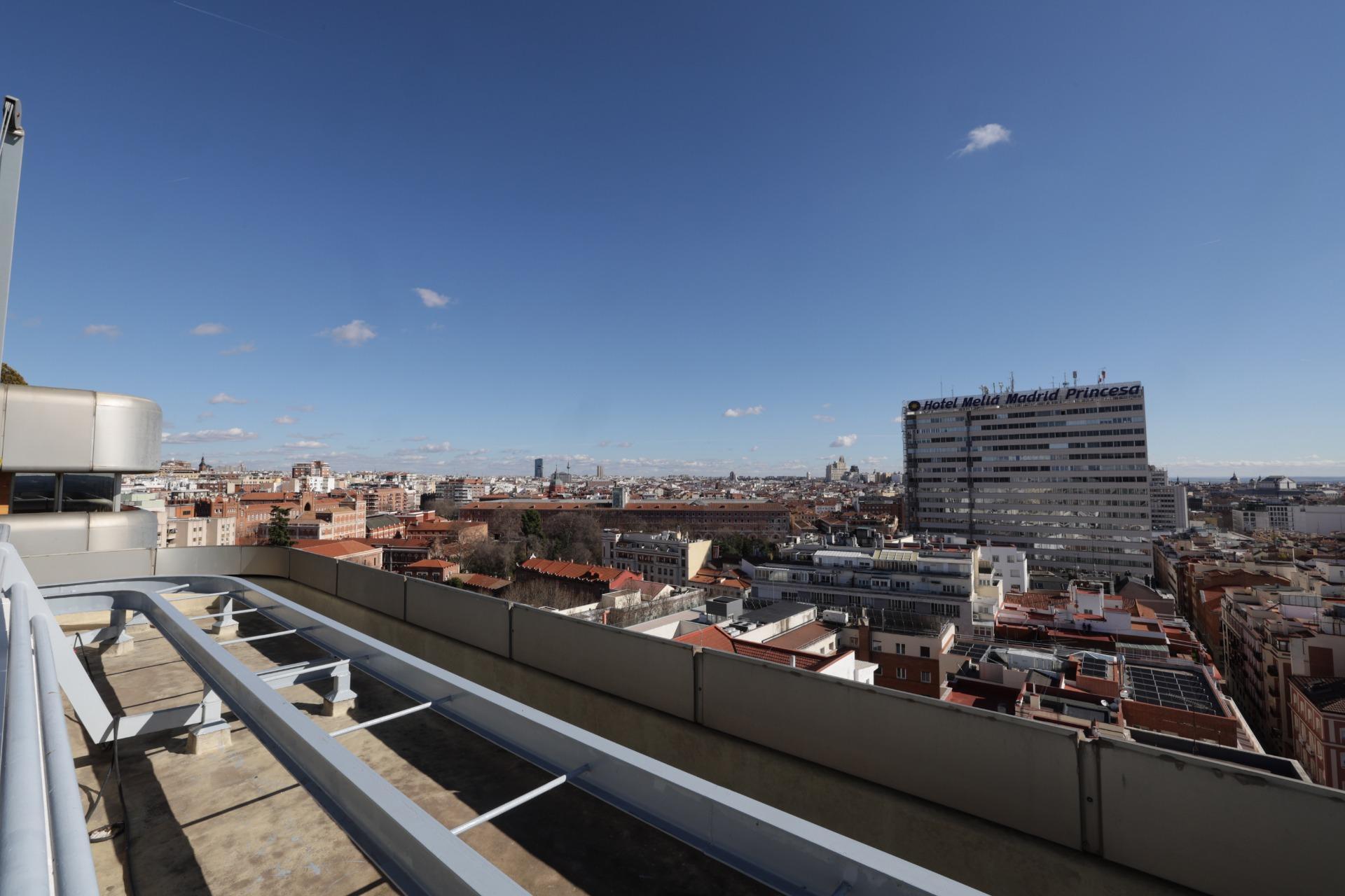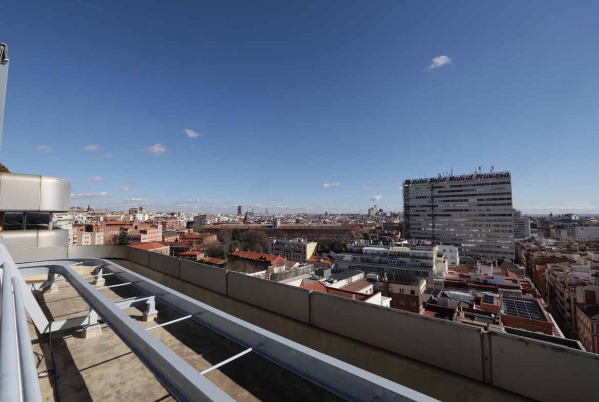 Impresionante piso, moderno y luminoso, ubicado en el corazón de Argüelles, Madrid, con amplia terraza en esquina de aprox 40m2, edificio con gimnasio propio y solarium con césped artificial, tumbonas y vistas únicas a todo Madrid.