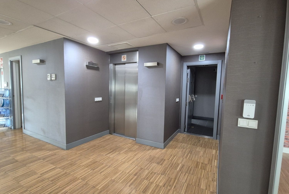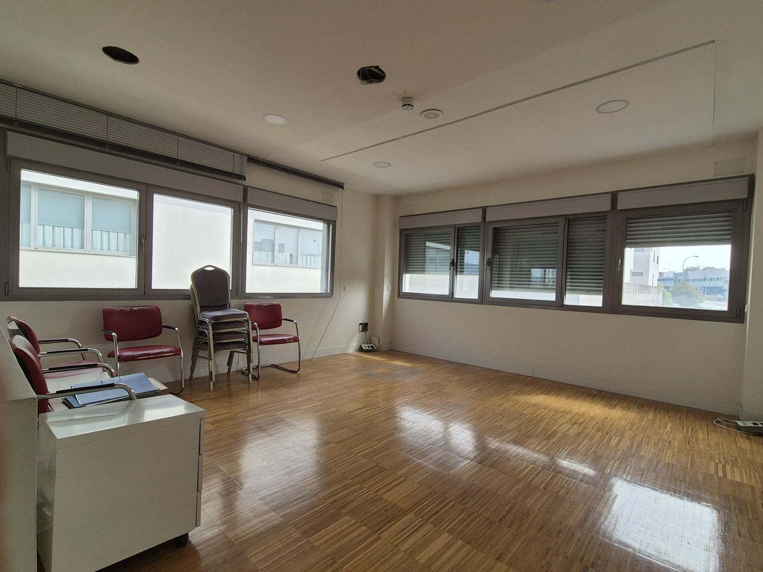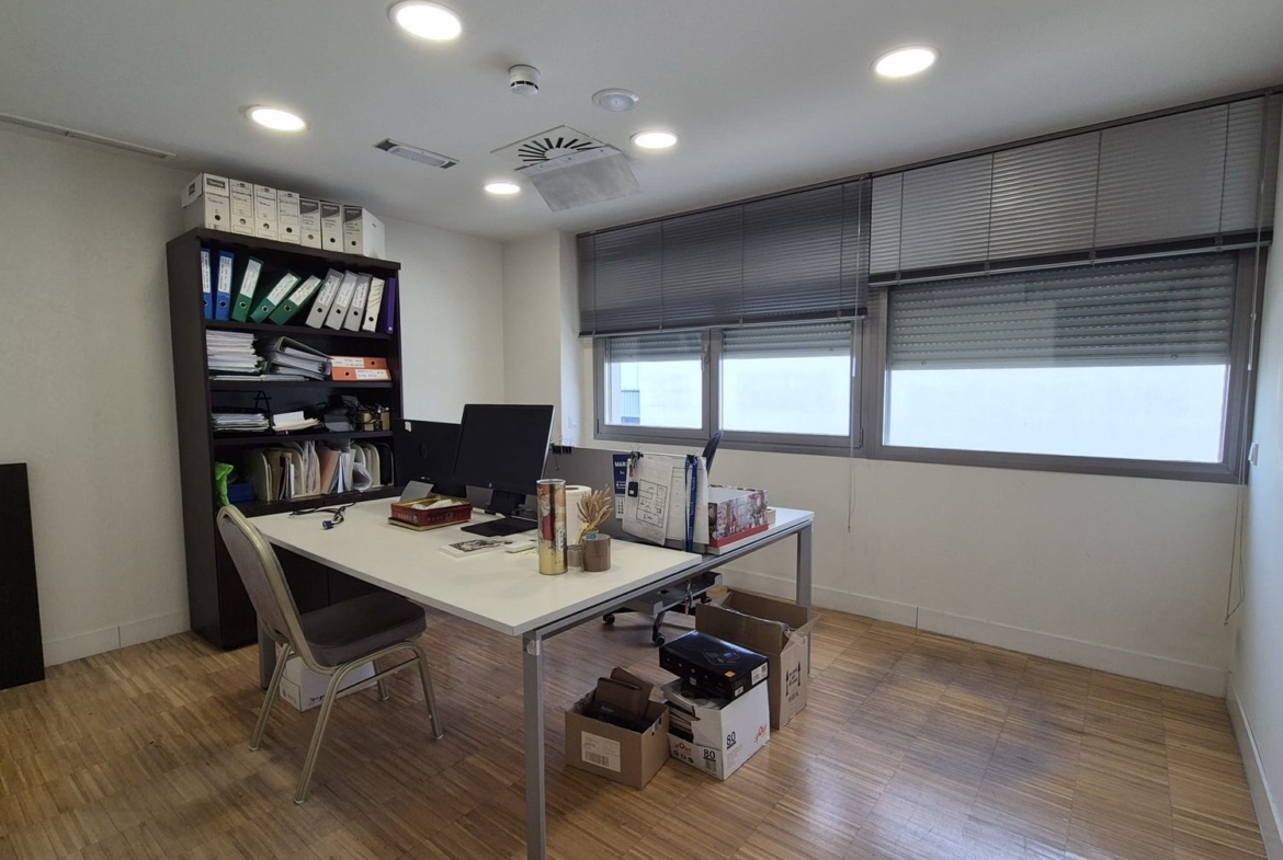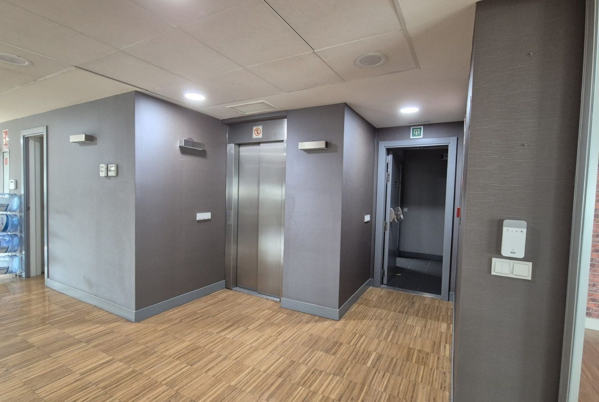 El edificio es accesible para personas con movilidad reducida y cuenta con un ascensor con capacidad para seis personas. También incluye dos plazas de estacionamiento, con opciones adicionales disponibles. La oficina tiene dos aseos en la zona común y la posibilidad de alquilar dos despachos adicionales en la planta superior, perfectos para reuniones o trabajo privado.