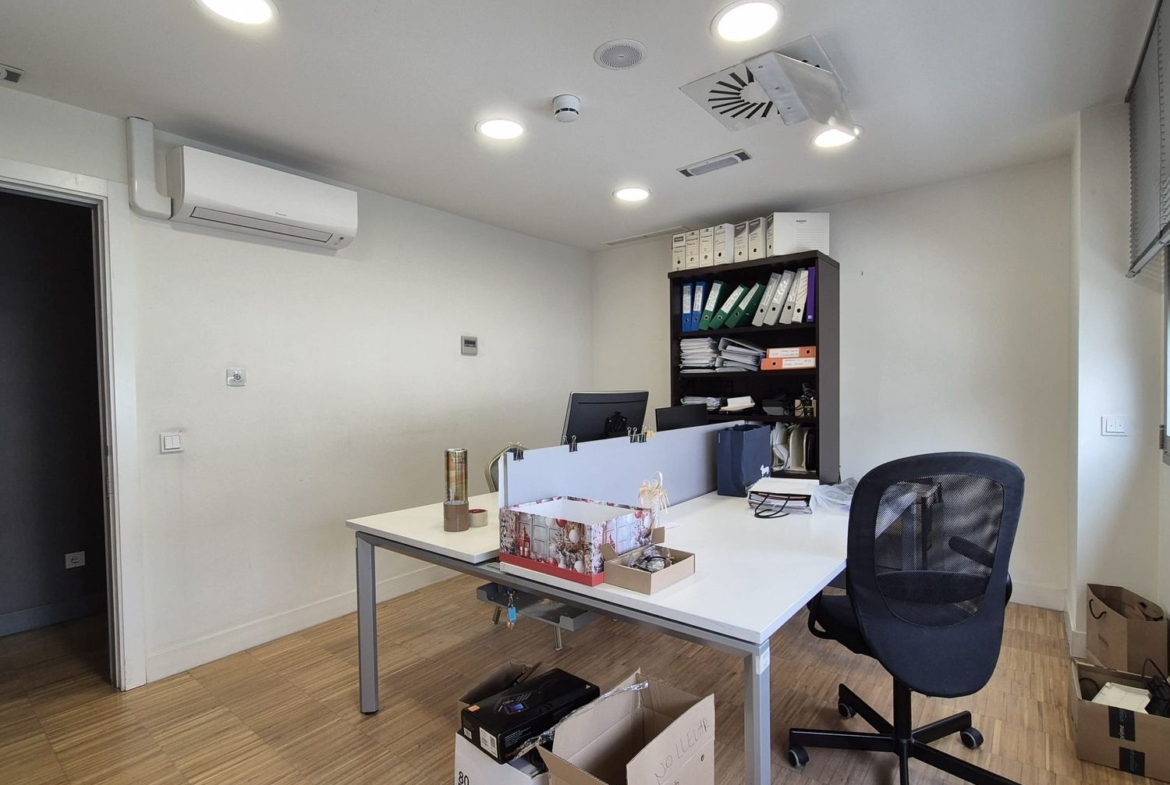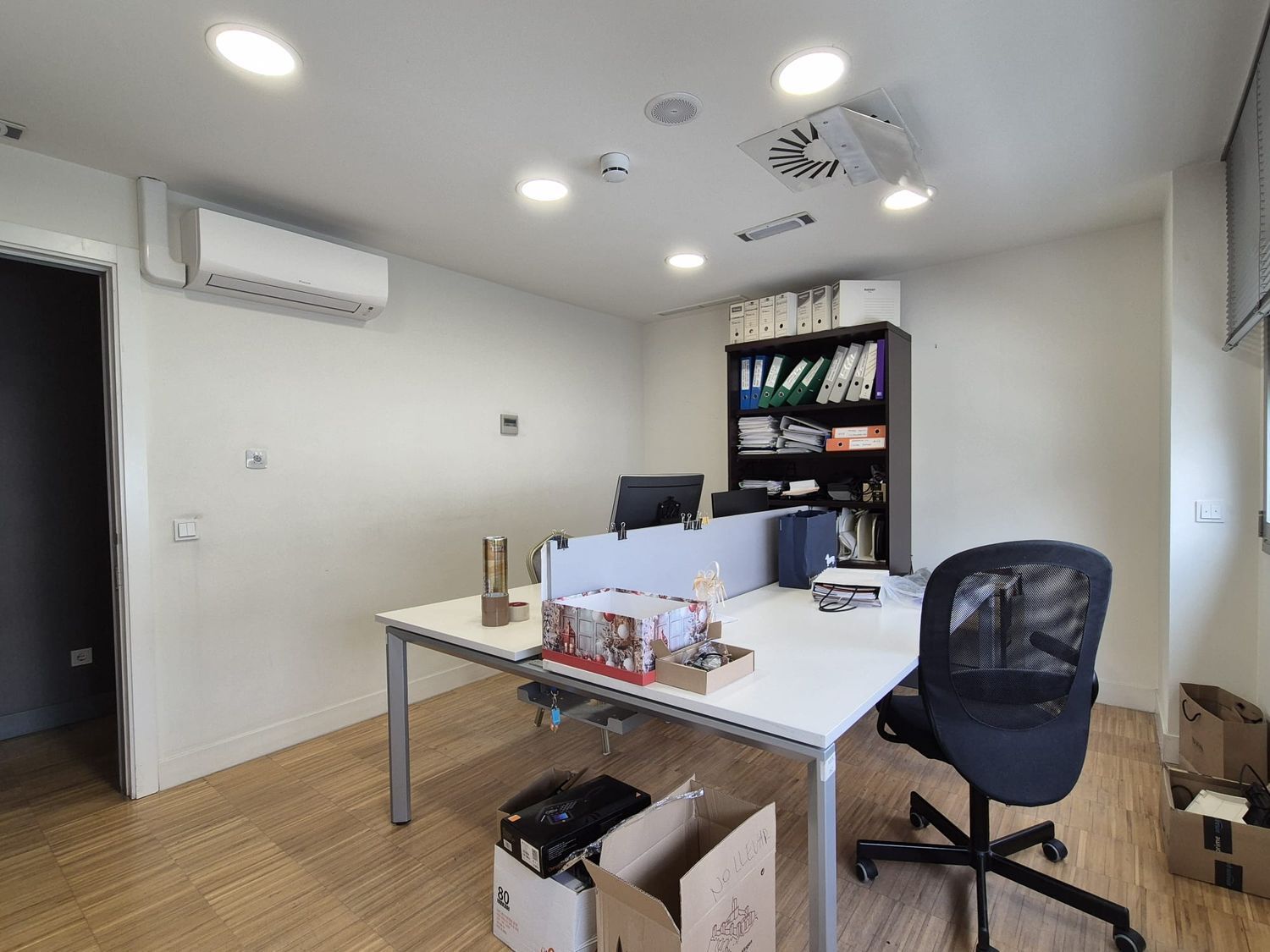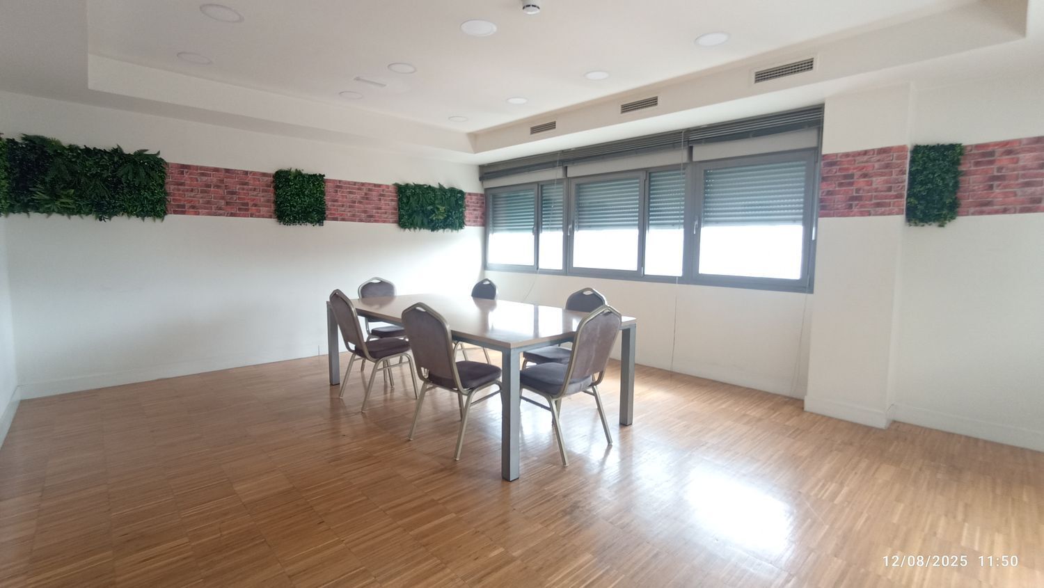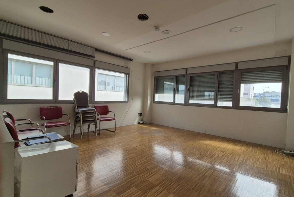 El edificio es accesible para personas con movilidad reducida y cuenta con un ascensor con capacidad para seis personas. También incluye dos plazas de estacionamiento, con opciones adicionales disponibles. La oficina tiene dos aseos en la zona común y la posibilidad de alquilar dos despachos adicionales en la planta superior, perfectos para reuniones o trabajo privado.