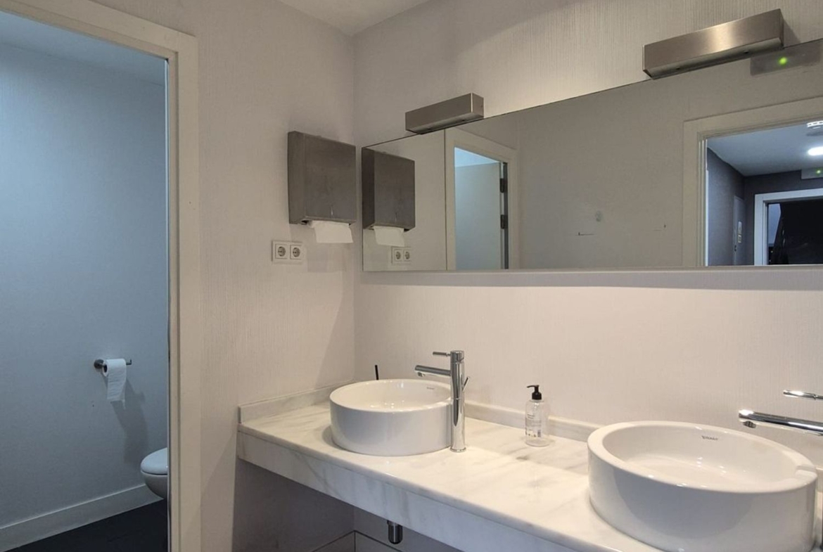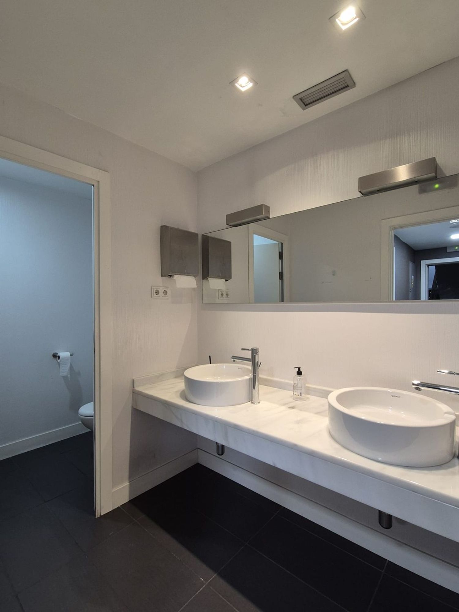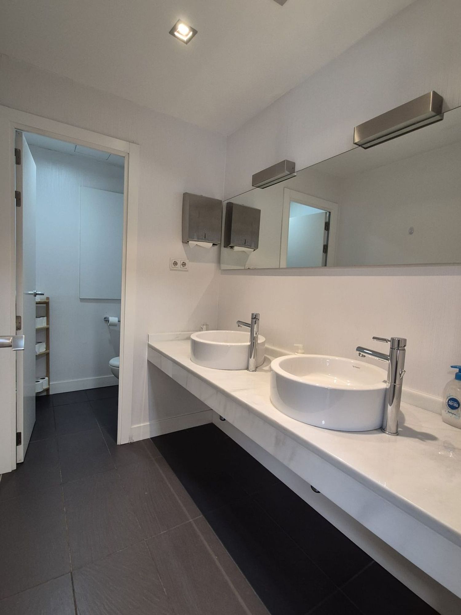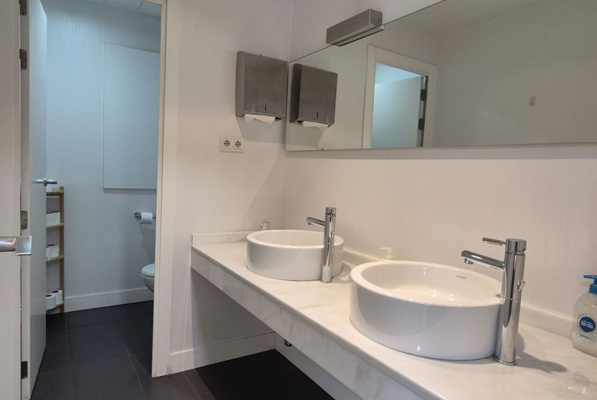 El edificio es accesible para personas con movilidad reducida y cuenta con un ascensor con capacidad para seis personas. También incluye dos plazas de estacionamiento, con opciones adicionales disponibles. La oficina tiene dos aseos en la zona común y la posibilidad de alquilar dos despachos adicionales en la planta superior, perfectos para reuniones o trabajo privado.