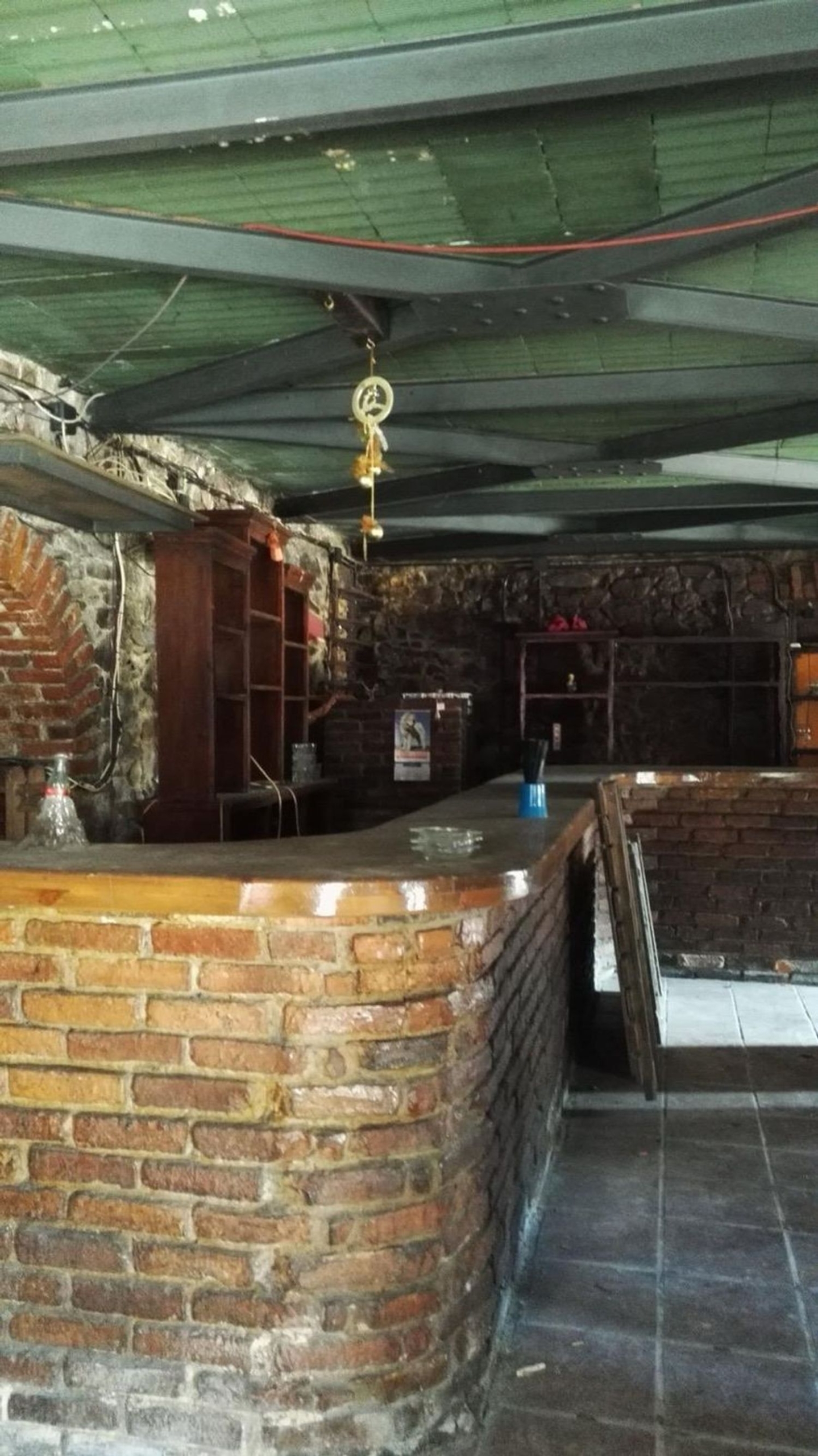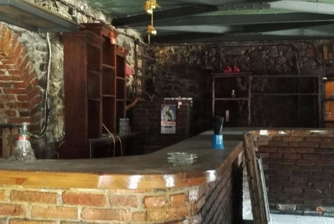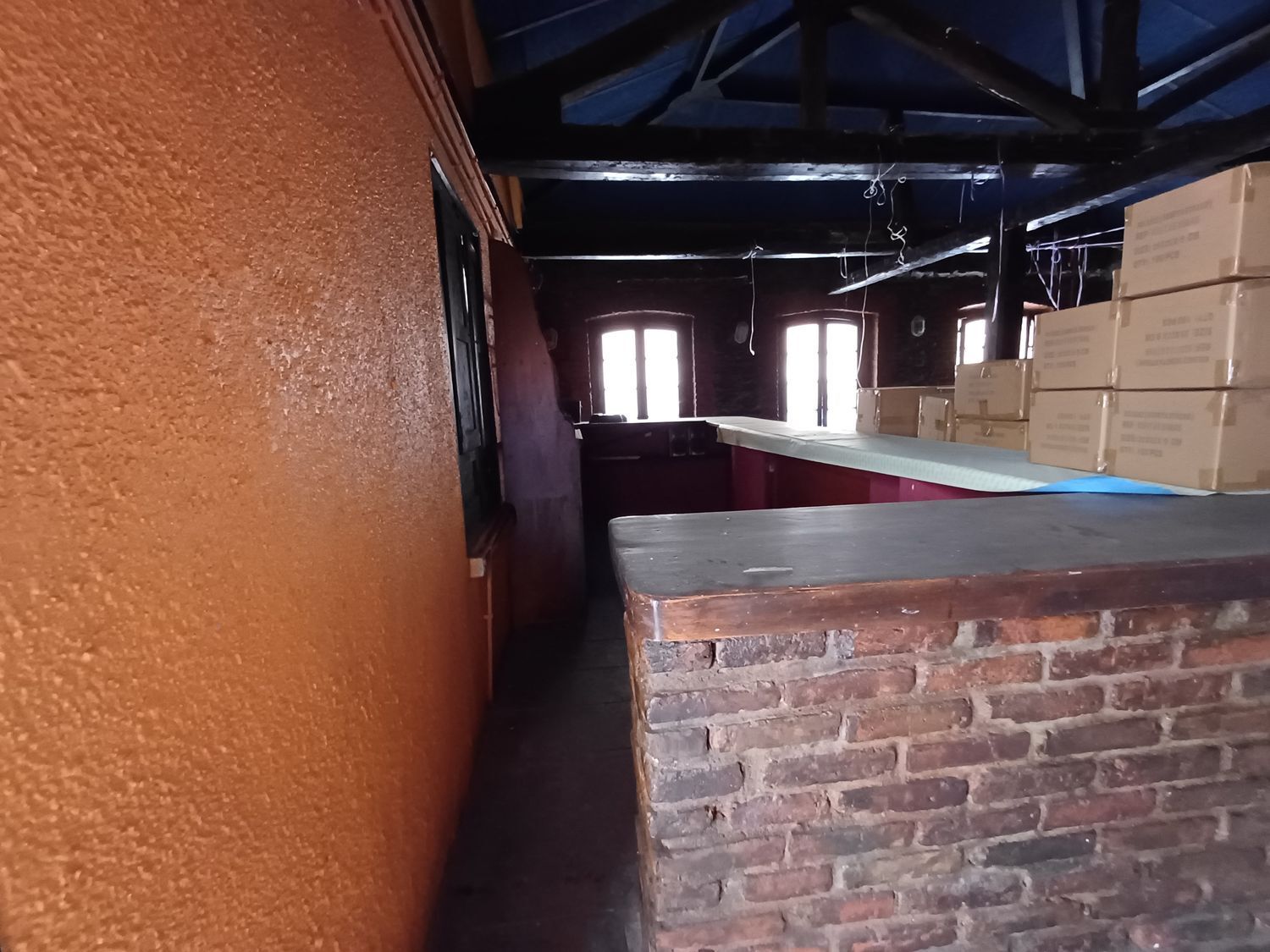Dispone de dos pisos, con una barra por cada y dos baños. Además posee un corredor de madera en la primera planta.