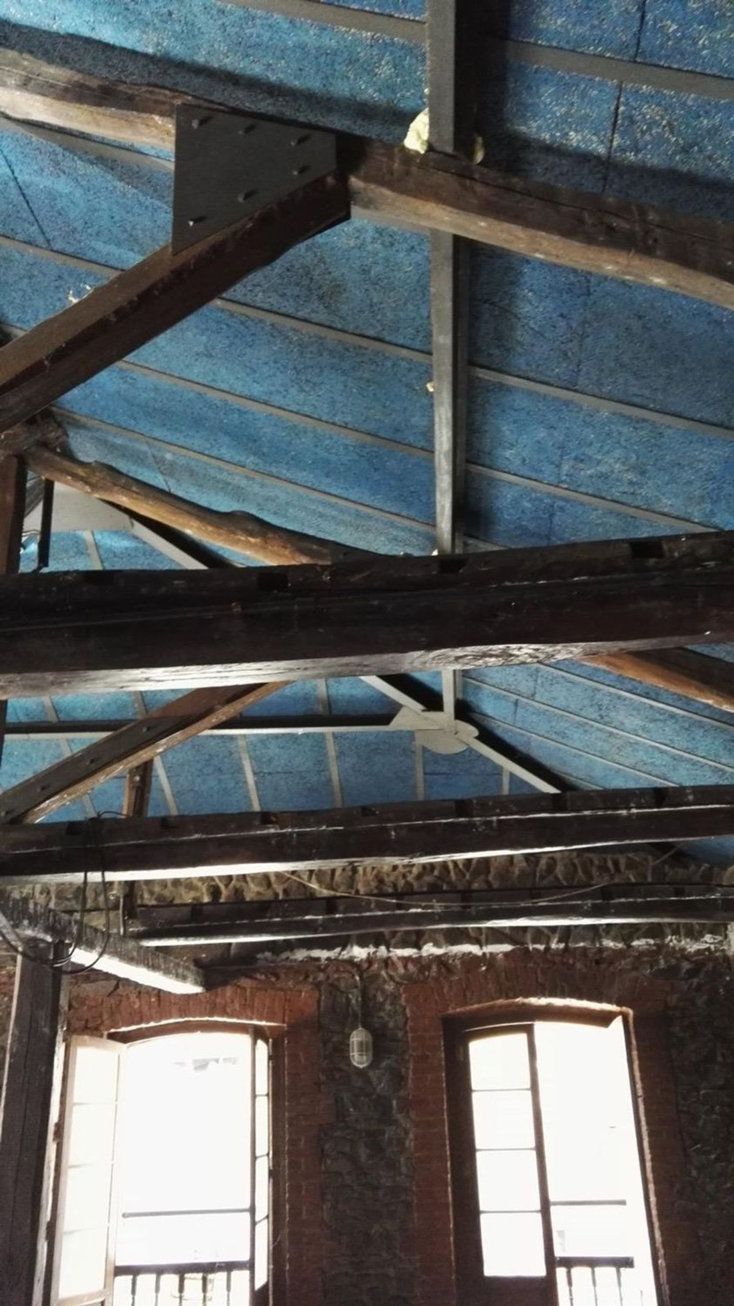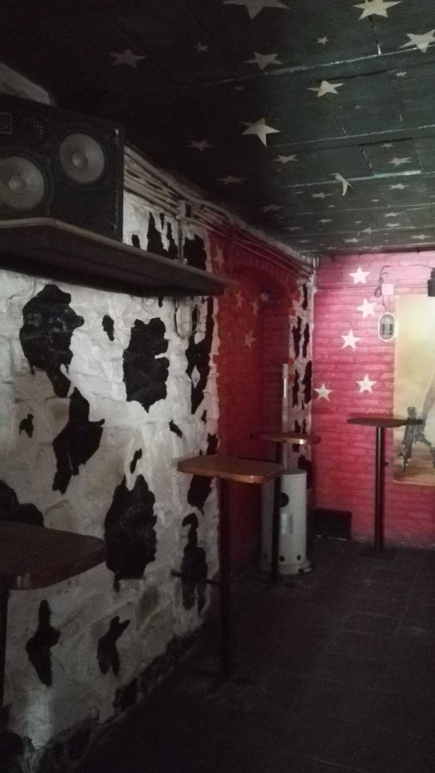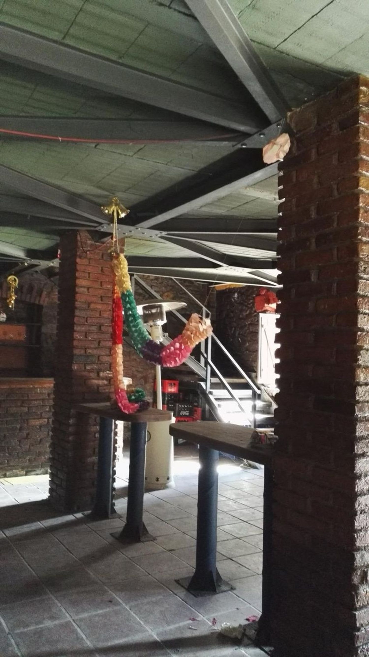Dispone de dos pisos, con una barra por cada y dos baños. Además posee un corredor de madera en la primera planta.
